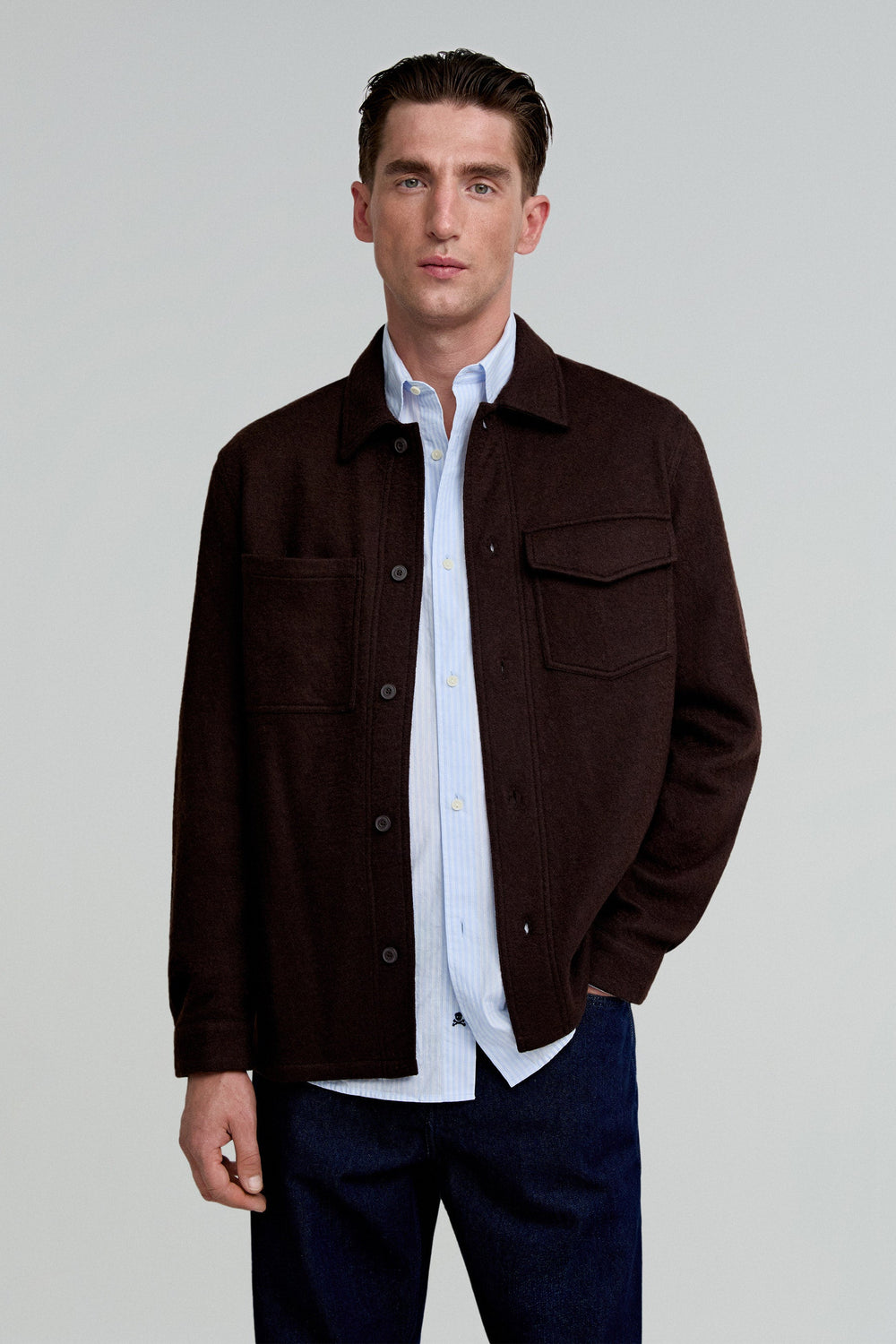 Chaqueta confeccionada en mezcla de lana y algodón. Regular fit, cuello clásico y cierre con botones. Manga larga y bolsillos en pecho con tapeta.
