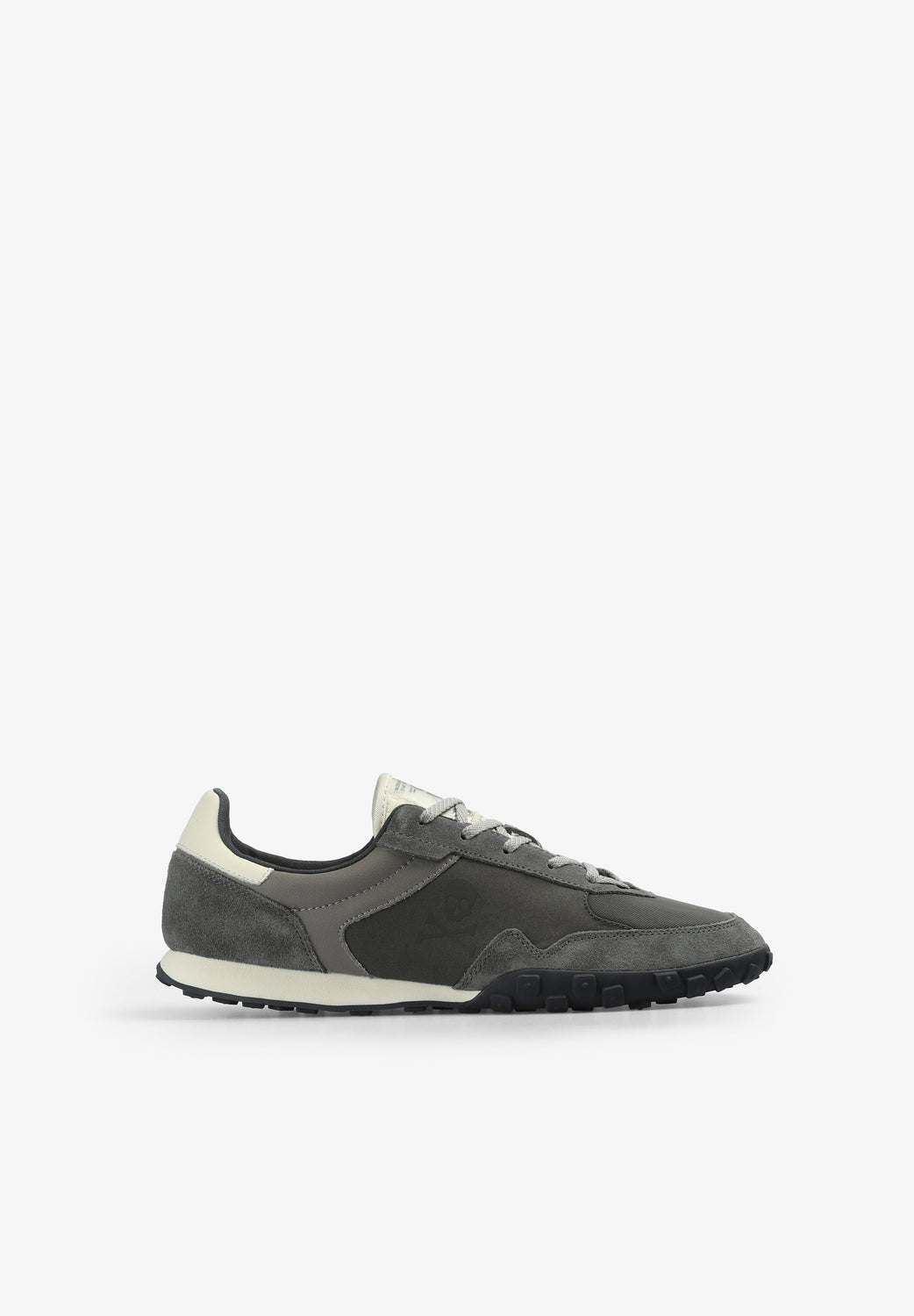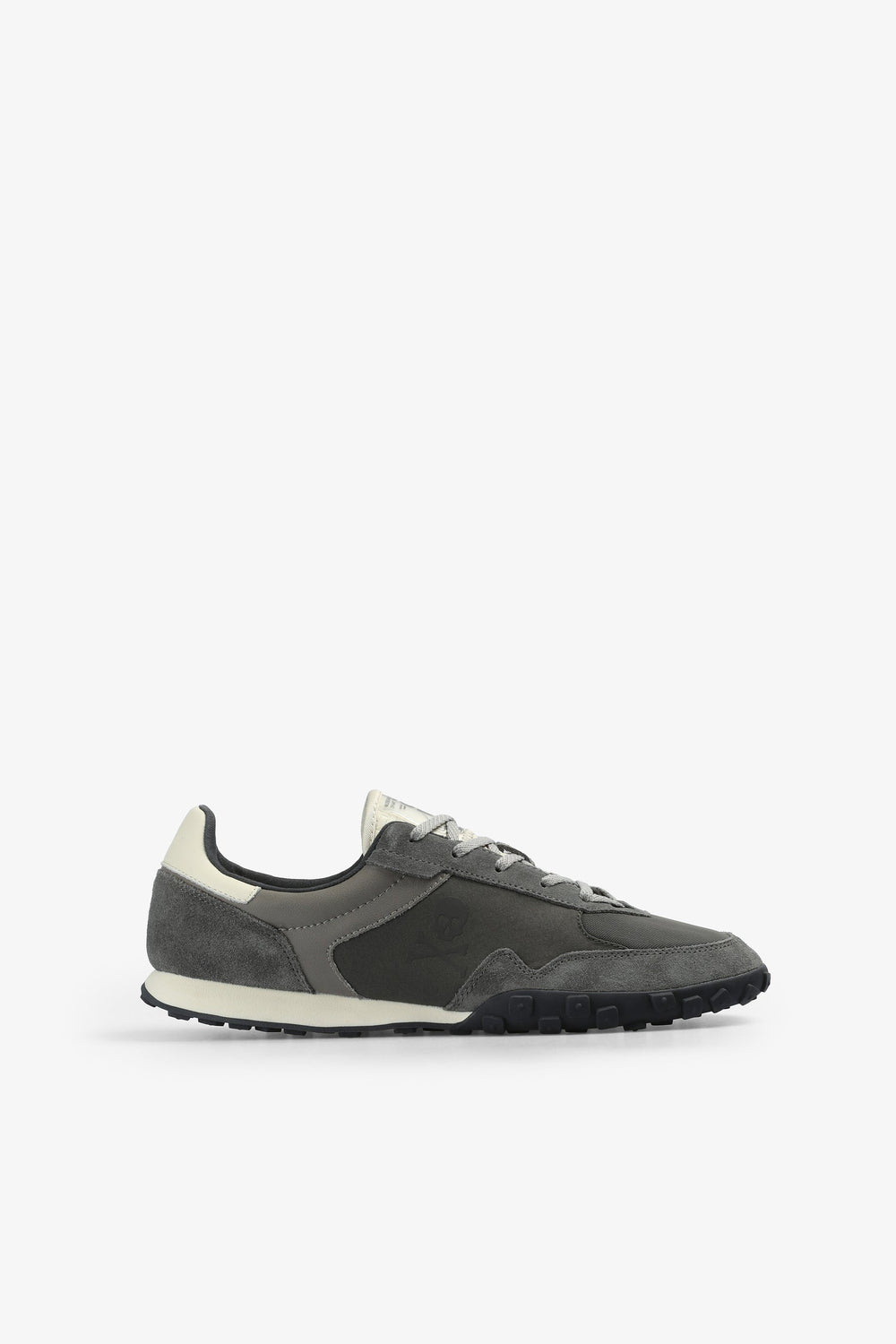 Sneakers confeccionada en malla y piel terminada en serraje. Cierre con cordones, suela de goma dentada y calavera lateral.