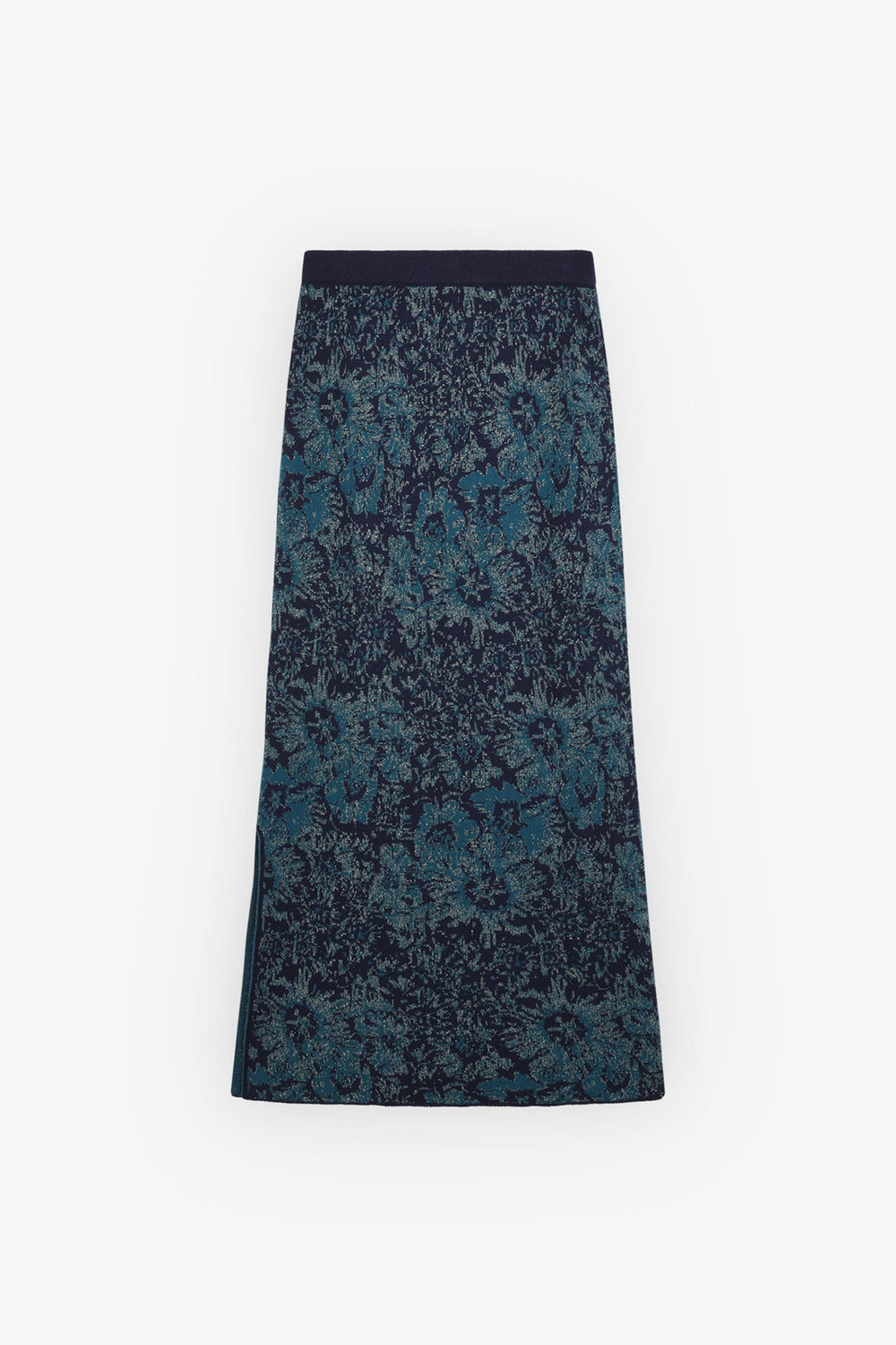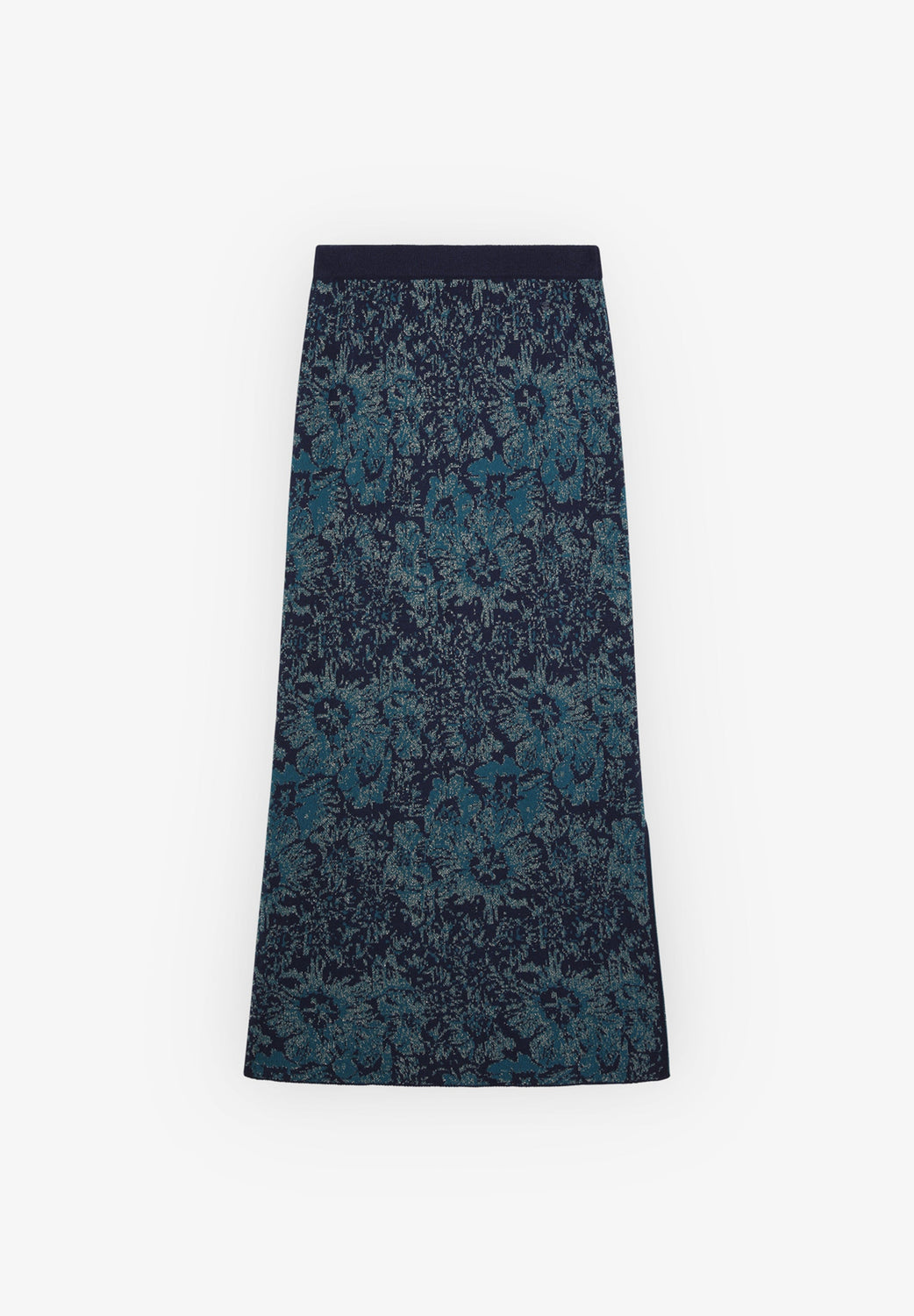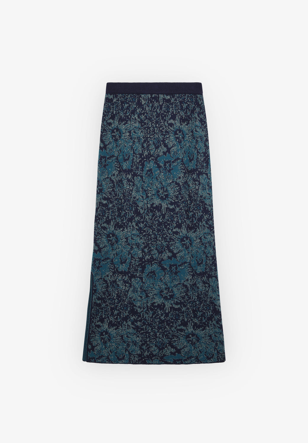 Falda midi de punto confeccionada en tejido con lurex. Slim fit, cintura elástica.