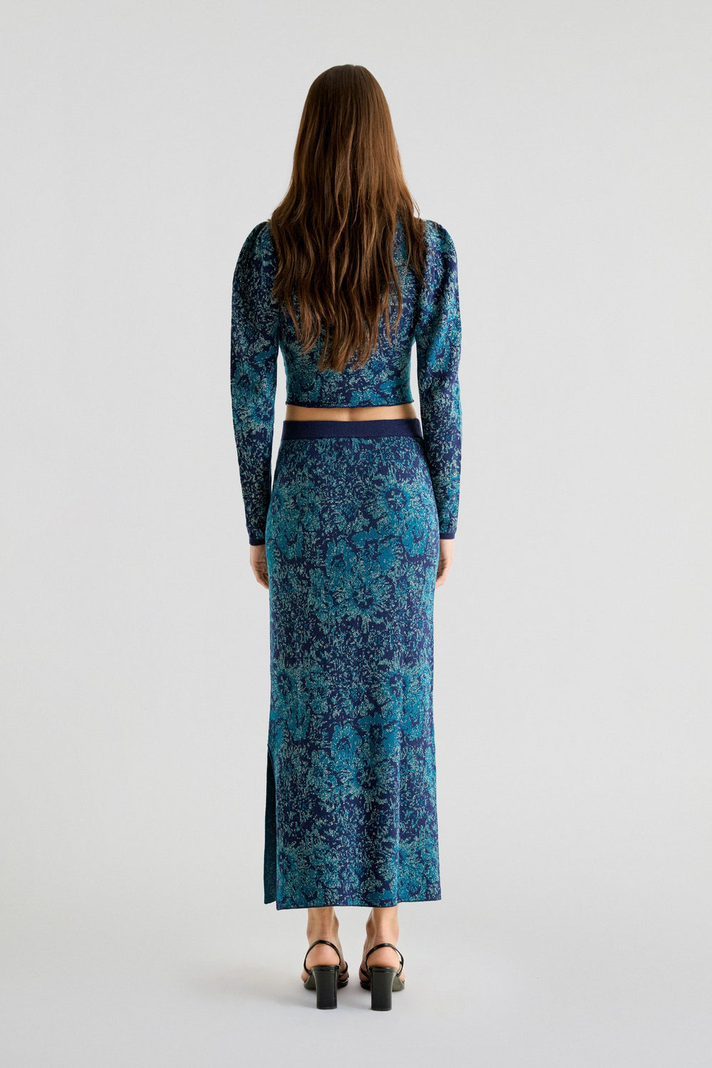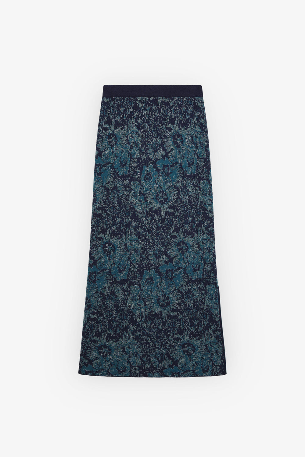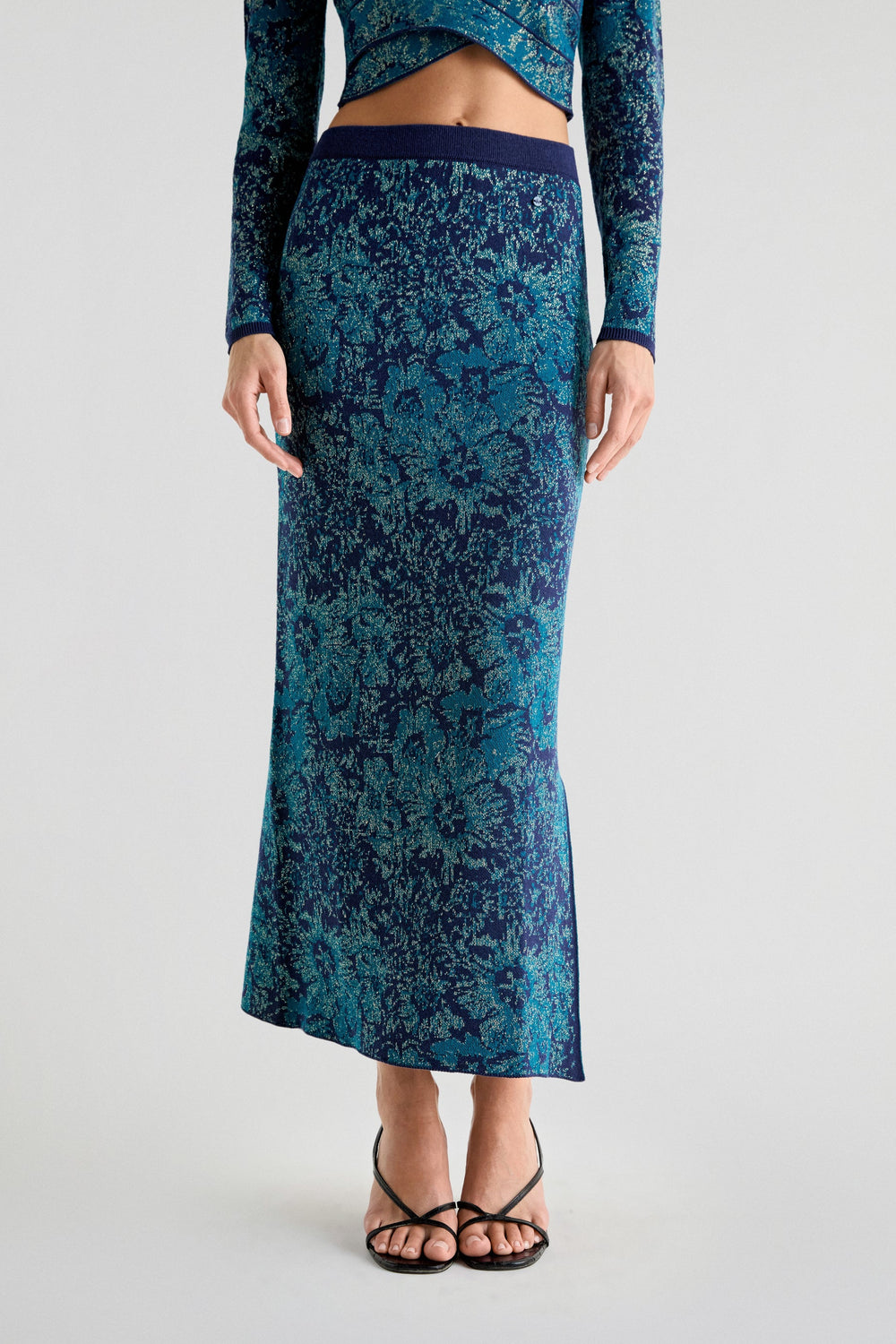 Falda midi de punto confeccionada en tejido con lurex. Slim fit, cintura elástica.