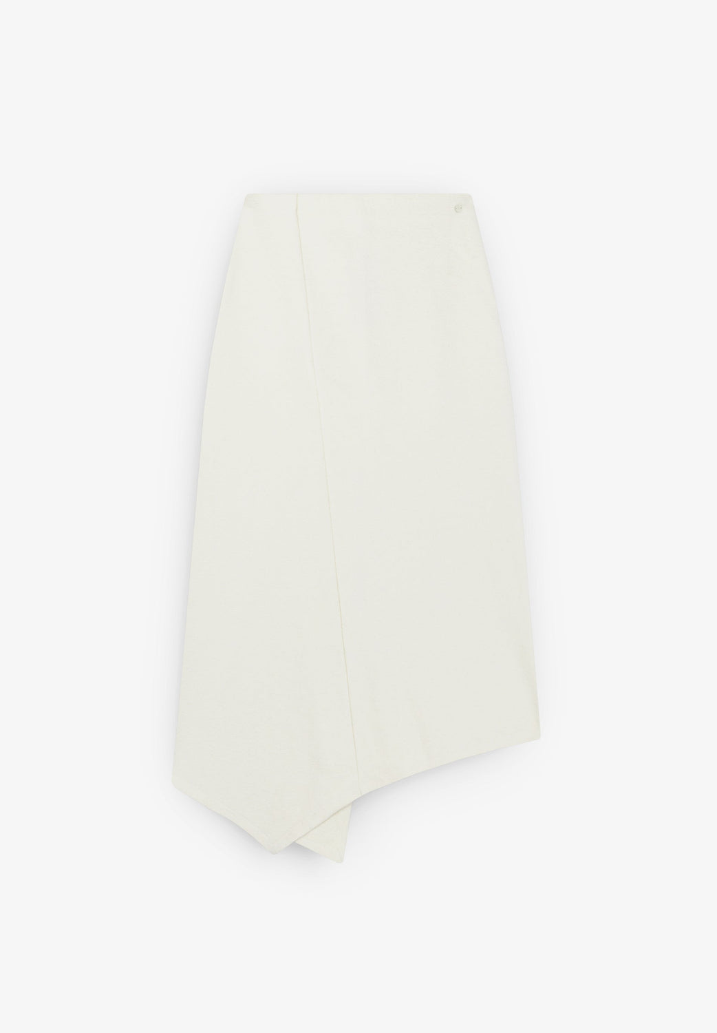 Falda midi de punto grueso confeccionado en 100% algodón. Regular fit, cinturilla elástica y costuras marcadas. Bajo asimétrico.
