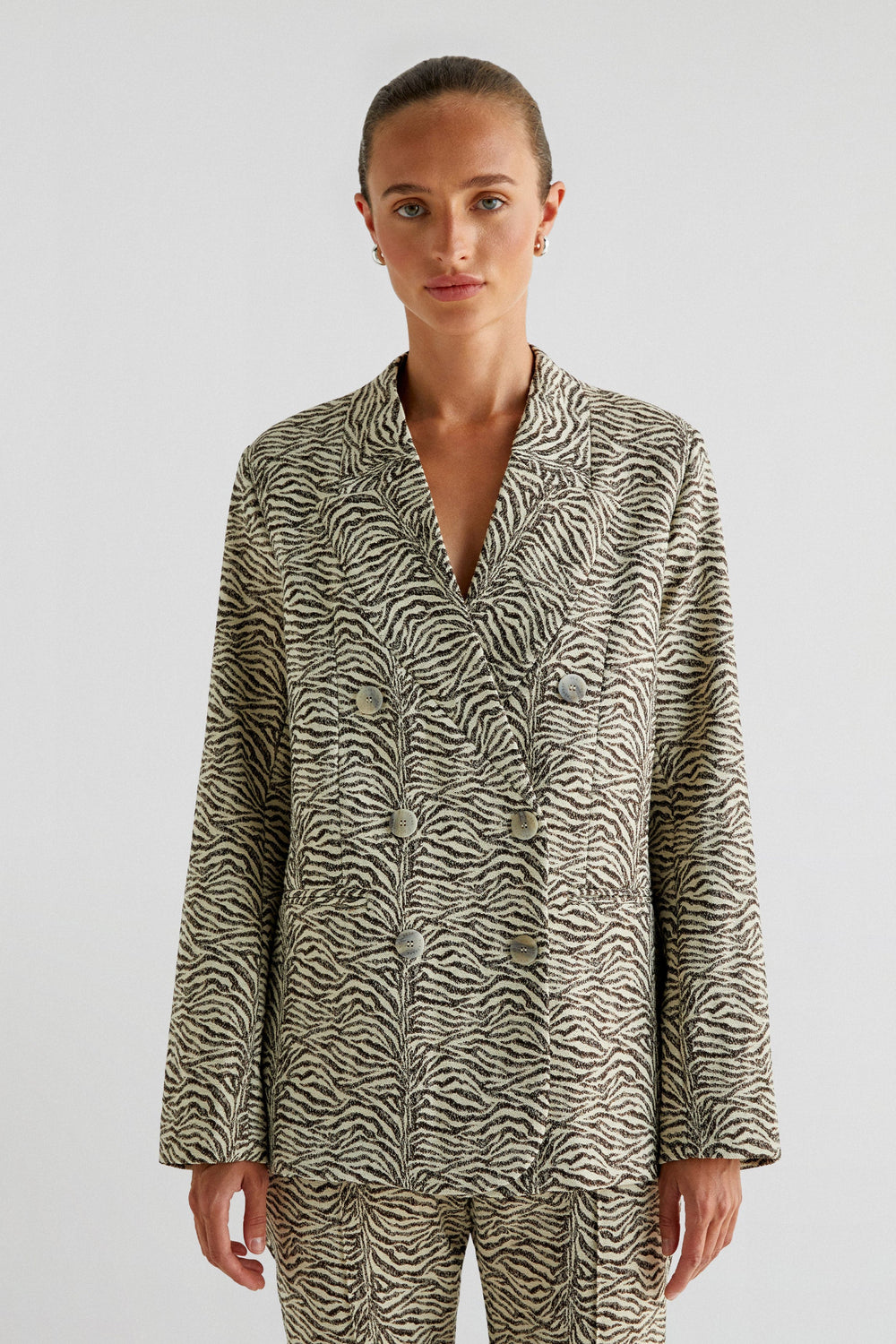 Blazer con print de cebra confeccionada en mezcla de algodón. Regular fit, cuello con solapas y cierre con botones. Manga larga.