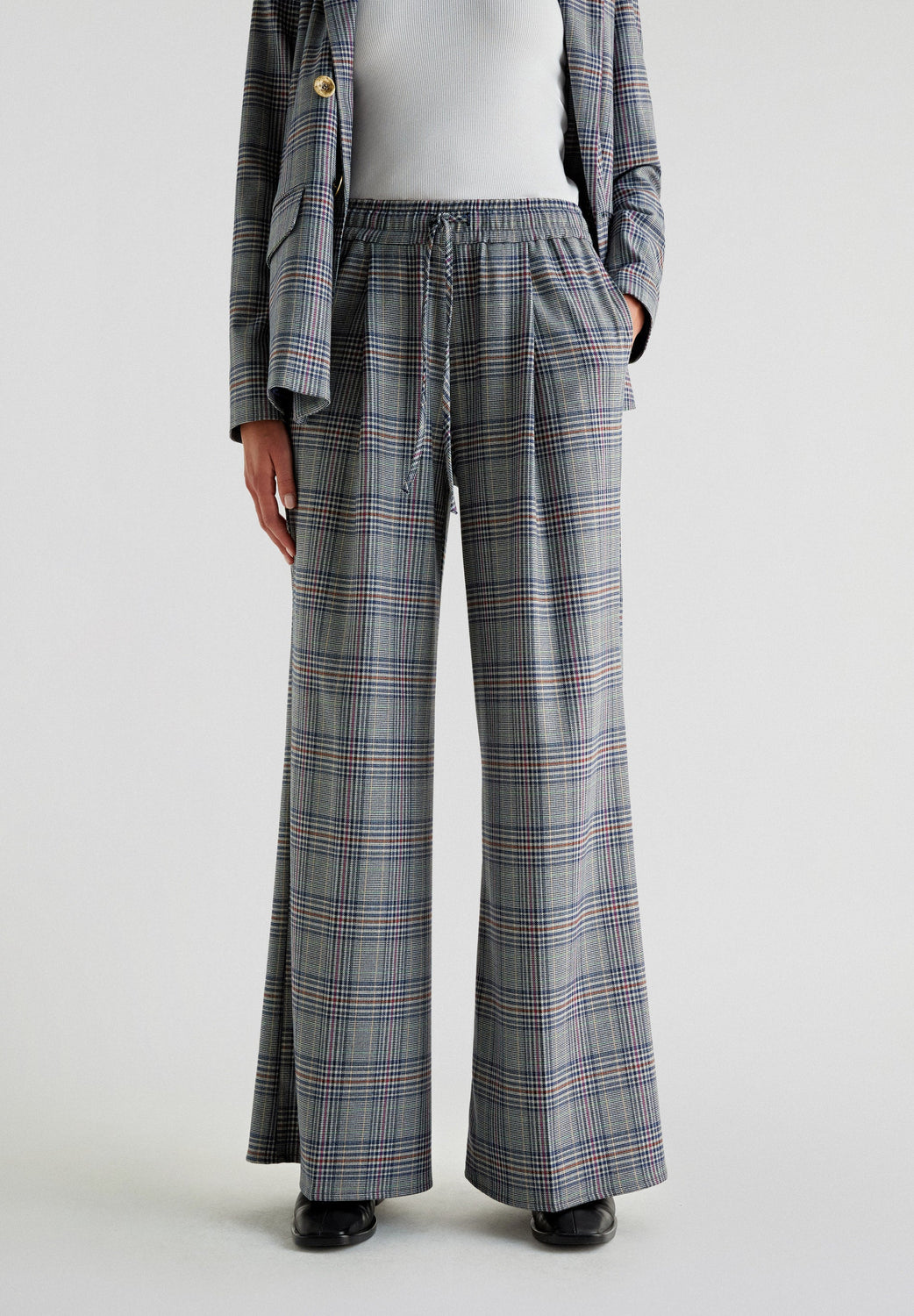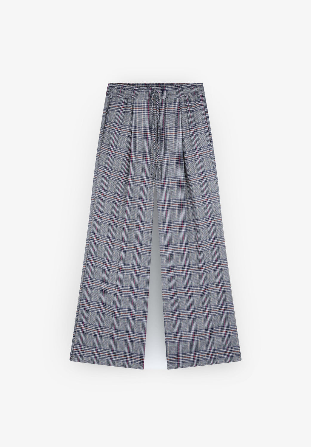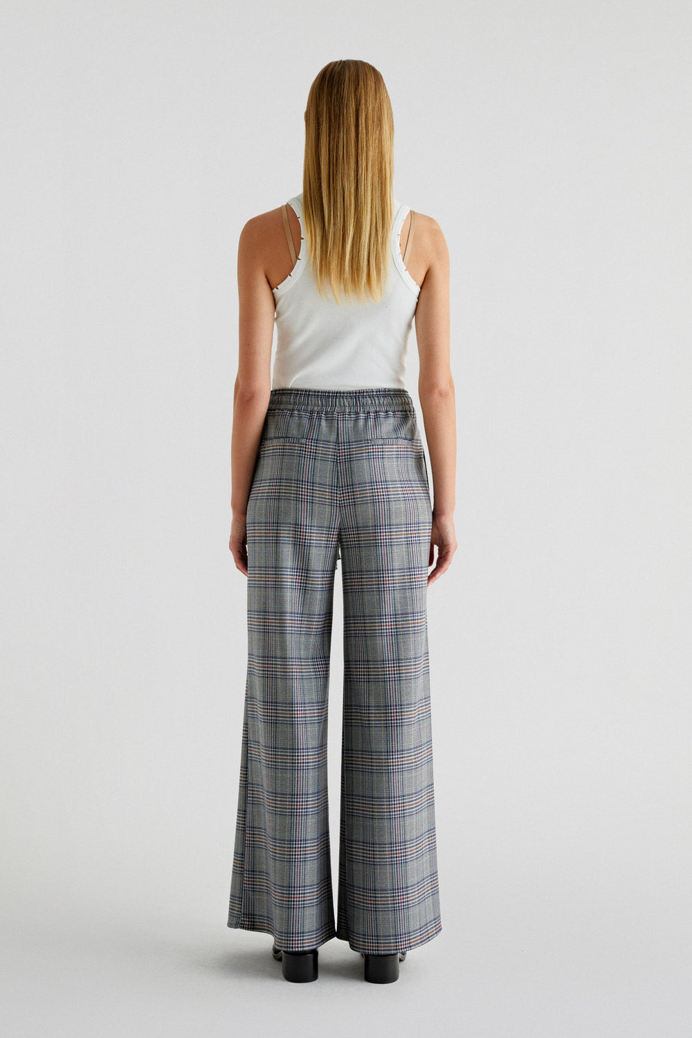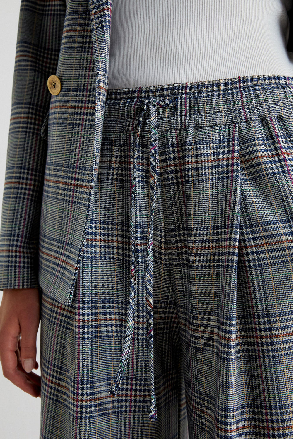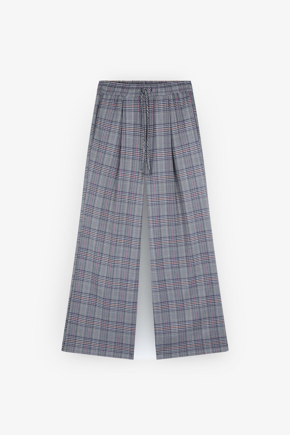 Pantalón de cuadros confeccionado en tejido de algodón. Relaxed fit de corte palazzo, cierre con tiras y cinturilla elástica y bolsillos laterales.