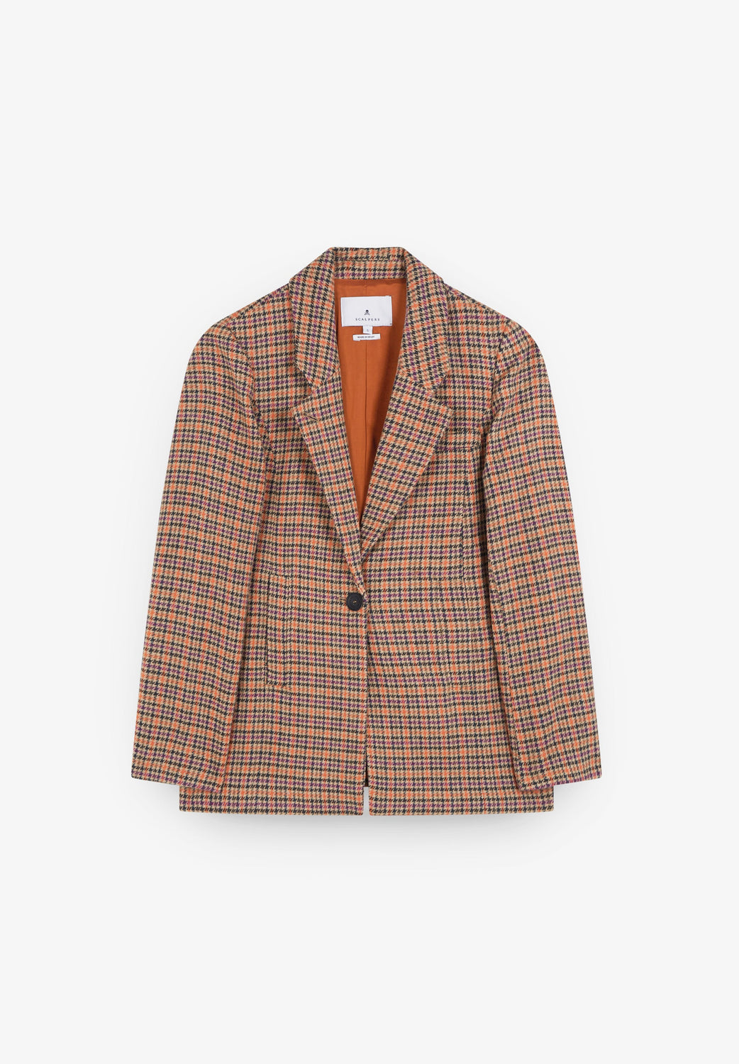 Blazer de cuadros confeccionada en mezcla de lana. Regular fit, cuello con solapas y cierre con botón. Manga larga y bolsillos insertados.