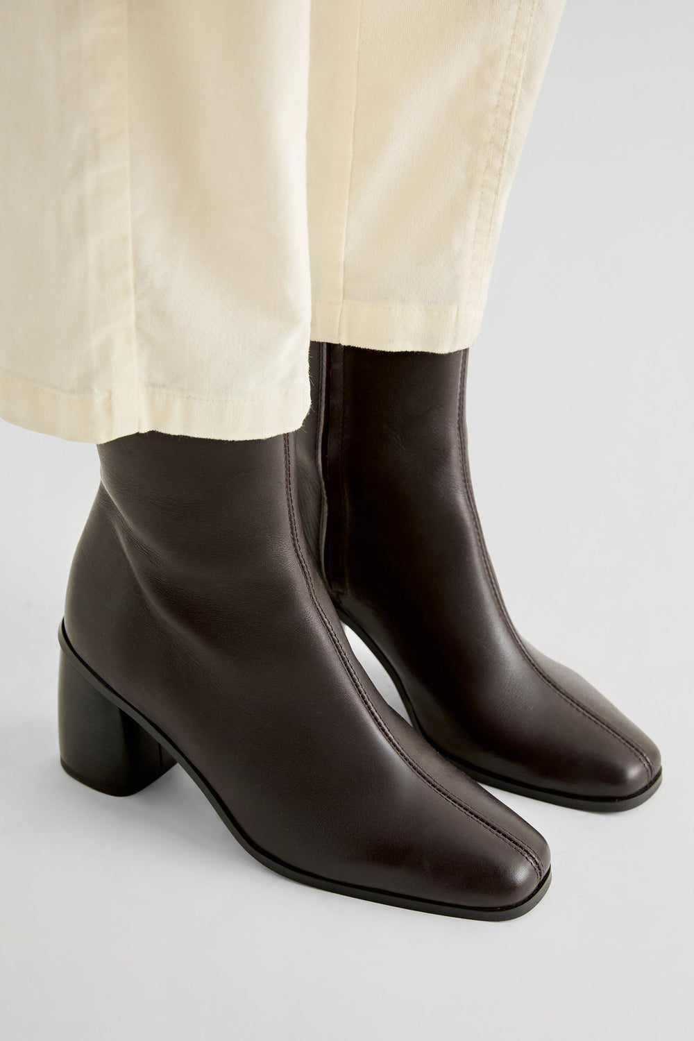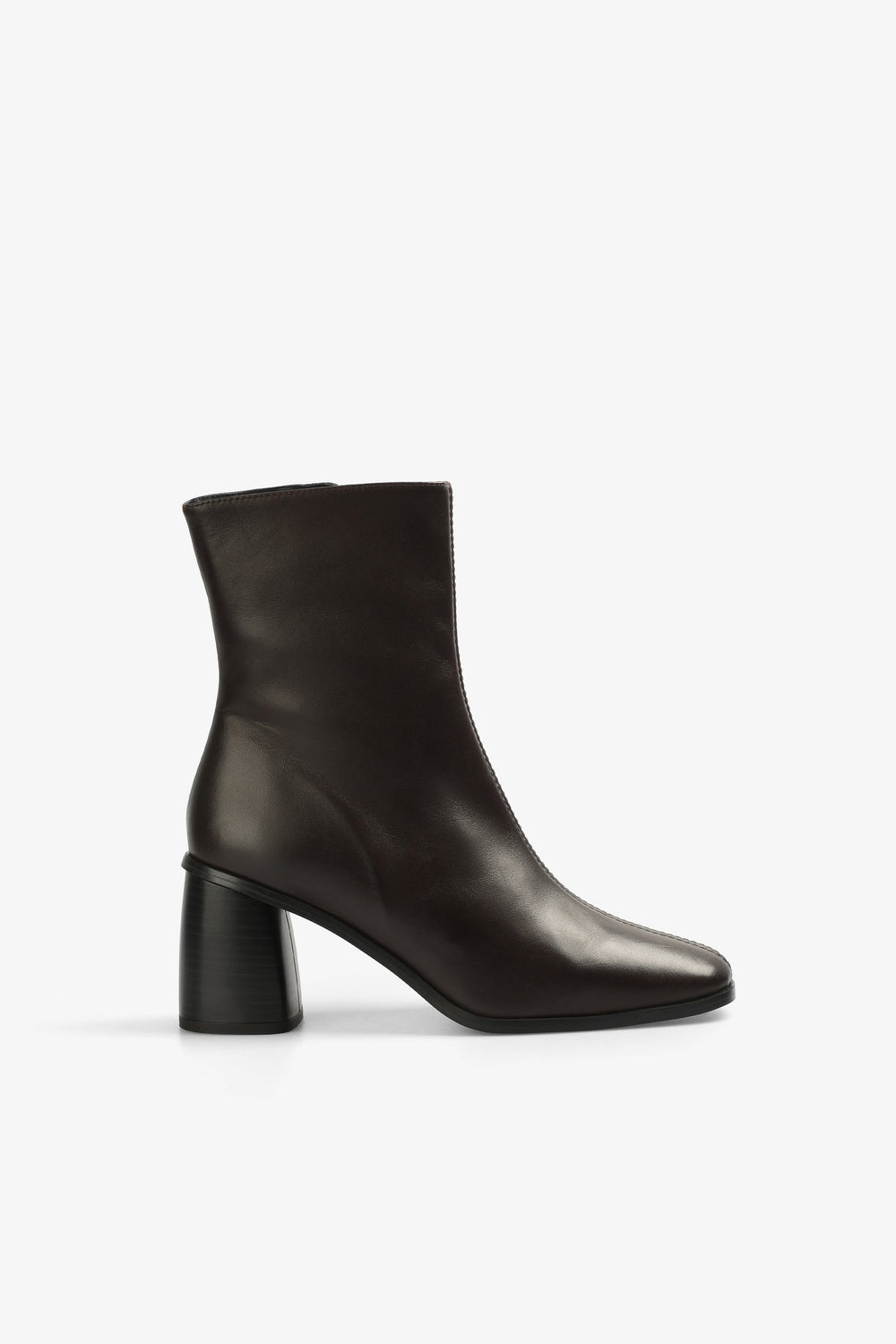 Botín confeccionado en 100% piel soft. Caña midi estrecha y cierre con cremallera lateral. Tacón: 7,5 cm.