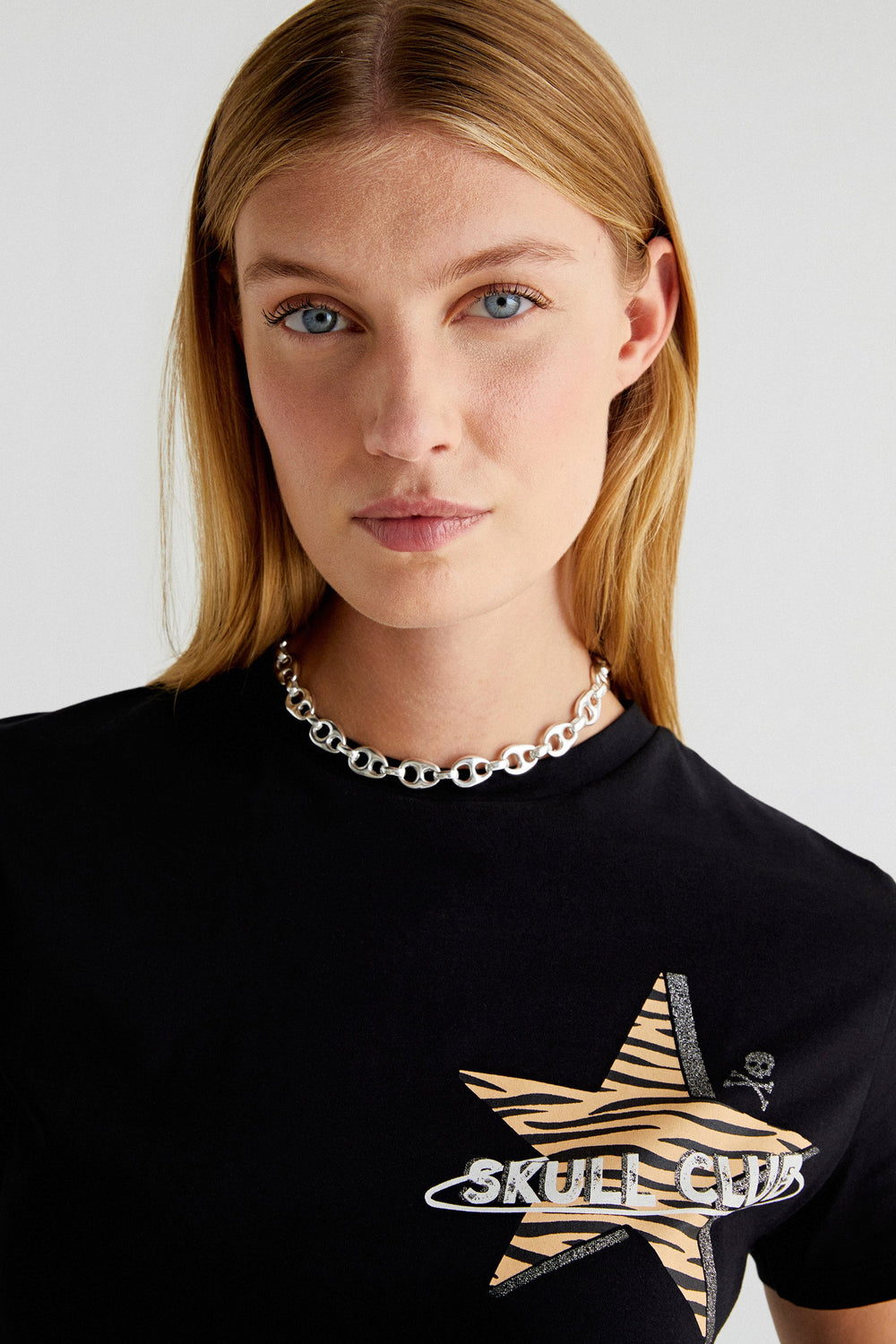 Camiseta con print en el pecho confeccionada en 100% algodón BCI. Regular fit, cuello redondo y manga corta.