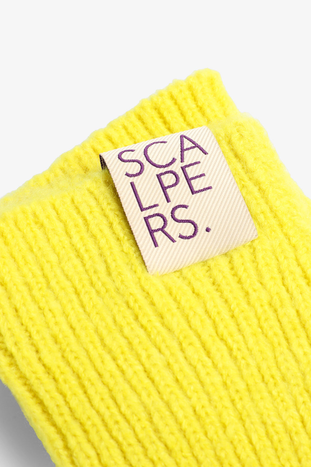 Guantes largos de punto. Detalle de etiqueta con logo.