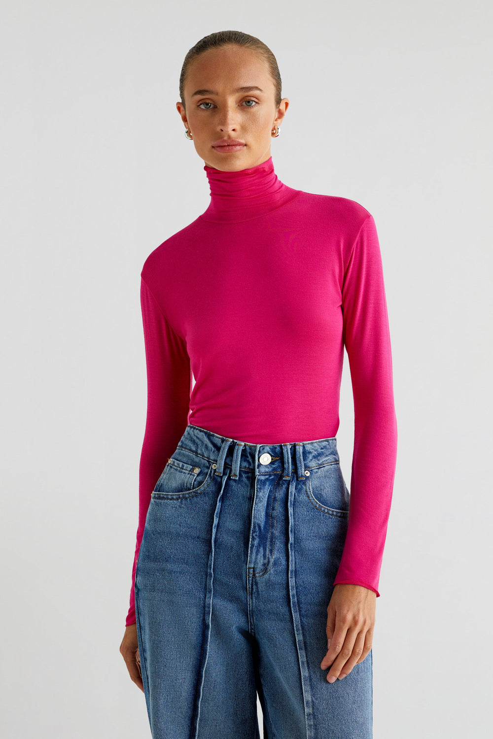 Camiseta confeccionada en tejido comfy. Slim fit, cuello alto y manga larga.