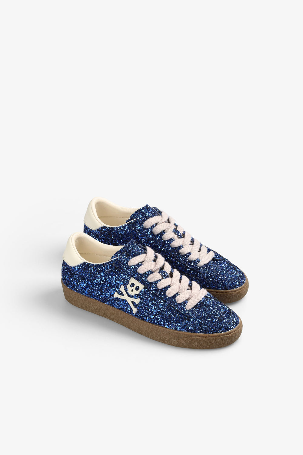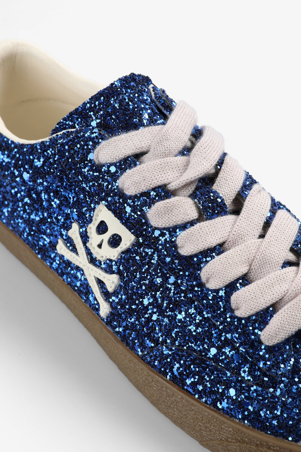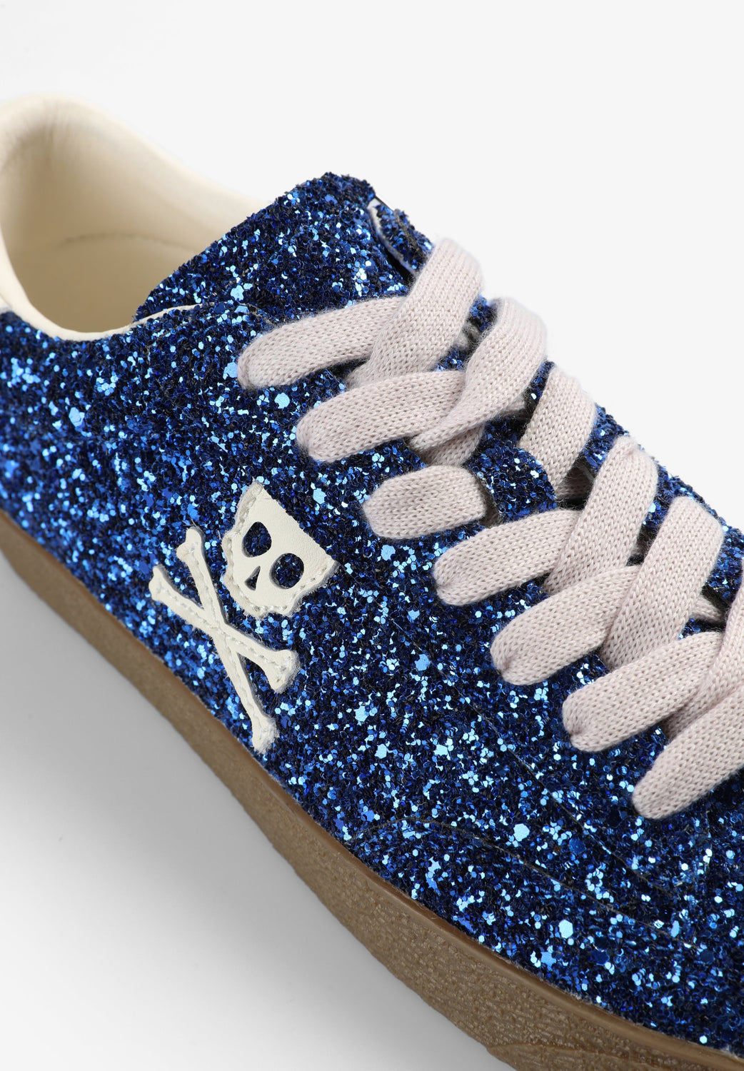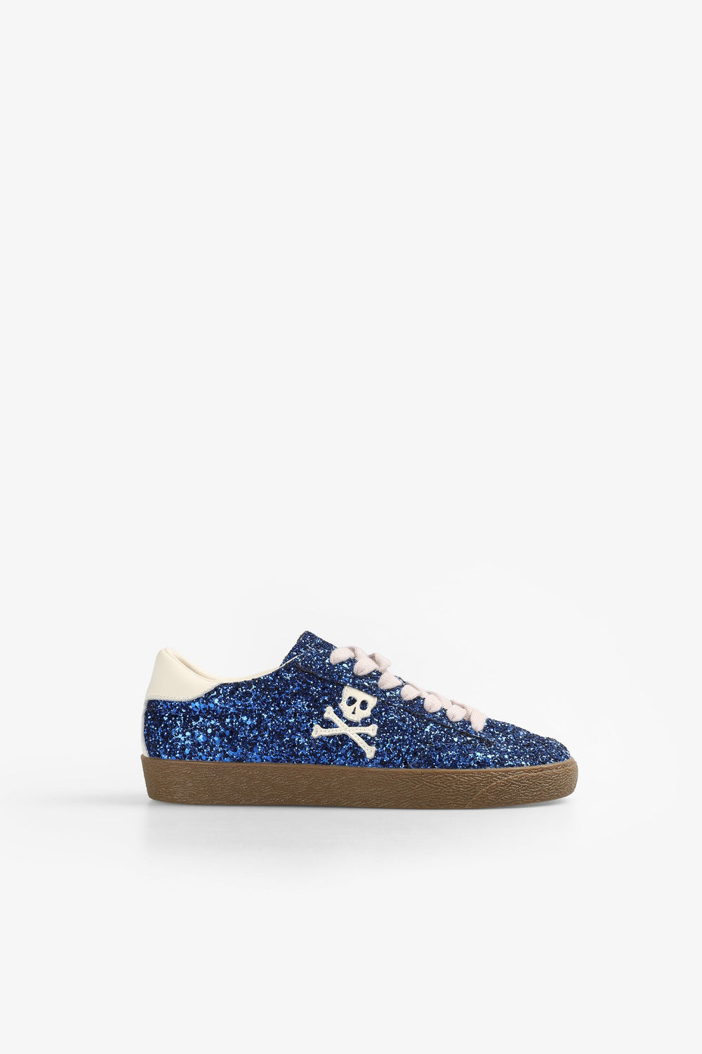 Sneakers de glitter confeccionadas en 100% piel. Cierre con cordones, suela de goma y calavera a contraste.