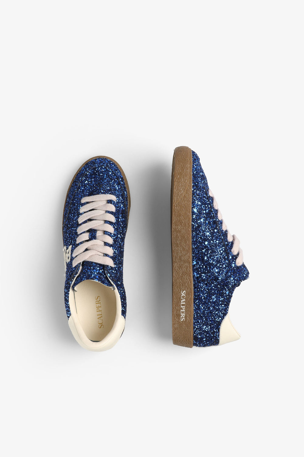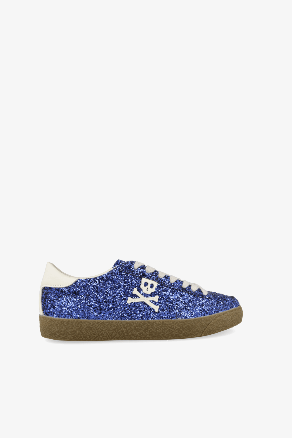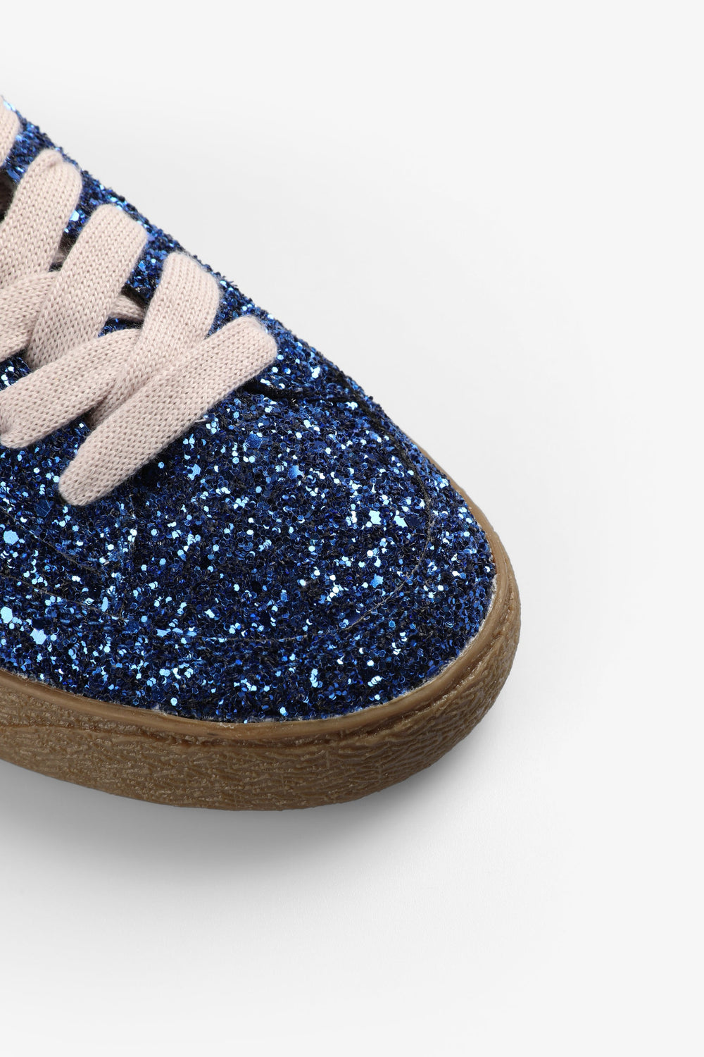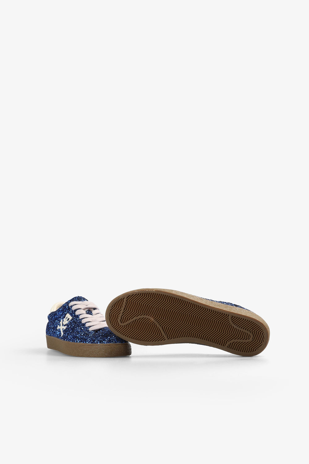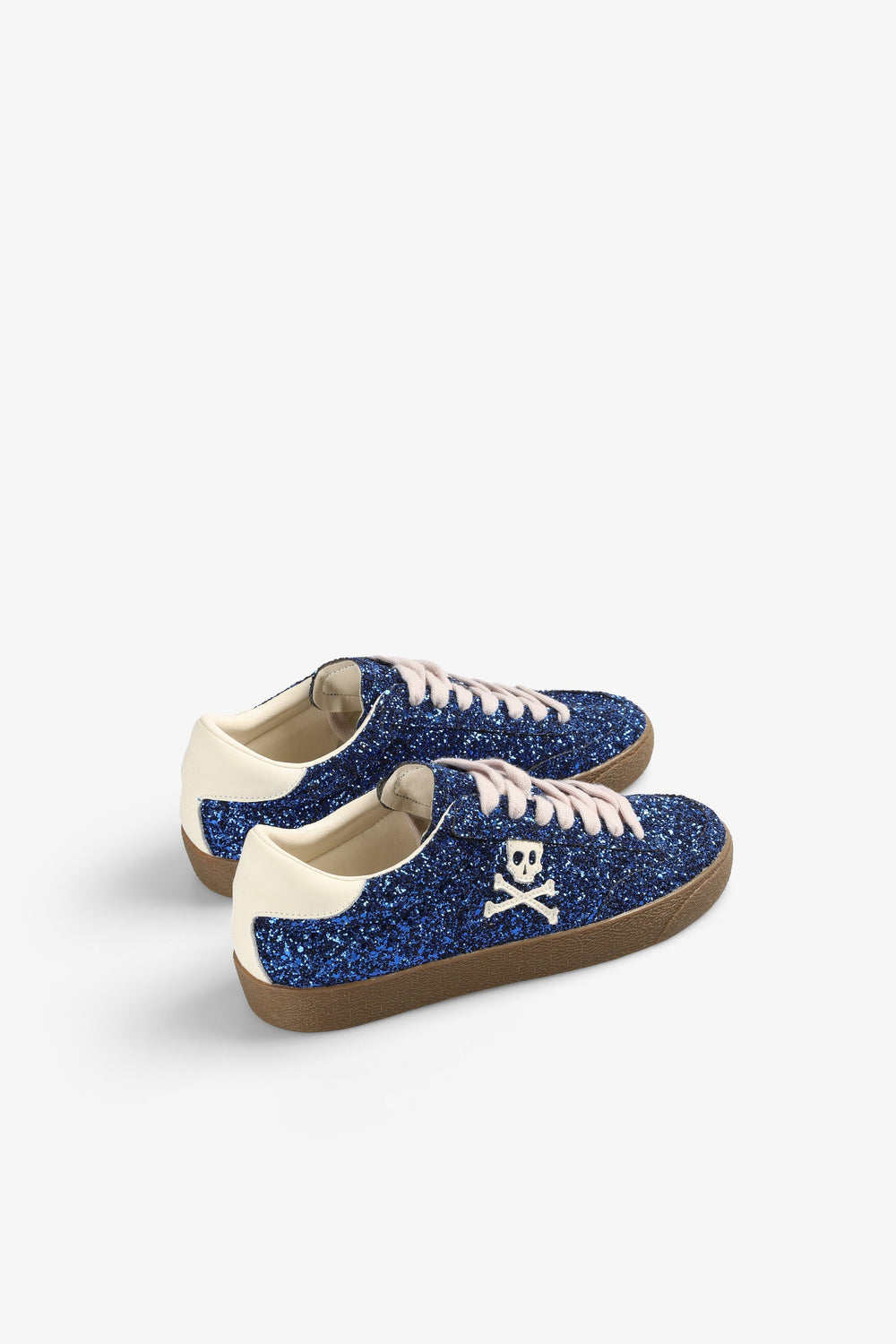 Sneakers de glitter confeccionadas en 100% piel. Cierre con cordones, suela de goma y calavera a contraste.