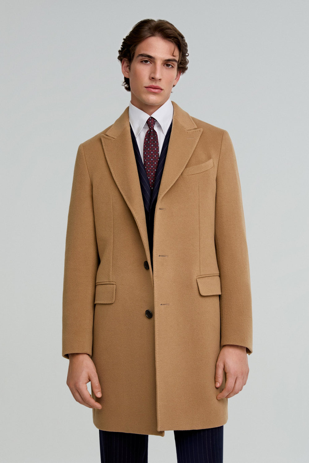 Abrigo de paño confeccionado en mezcla de lana. Regular fit. cuello con solapas con punta de lanza y manga larga con botones. Bolsillos frontales y apertura trasera. Bolsillo interior.