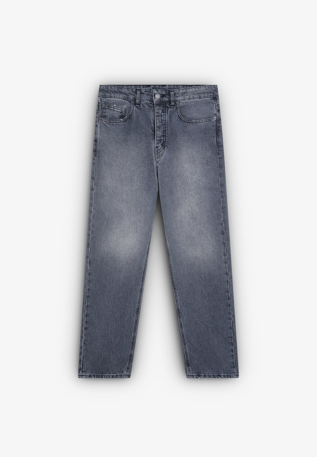 Jeans confeccionados en algodón BCI. Regular fit, cierre con botones y trabillas en cintura. Bolsillos delanteros y traseros.
