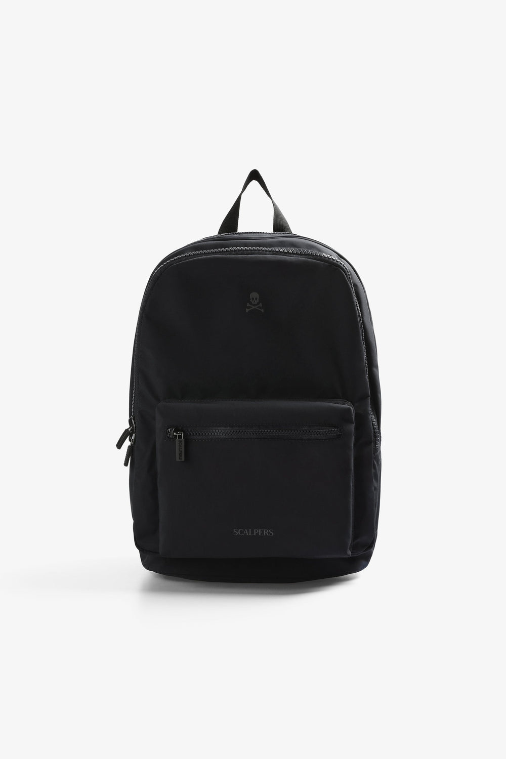 Mochila confeccionada en tejido técnica. Doble bolsillos de compartimentos, cierre con cremallera y doble asa traseras y superior. Bolsillo delantero con cremallera y detalle de calavera frontal a contraste.