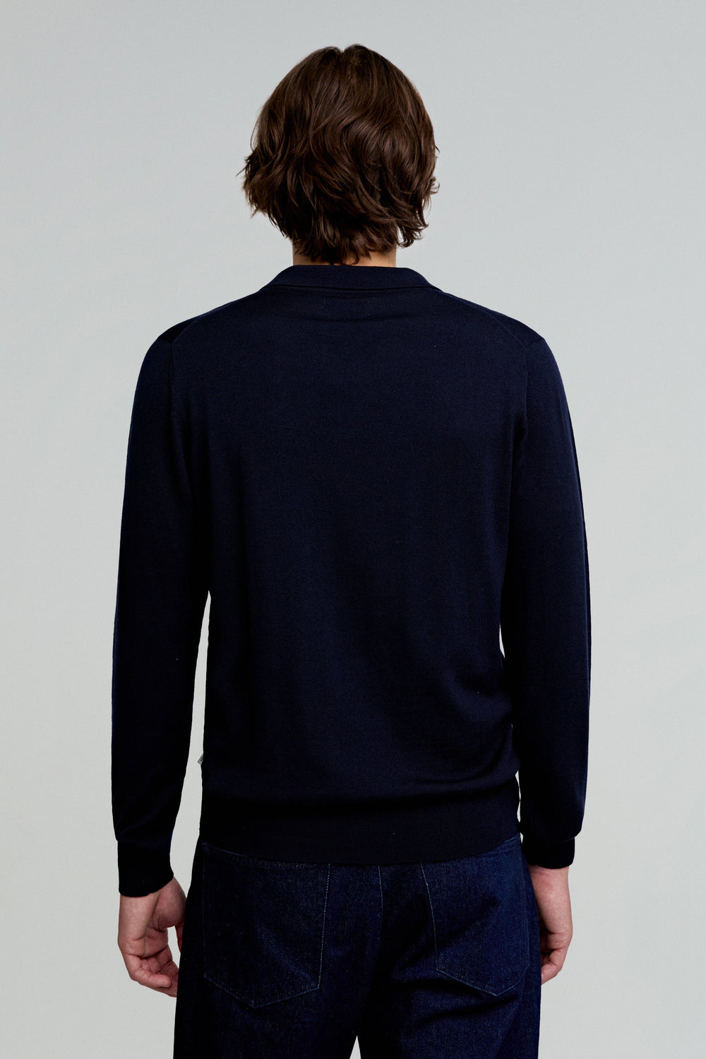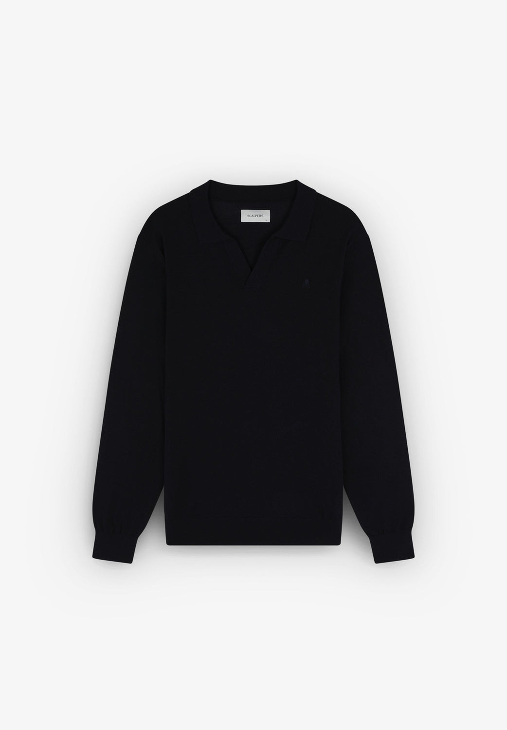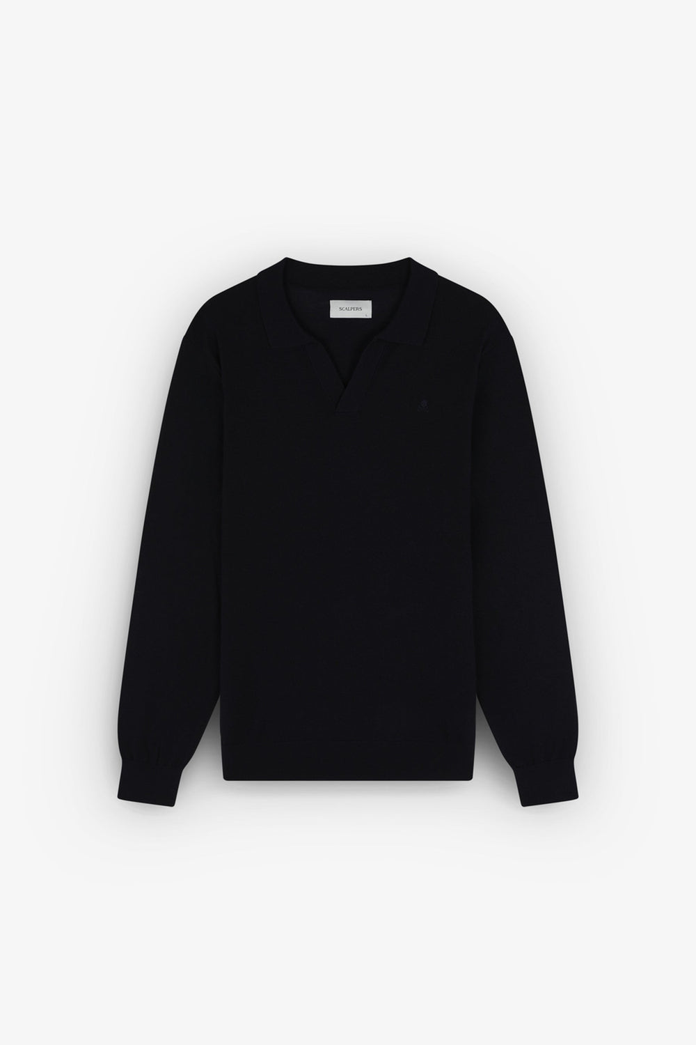 Jersey de punto tipo polo confeccionado en 100% lana merino. Regular fit, cuello clásico y manga larga. Calavera bordada a tono.