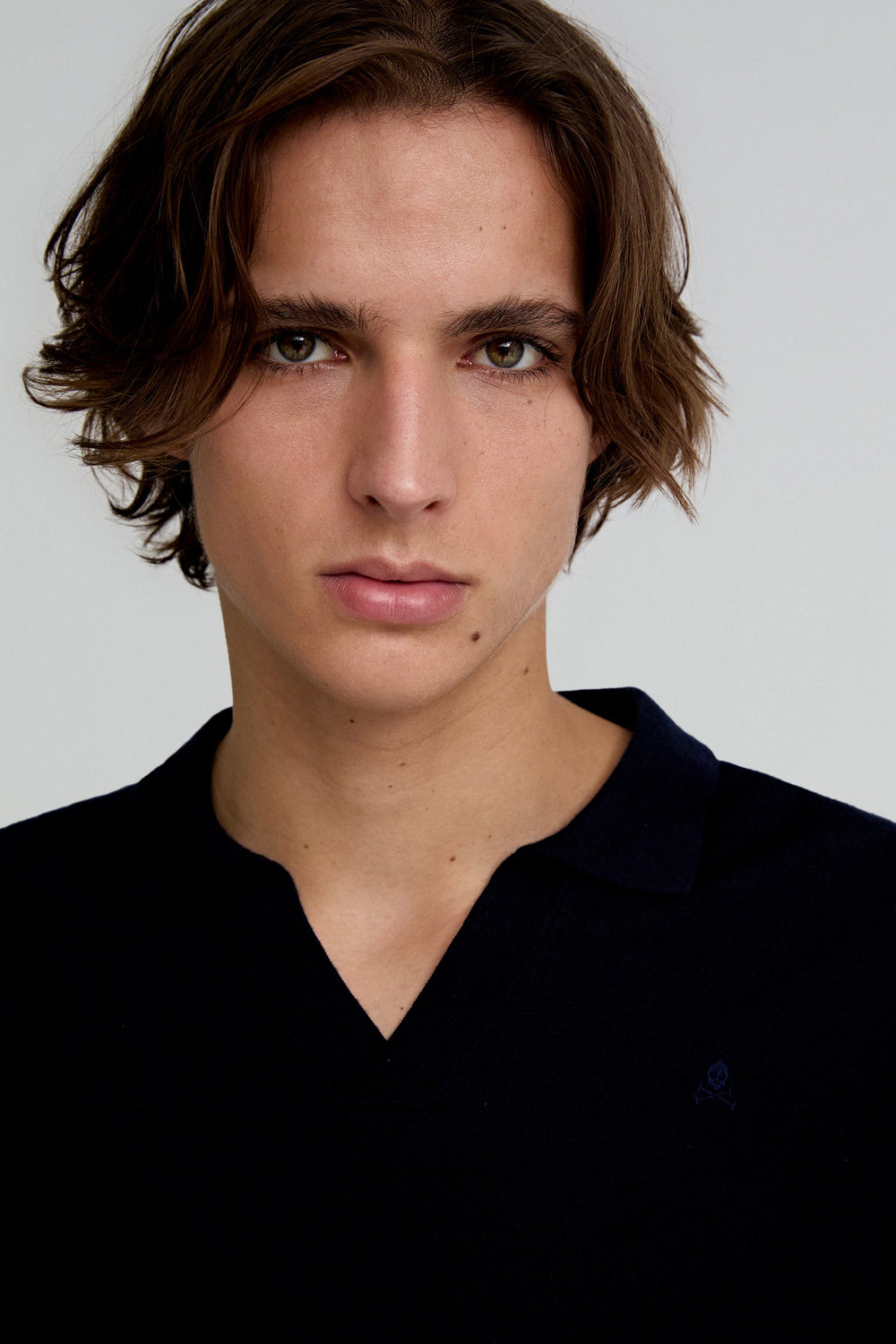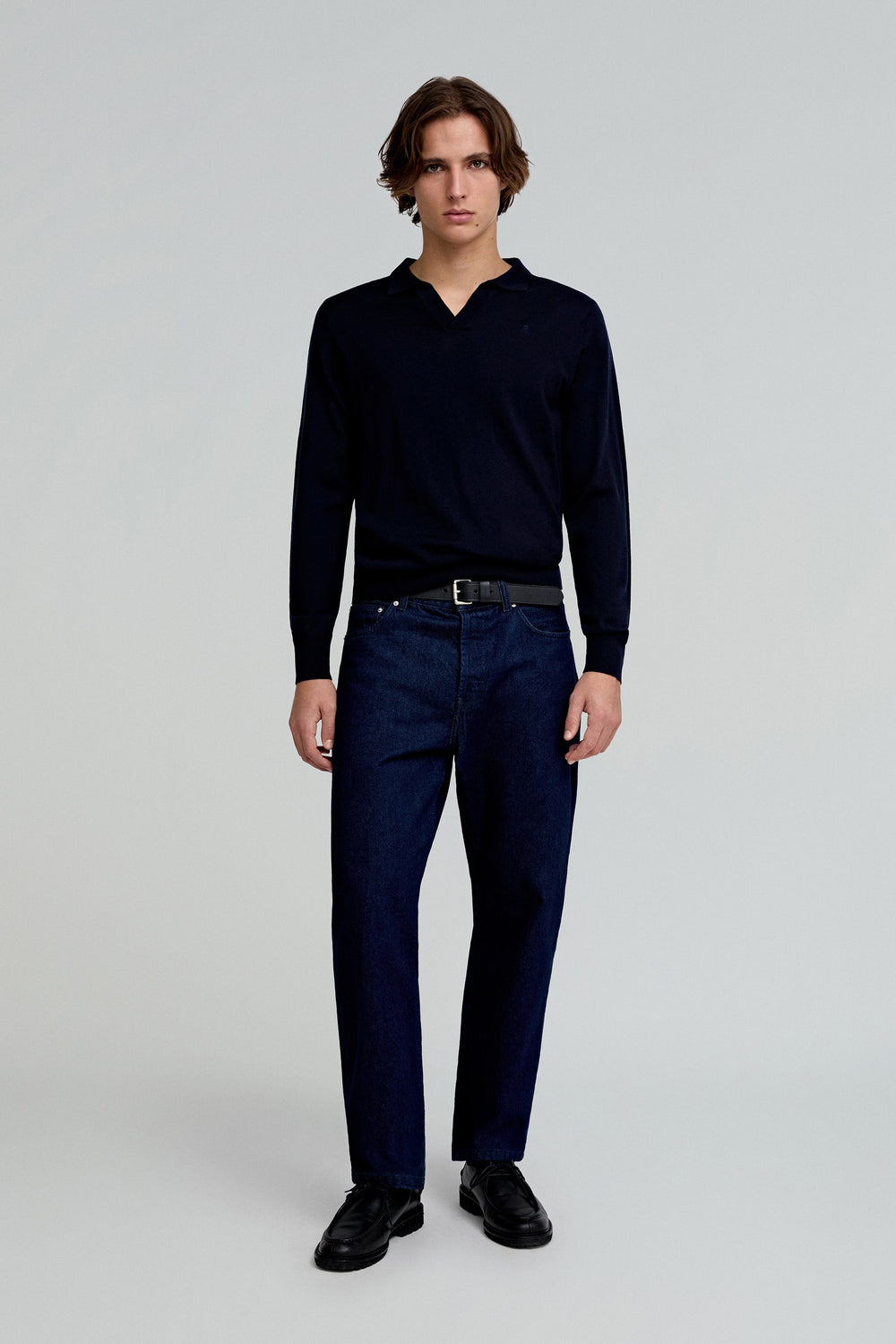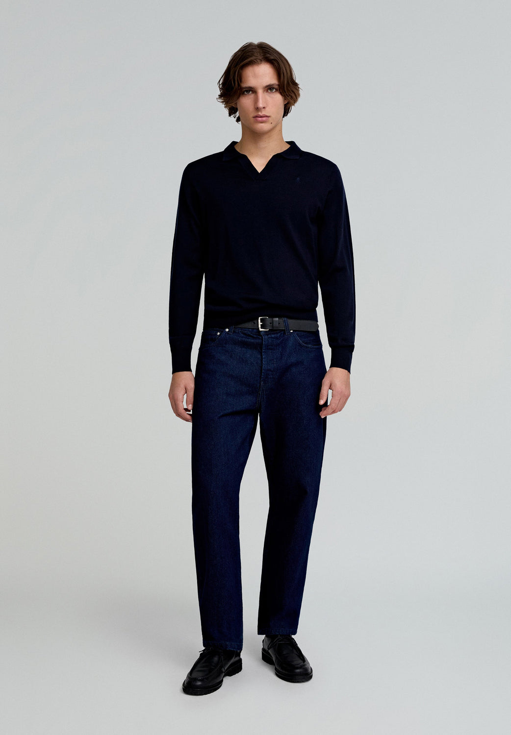 Jersey de punto tipo polo confeccionado en 100% lana merino. Regular fit, cuello clásico y manga larga. Calavera bordada a tono.