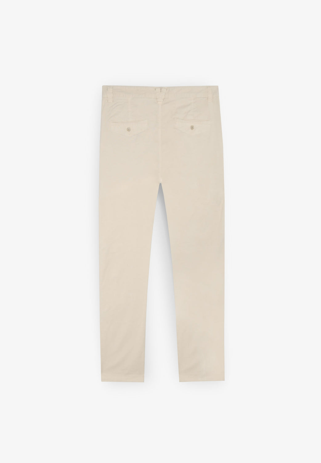 Pantalón chino casual confeccionado en mezcla de algodón ligeramente elástico. Cierre con botón y cremallera y bolsillos laterales y traseros. Trabillas en cintura.