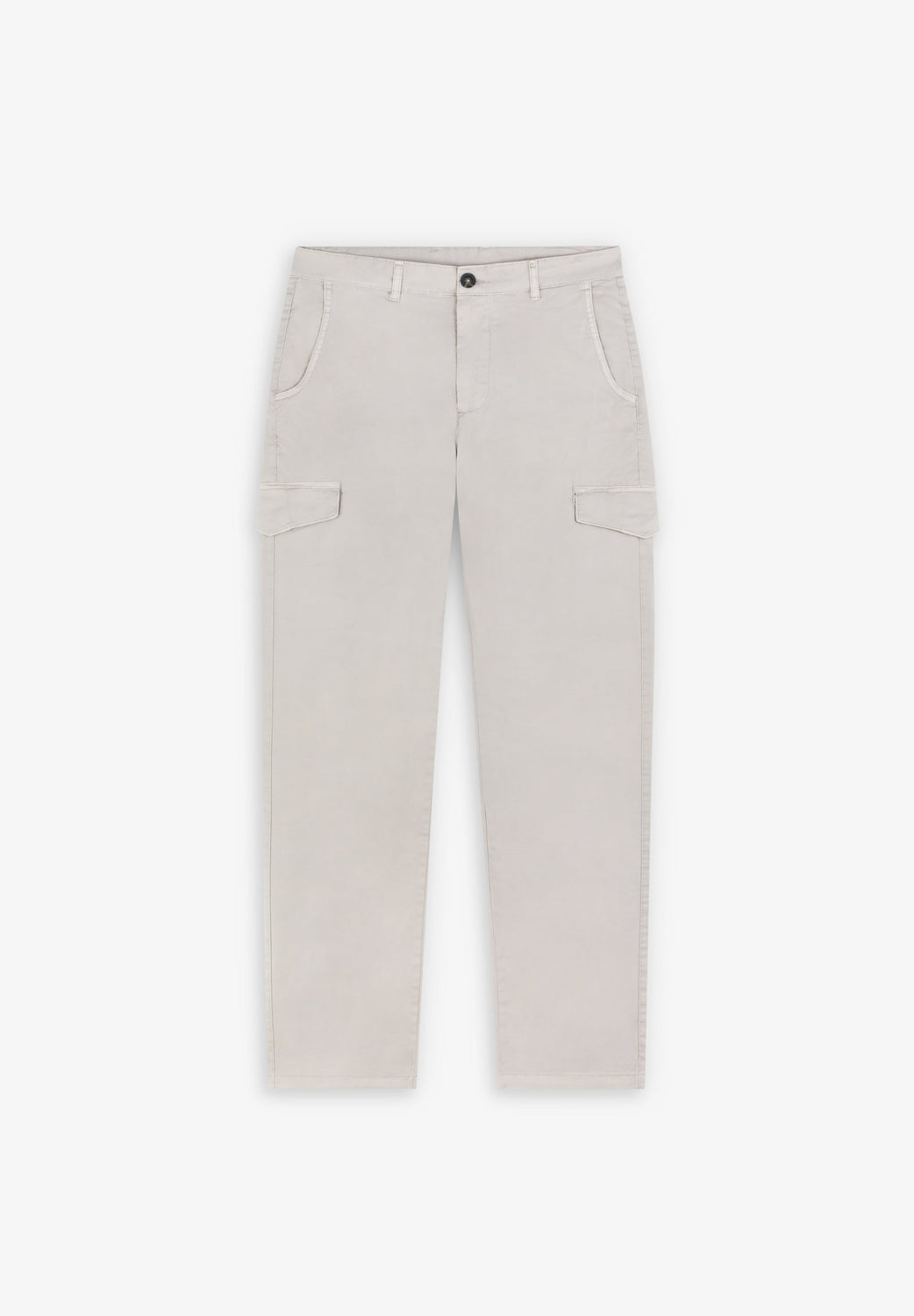 Pantalón cargo confeccionado en algodón BCI ligeramente elástico. Regular fit, cierre con botón y cremallera y bolsillos laterales y traseros. Trabillas en cintura y bolsillos en pernera con tapeta.