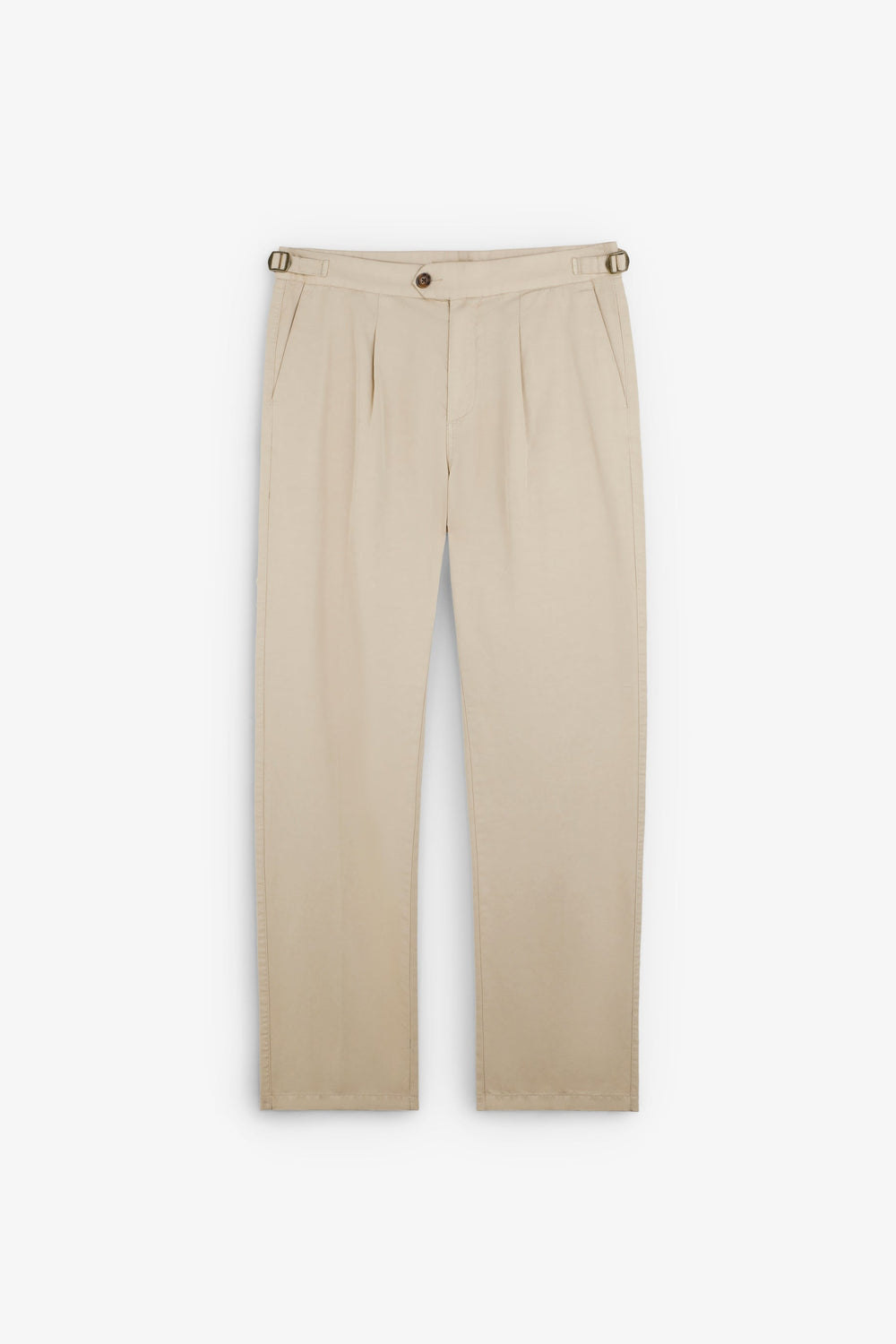 Pantalón chino. Corte Slim fit. Confeccionados en mezcla de algodón y lino. Cierre con cremallera oculta por tapeta y botón prolongado en cintura. Bolsillos laterales con boca inclinada. Bolsillos traseros de doble vivo y botón. Trabillas en cintura
