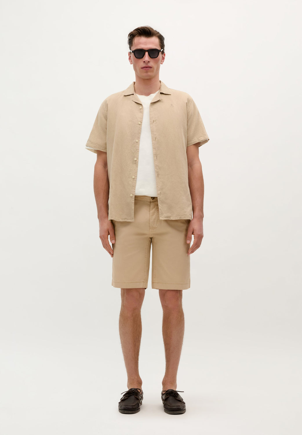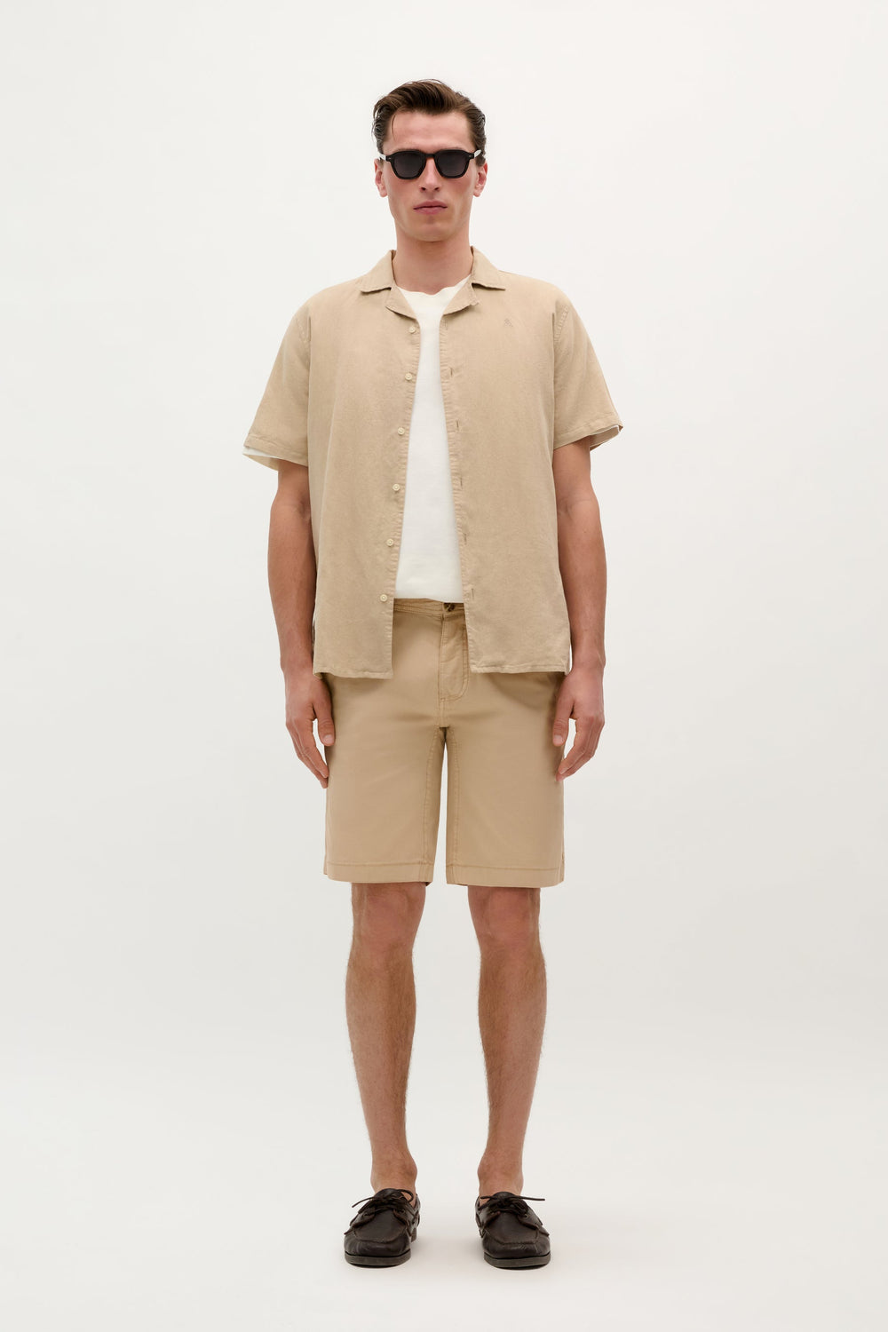 Bermuda clásica efecto lavado. Confeccionada en 100% algodón orgánico. Corte Regular fit. Cierre con botones. Bolsillos laterales con boca inclinada. Bolsillos traseros de vivo y cierre con botón. Trabillas en cintura.