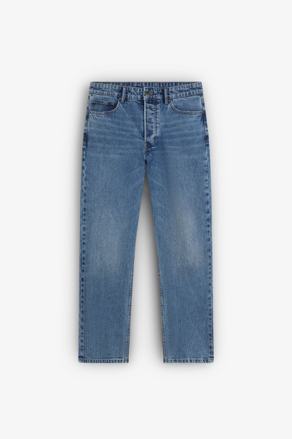 Pantalón vaquero confeccionado en algodón BCI. Cierre mediante botón y cremallera. Dos bolsillos laterales y traseros. Trabillas en cintura.