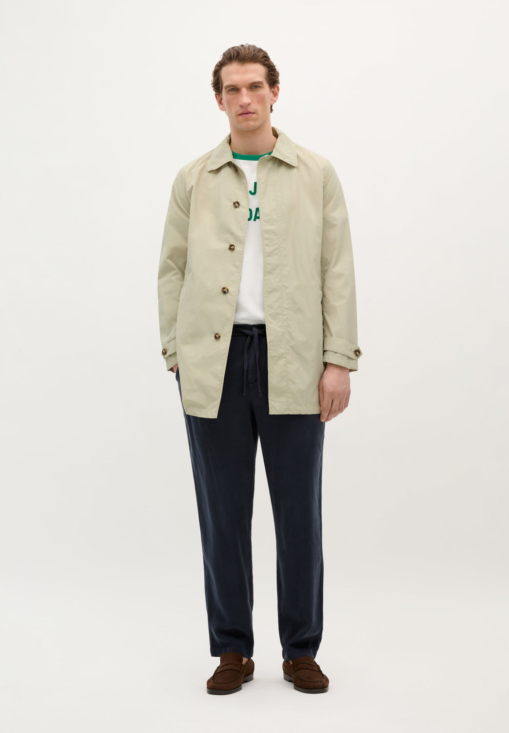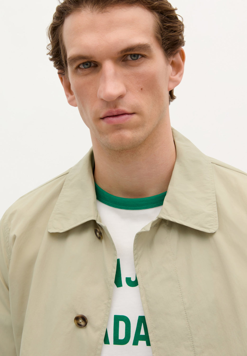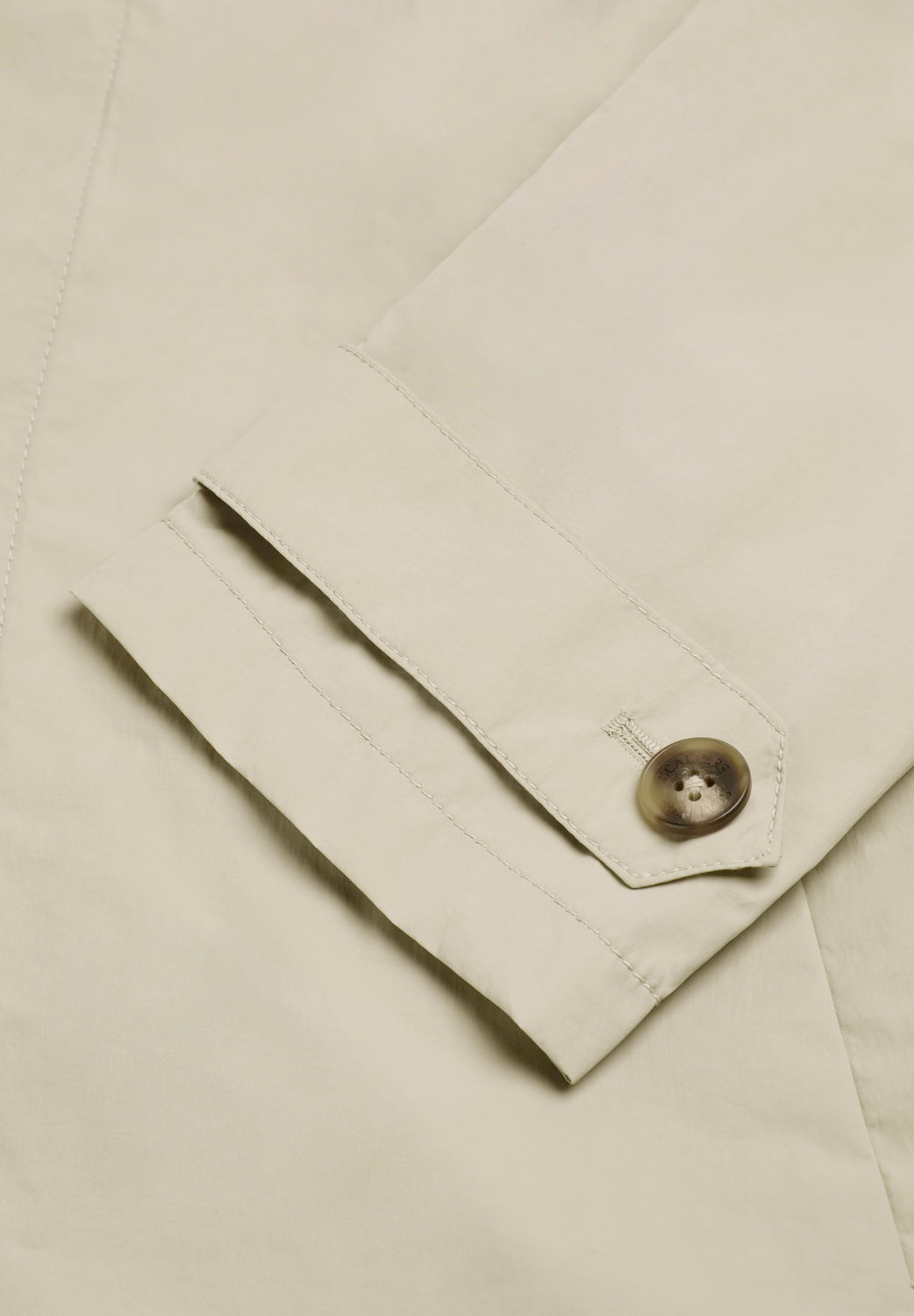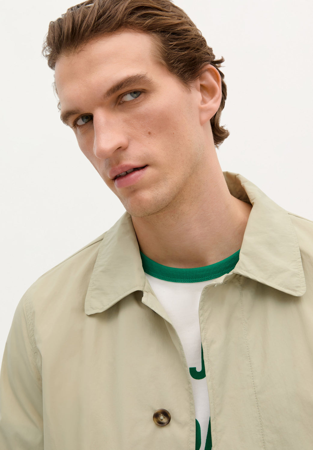 Gabardina ligera. Confeccionada en tejido técnico impermeable, corte Regular Fit, cuello camisero, bolsillos ocultos y terminación con ceñidor de botón en el puño.