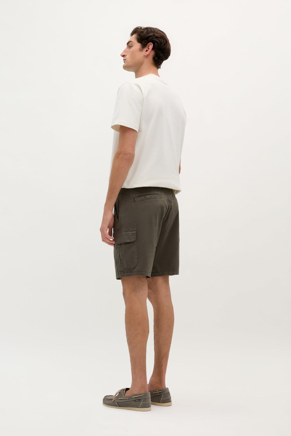 Pantalón corto confeccionado en Algodón Orgánico. Corte Regular. Bolsillos en laterales. Bolsillos posteriores con logo en etiqueta.