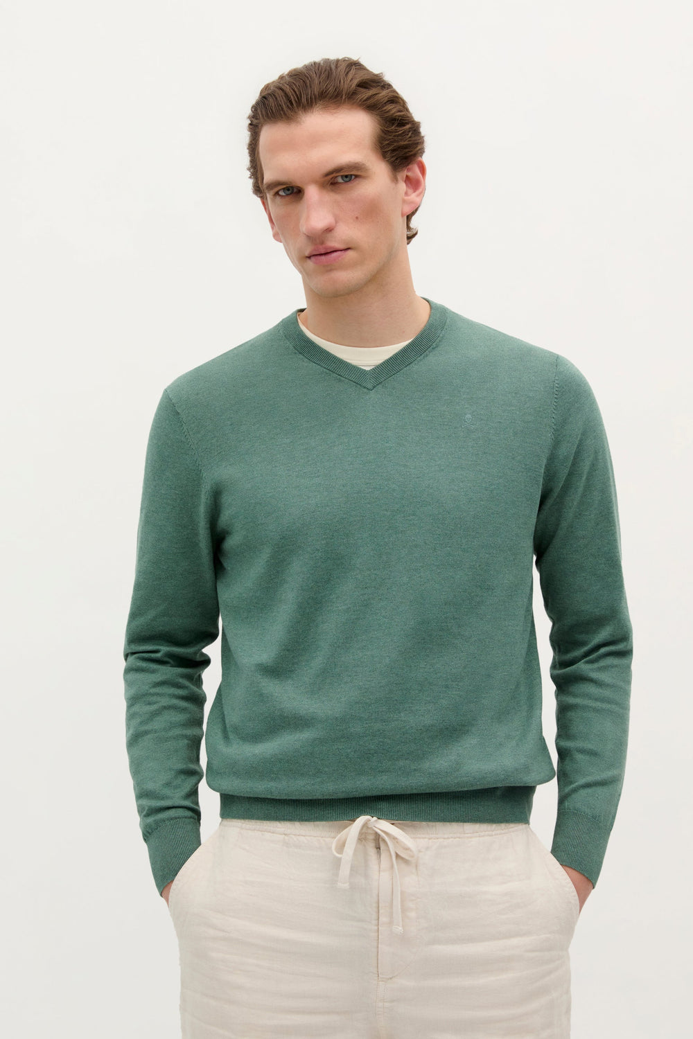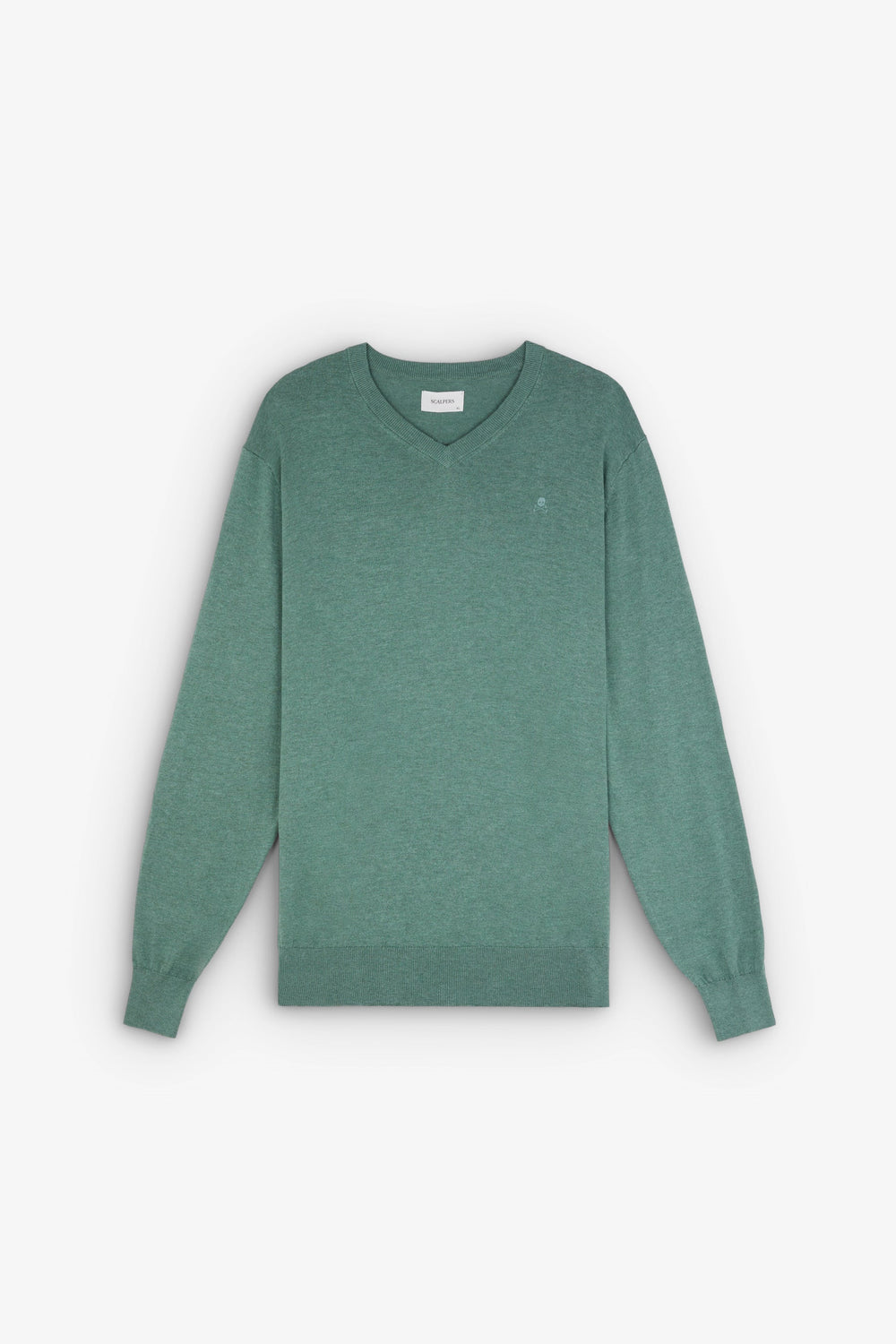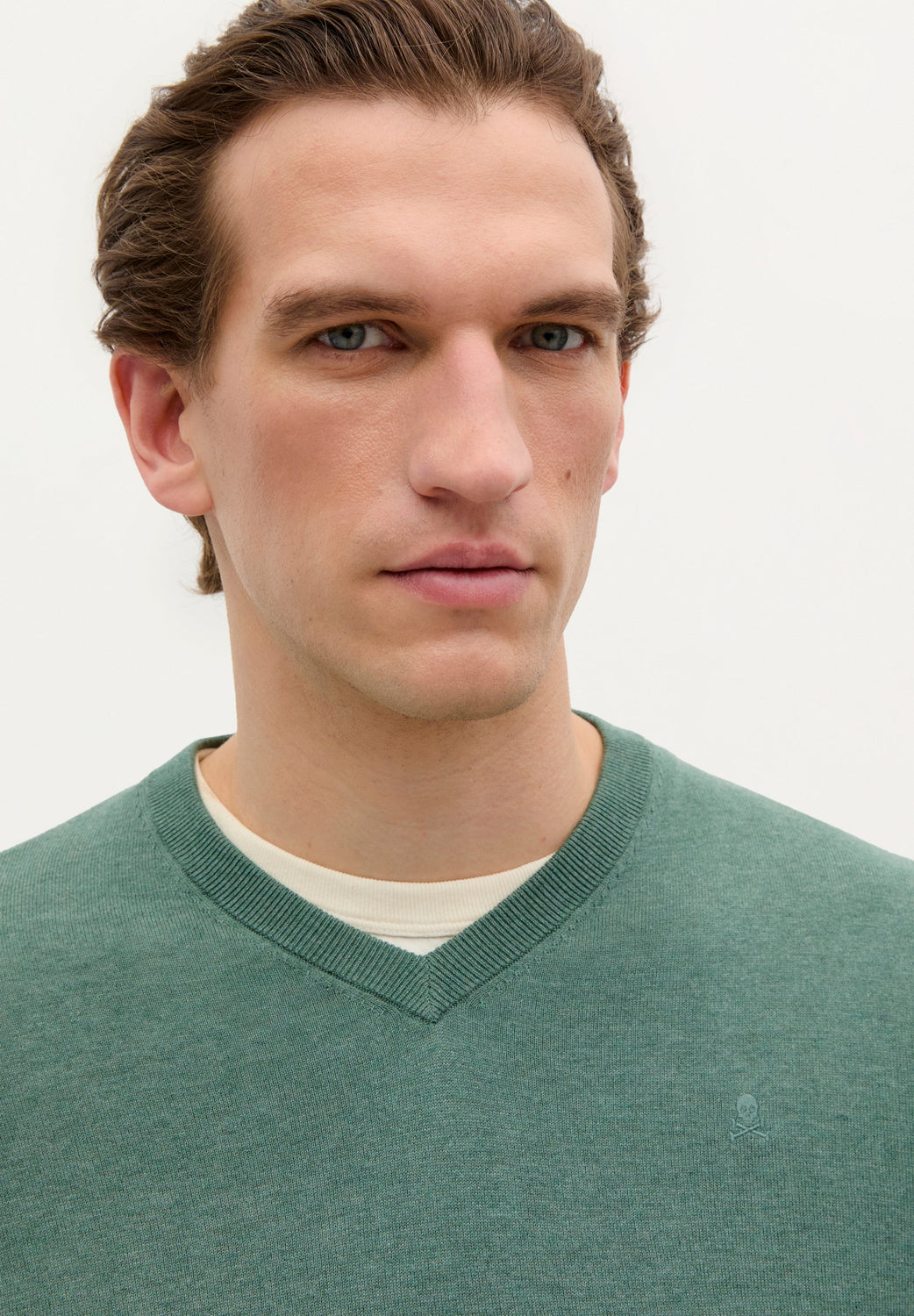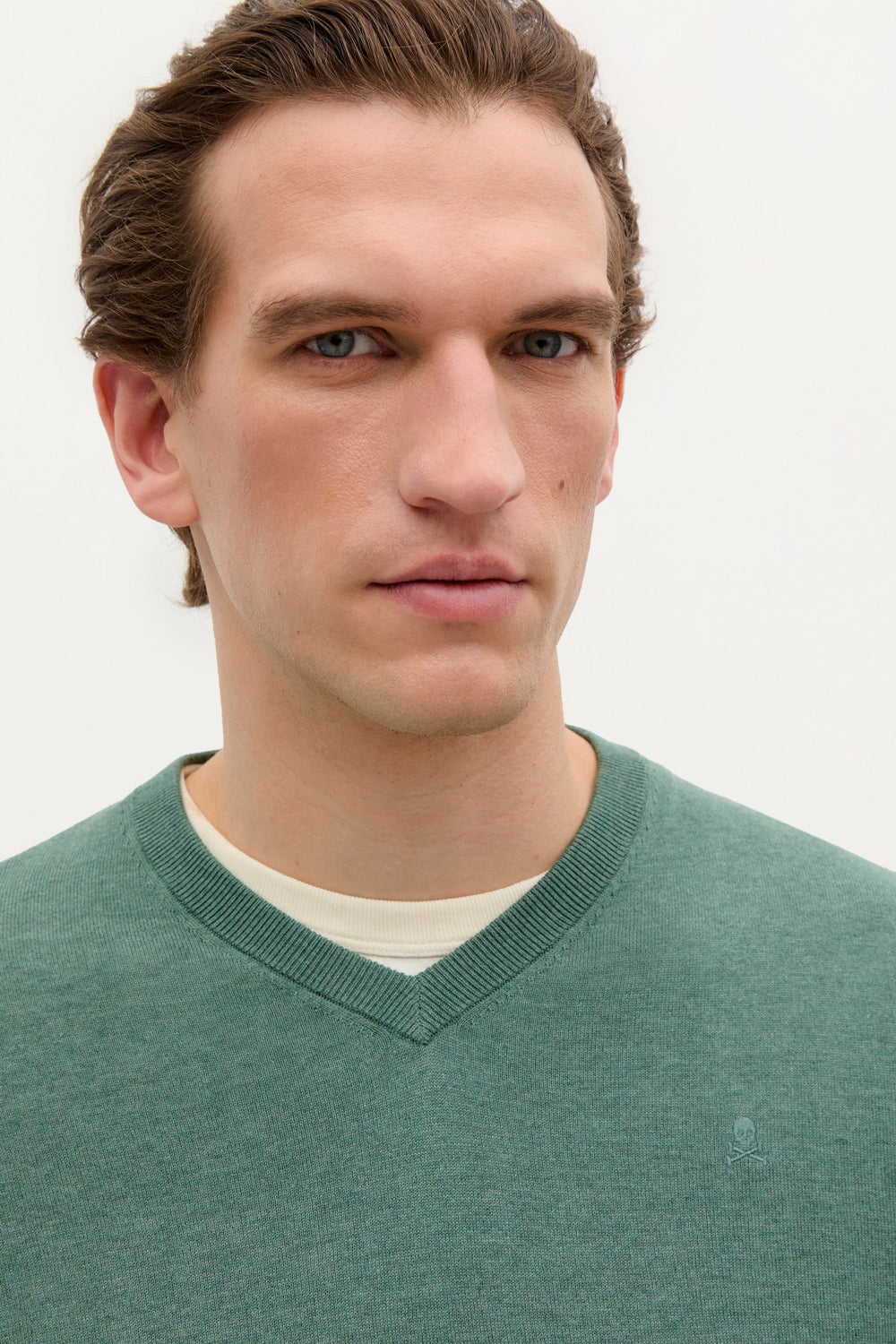 Jersey con calavera bordada a tono. Confeccionado en algodón 100%. Corte Regular Fit. Cuello de pico. Manga larga.