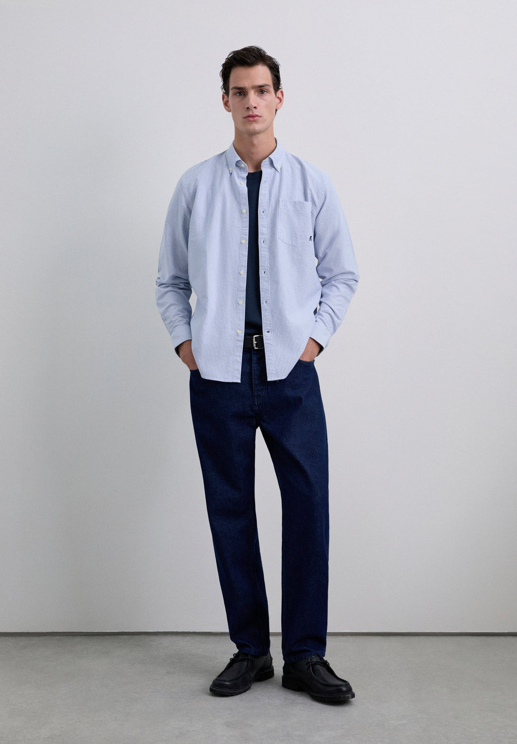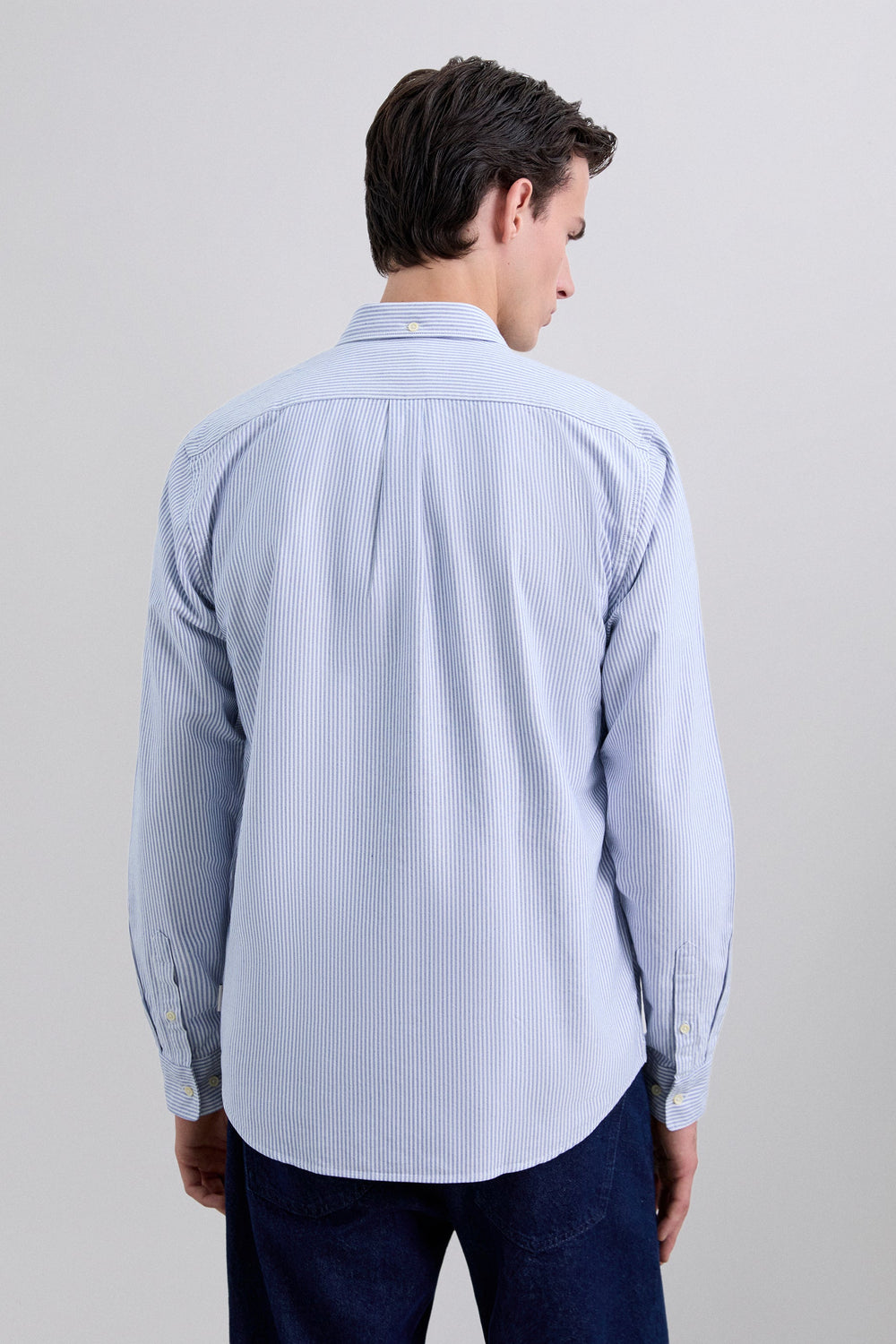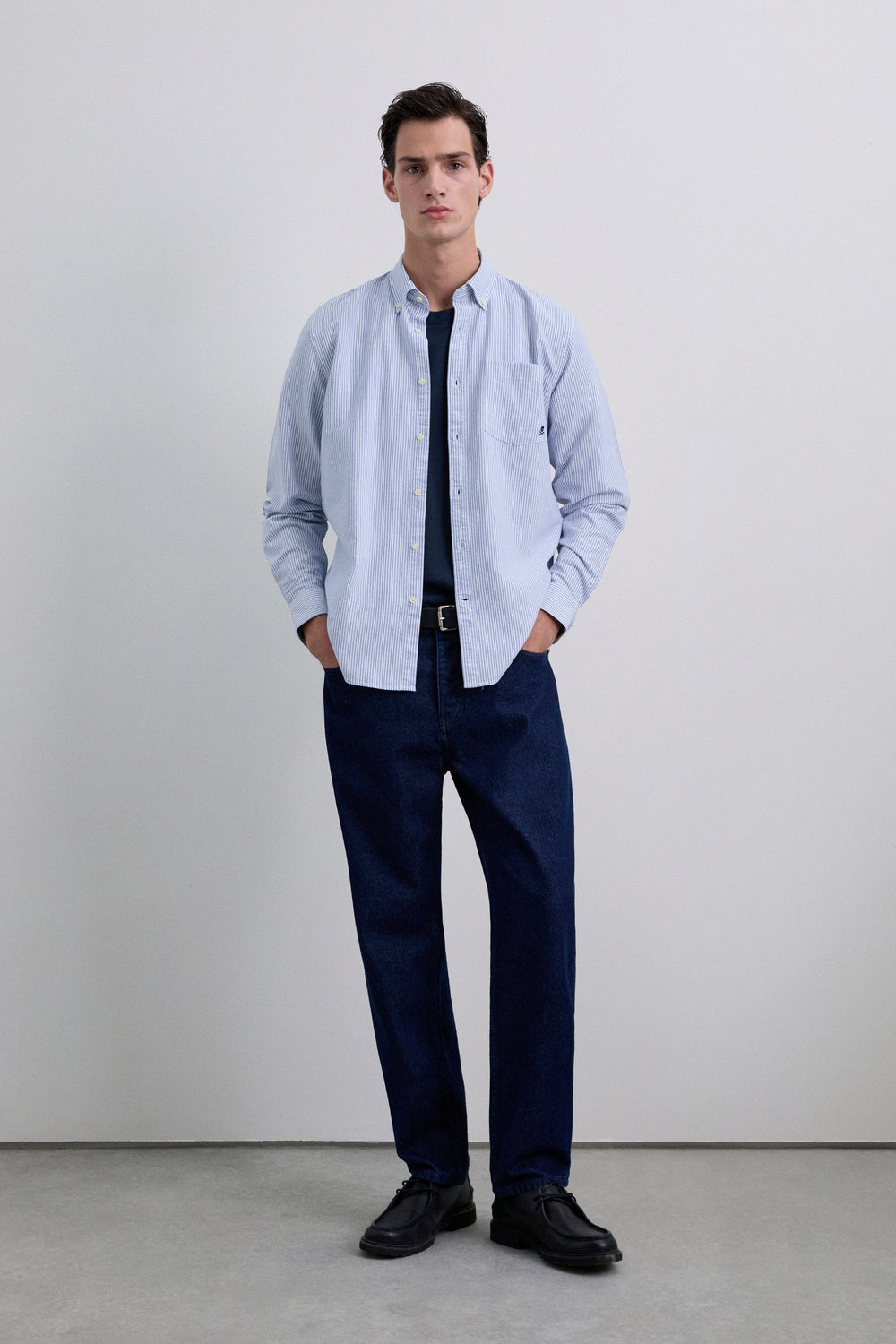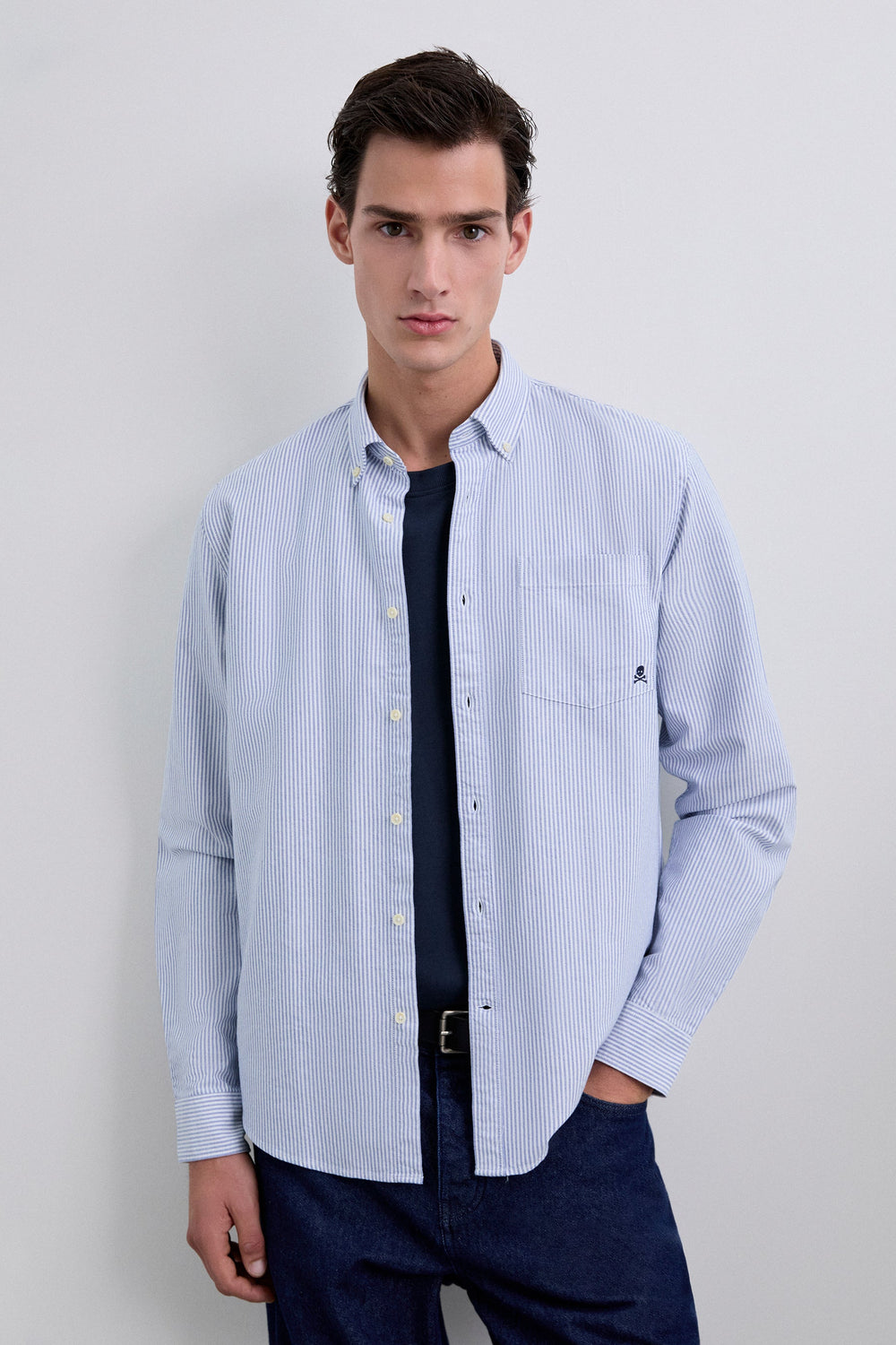 Camisa con calavera bordada a tono en pecho. Confeccionada en 100% Algodón BCI. Corte Regular fit. Cuello con botones. Manga larga terminada en puño con botones. Cierre frontal con botones. Bolsillo tipo parche en pecho.