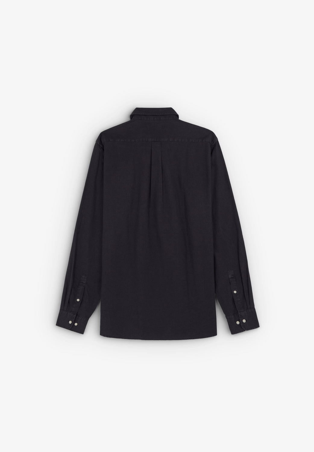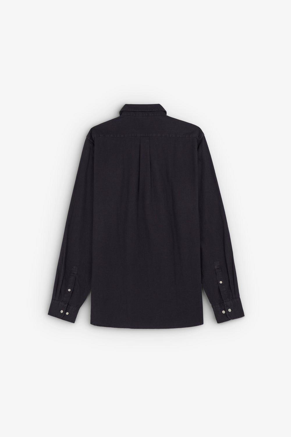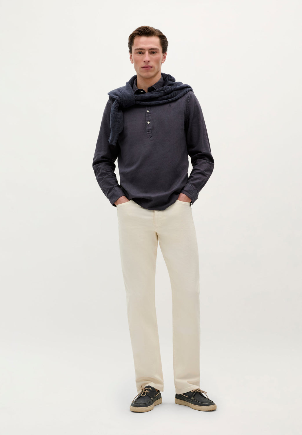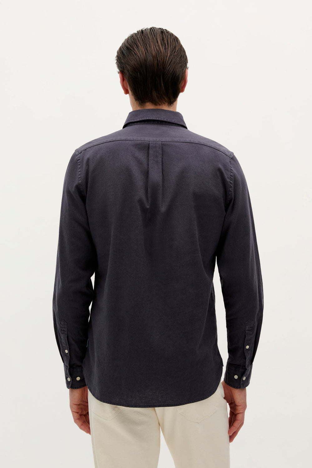 Camisa confeccionada en Algodón y Lino. Cerradura abotonada estilo polo. Manga Larga. Cierre en puños ajustable mediante botón. Monograma bordado a tono en parte frontal.