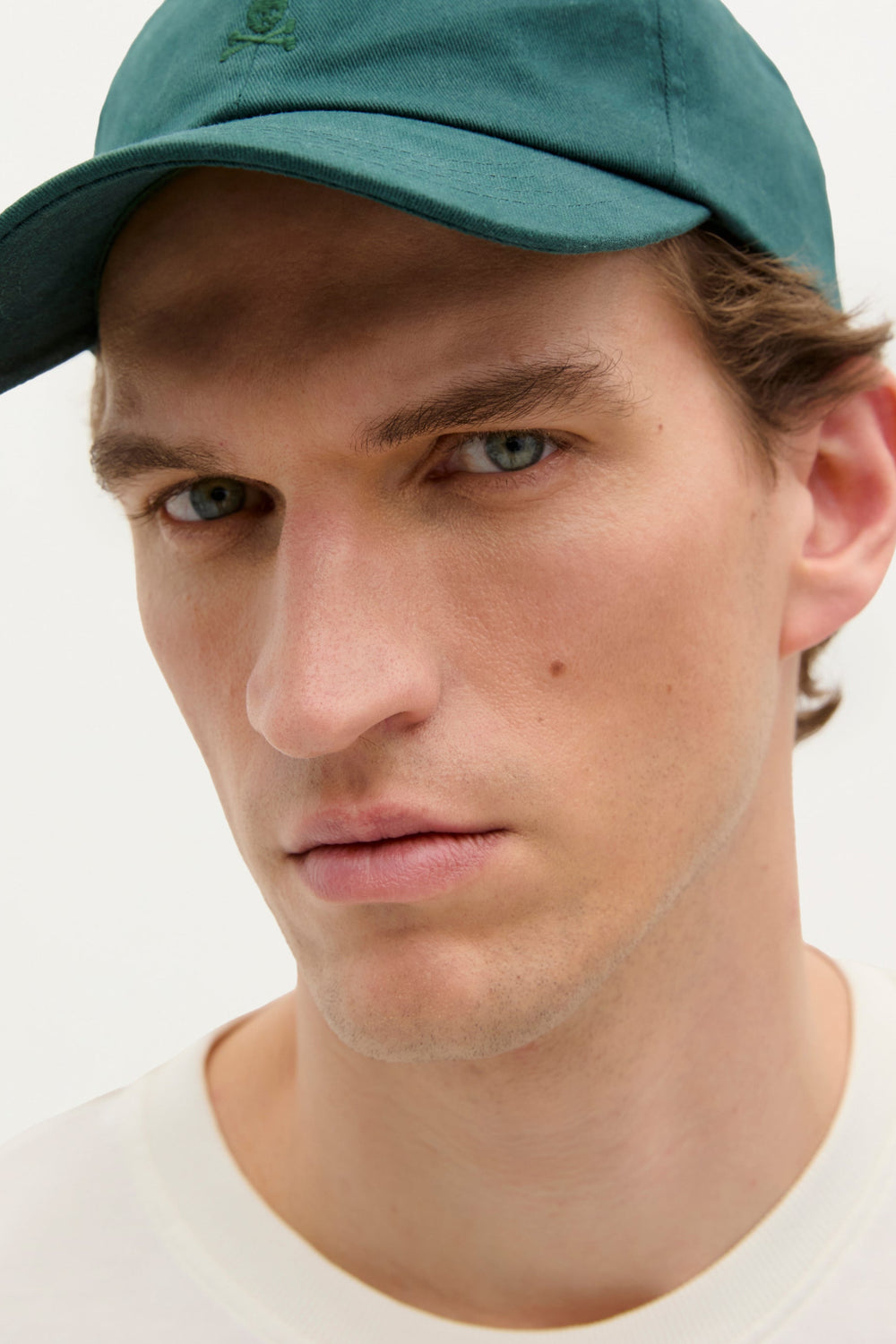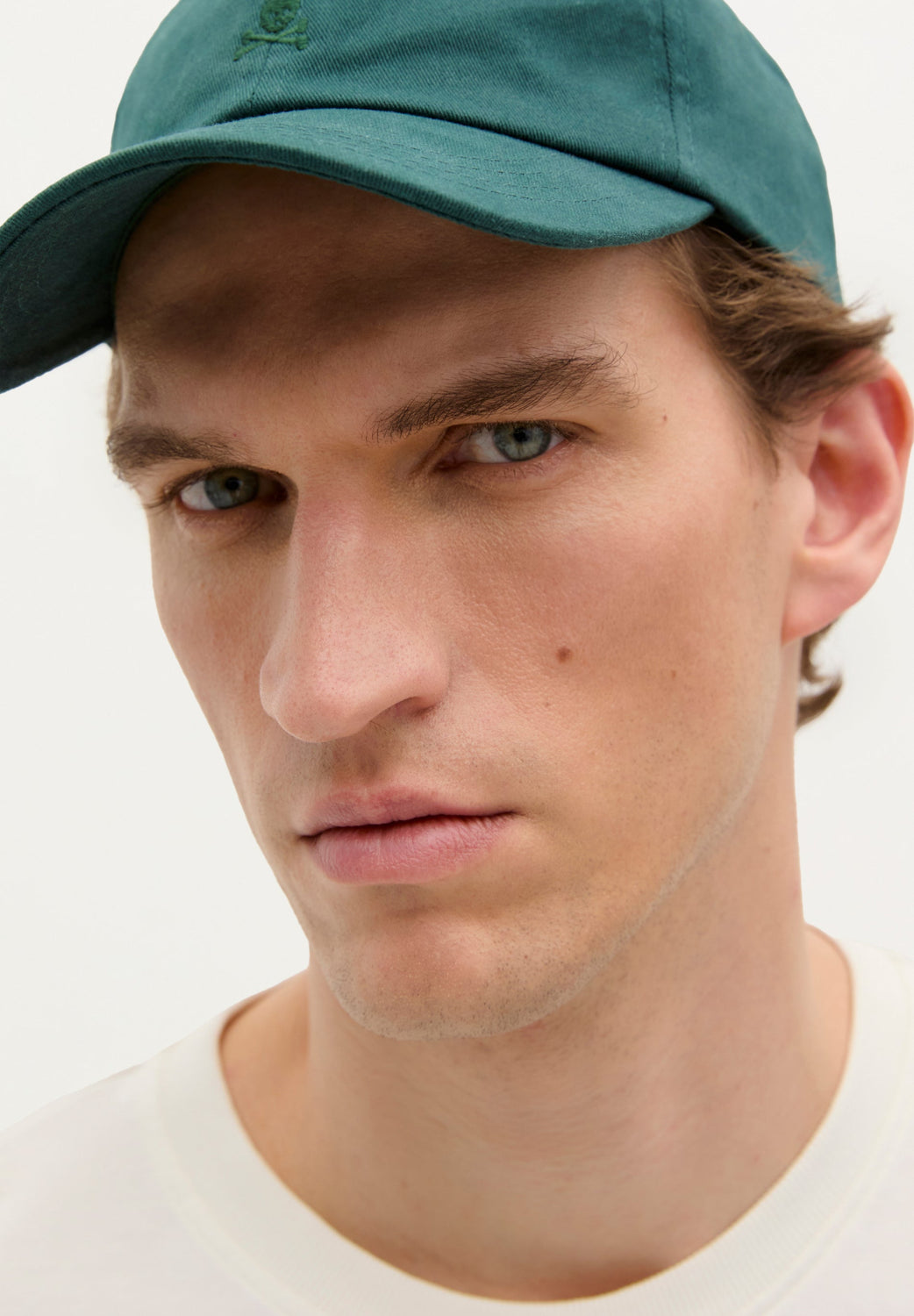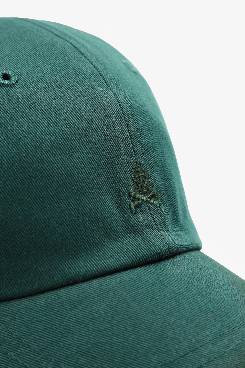 Gorra con detalle de calavera bordada frontal a tono. Confeccionada en algodón y otras fibras recicladas. Cierre trasero ajustable.