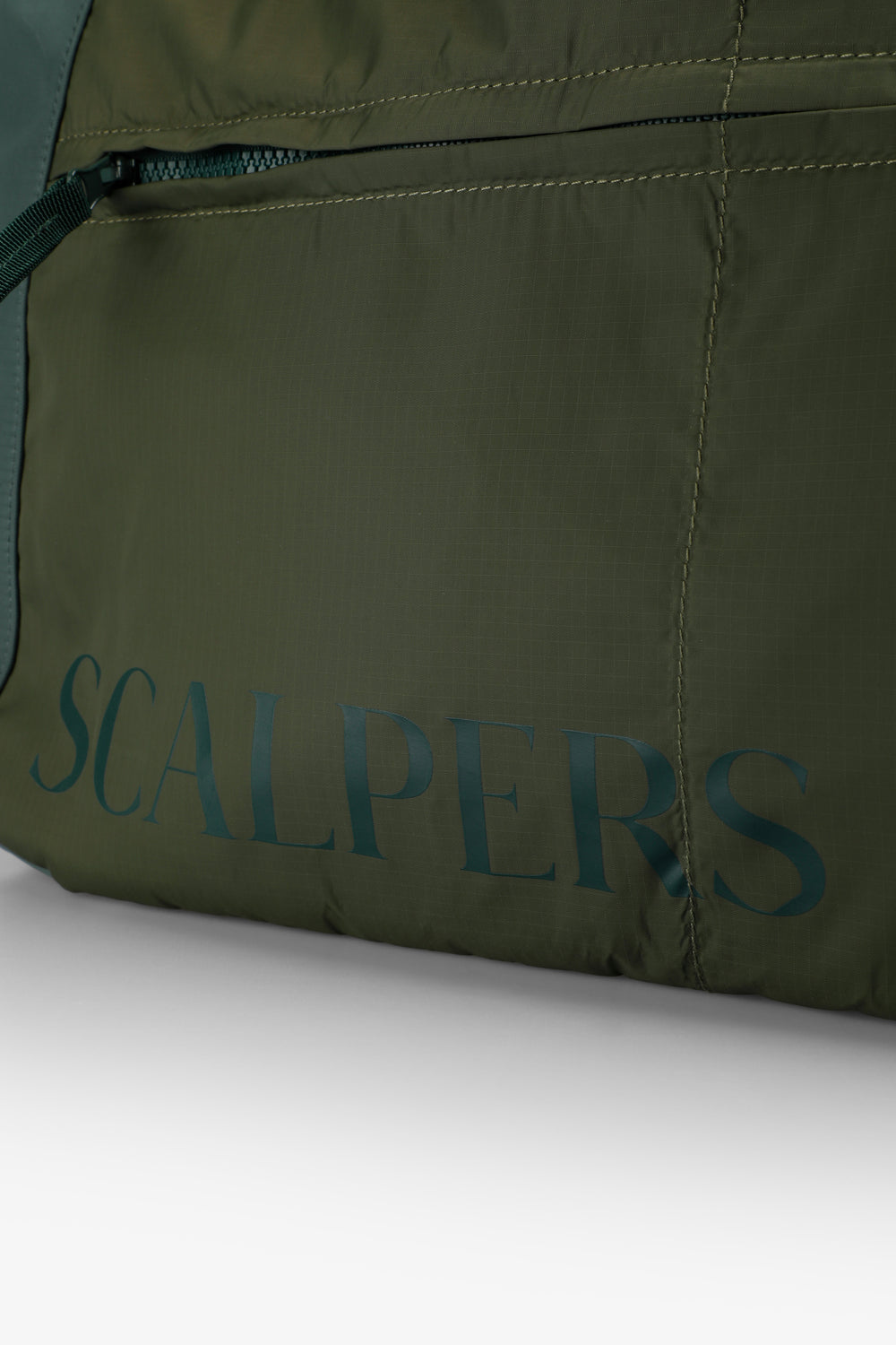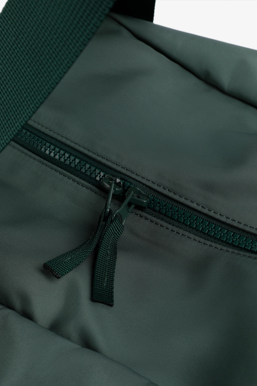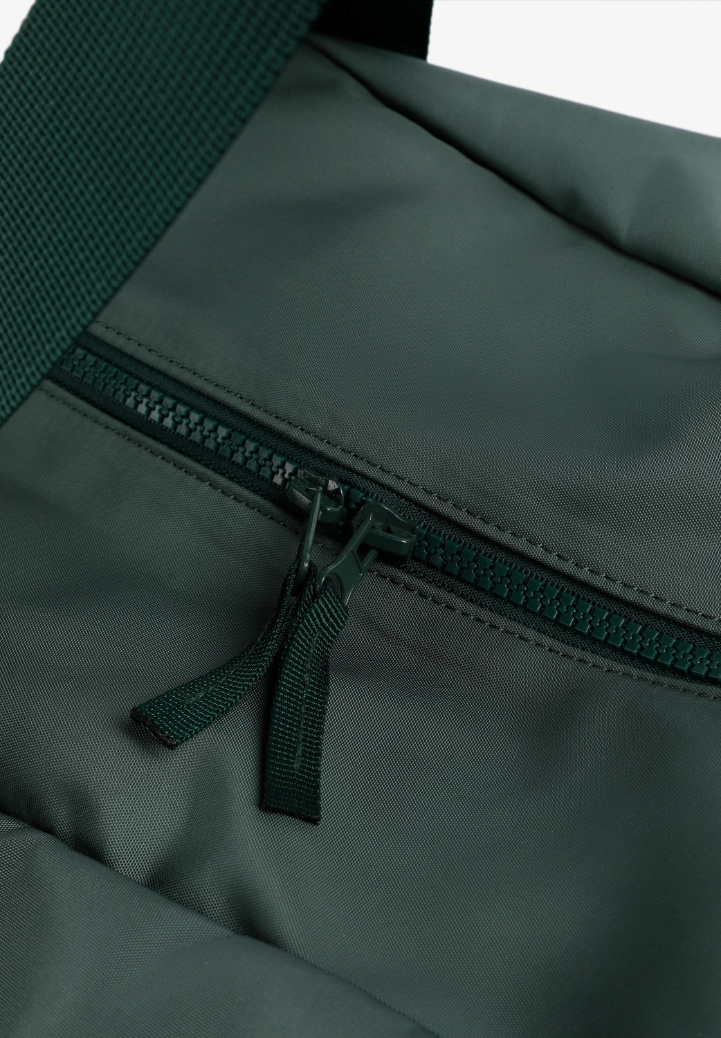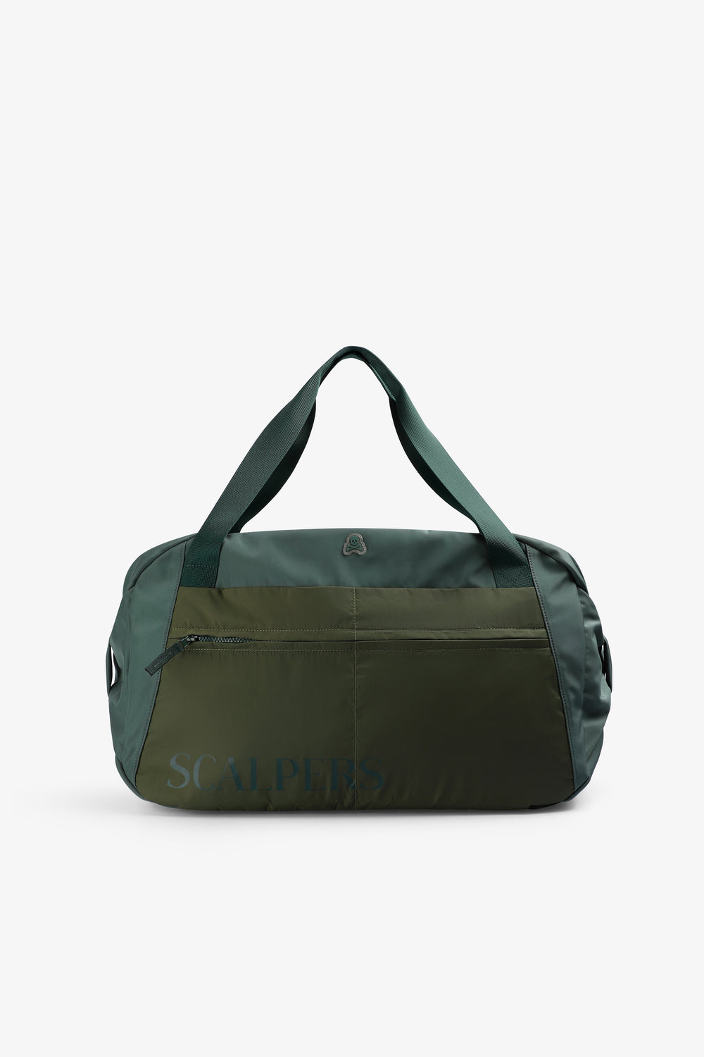 Bolsa de viaje confeccionada en tejido técnico. Compartimento principal con cierre por cremallera. Bolsillo interior con cierre por cremallera. Dos bolsillos laterales con cremallera. Asa principal de hombro. Asa lateral. Detalle de logo en ambos laterales.