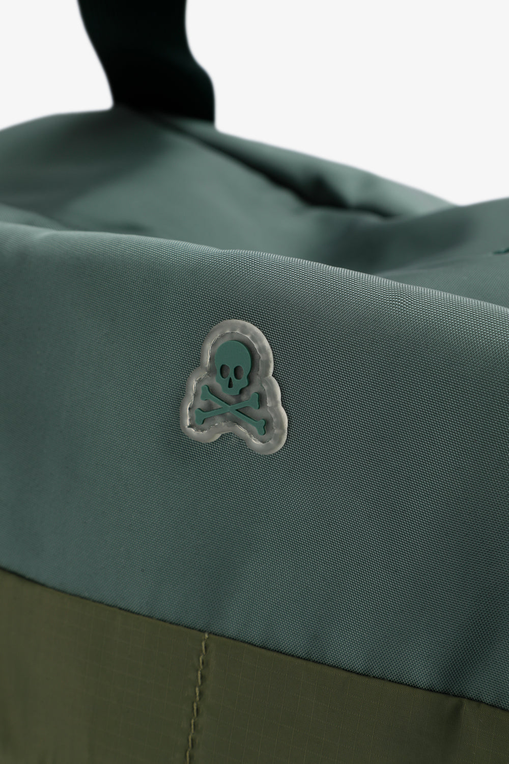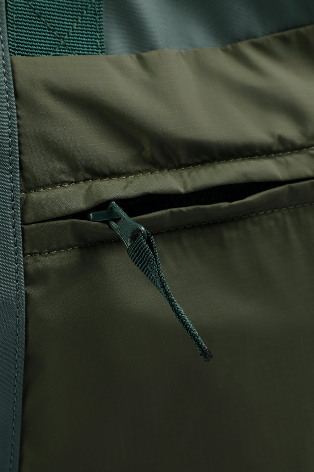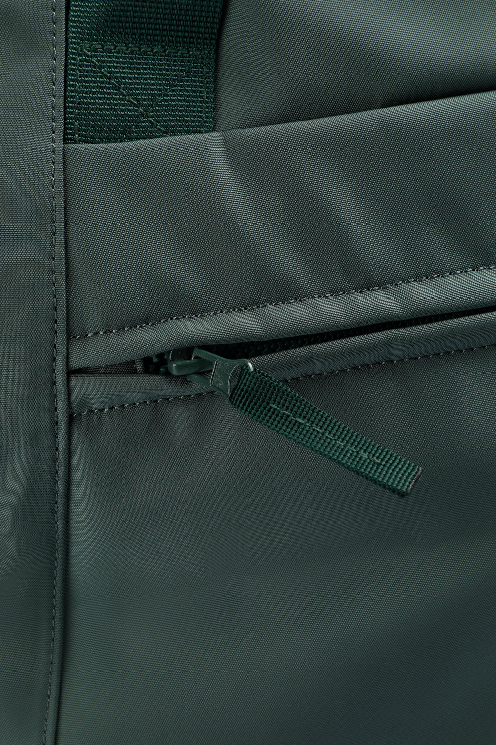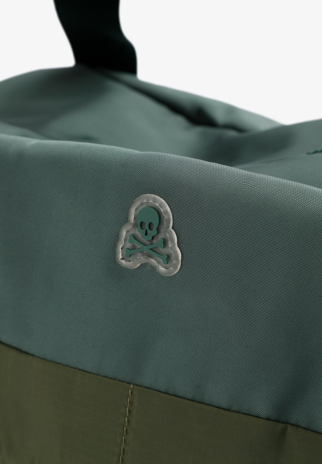 Bolsa de viaje confeccionada en tejido técnico. Compartimento principal con cierre por cremallera. Bolsillo interior con cierre por cremallera. Dos bolsillos laterales con cremallera. Asa principal de hombro. Asa lateral. Detalle de logo en ambos laterales.