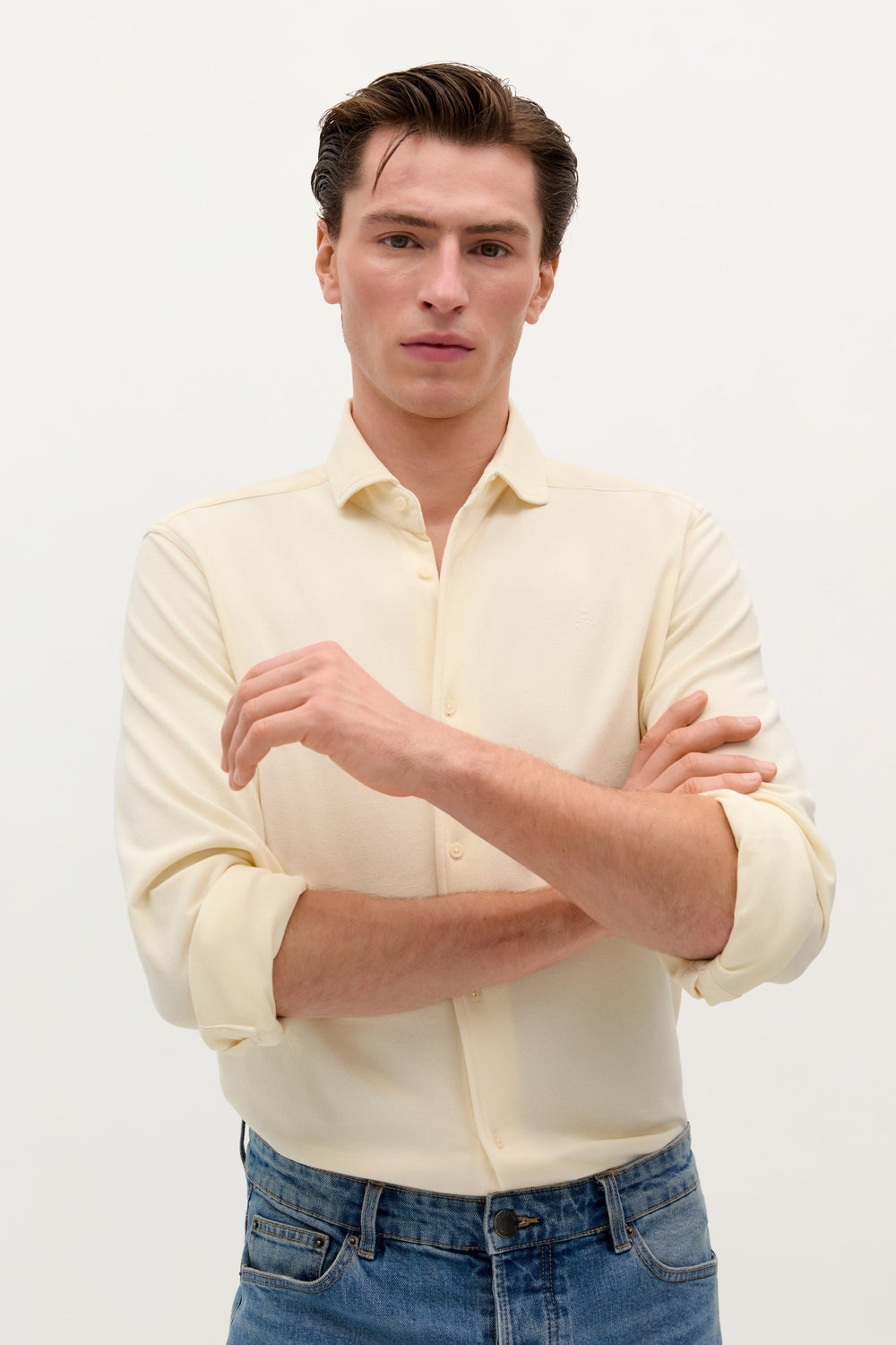 Camisa confeccionada en 100% Algodón Orgánico BCI. Cierre por abotonadura en frontal. Manga larga. Puños ajustables mediante botón. Monograma a tono en parte delantera.