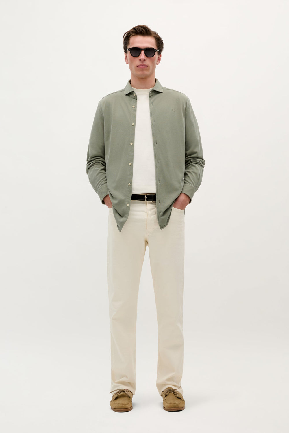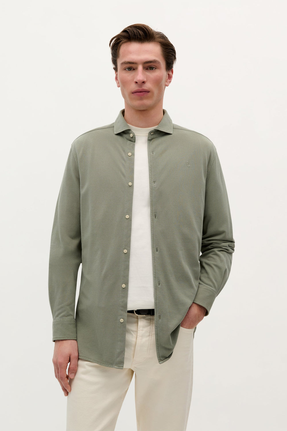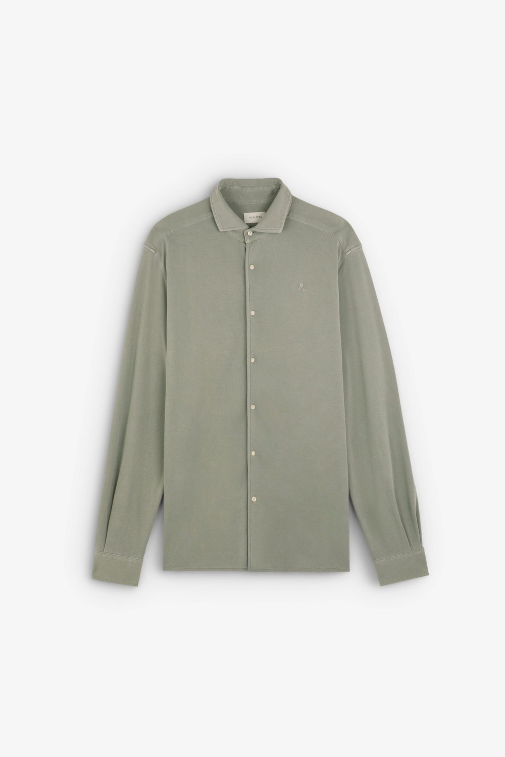 Camisa confeccionada en 100% Algodón Orgánico BCI. Cierre por abotonadura en frontal. Manga larga. Puños ajustables mediante botón. Monograma a tono en parte delantera.