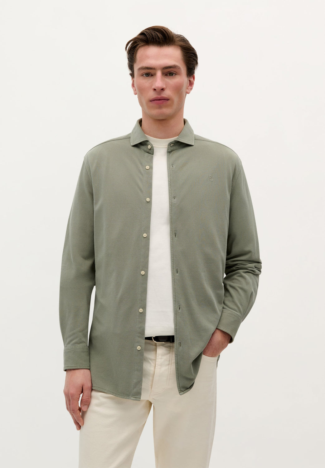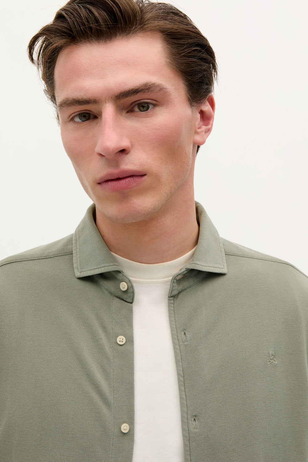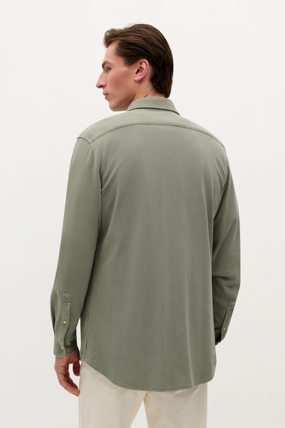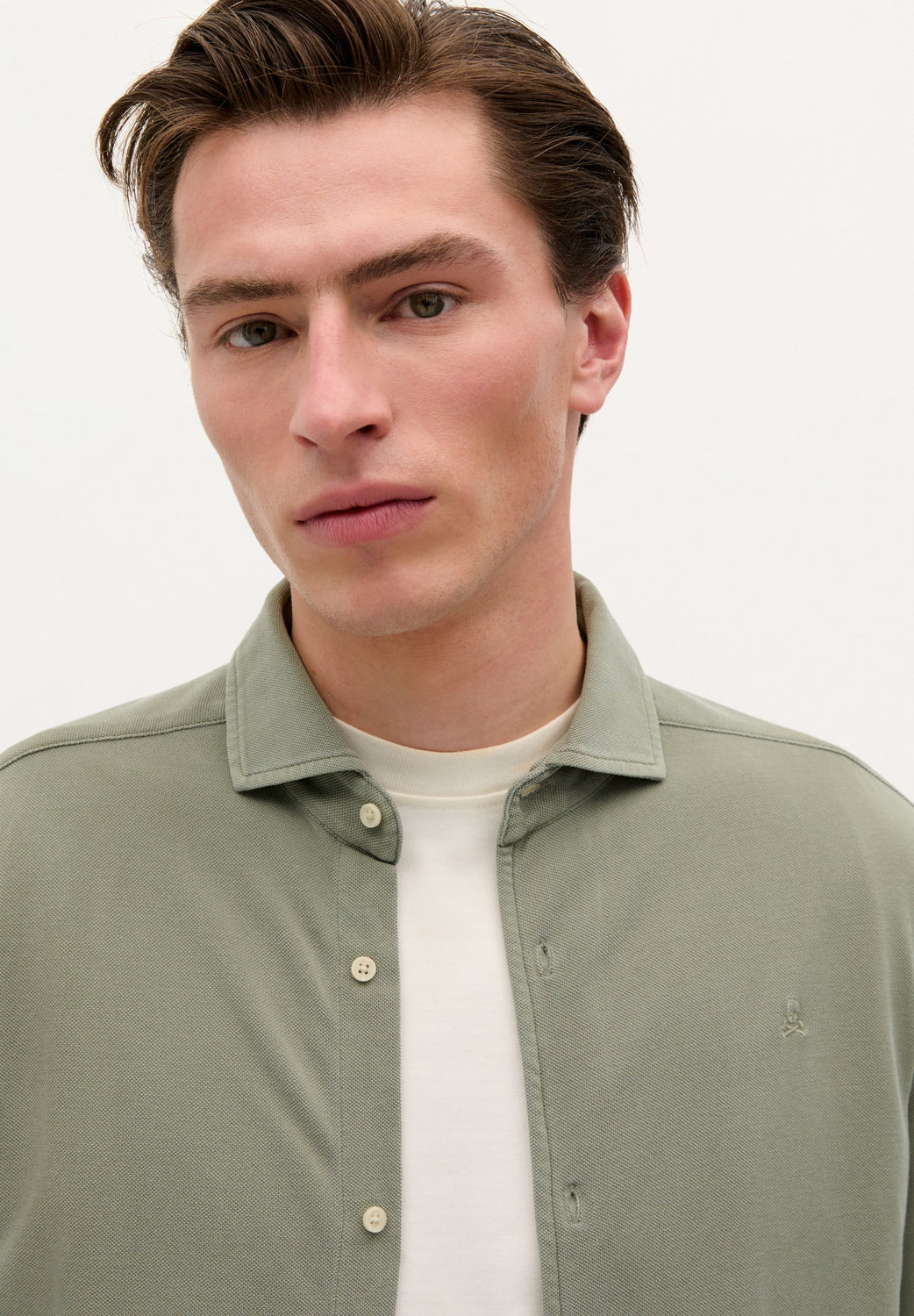 Camisa confeccionada en 100% Algodón Orgánico BCI. Cierre por abotonadura en frontal. Manga larga. Puños ajustables mediante botón. Monograma a tono en parte delantera.