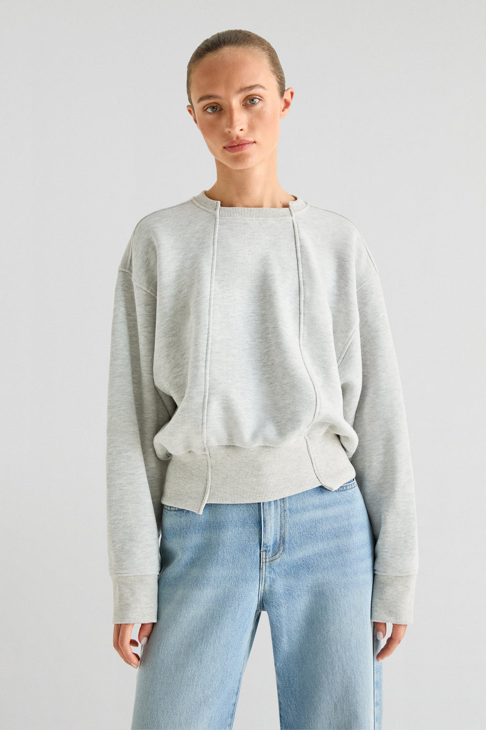 Sudadera confeccionada en tejido mezcla de algodón. Regular fit, cuello redondo con detalle y manga larga. Cortes delanteros y logo trasero.