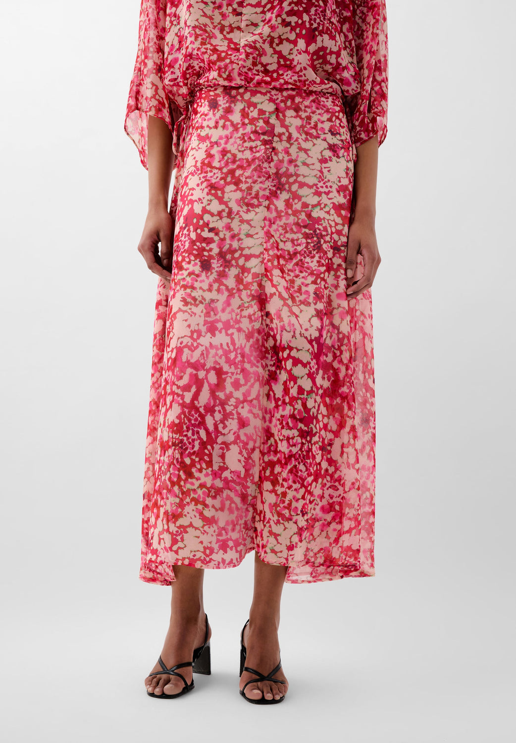 Falda Midi. Estampada. Detalle de volantes en bajos. Cierre en espalda mediante cremallera camuflada. Hecho en España.