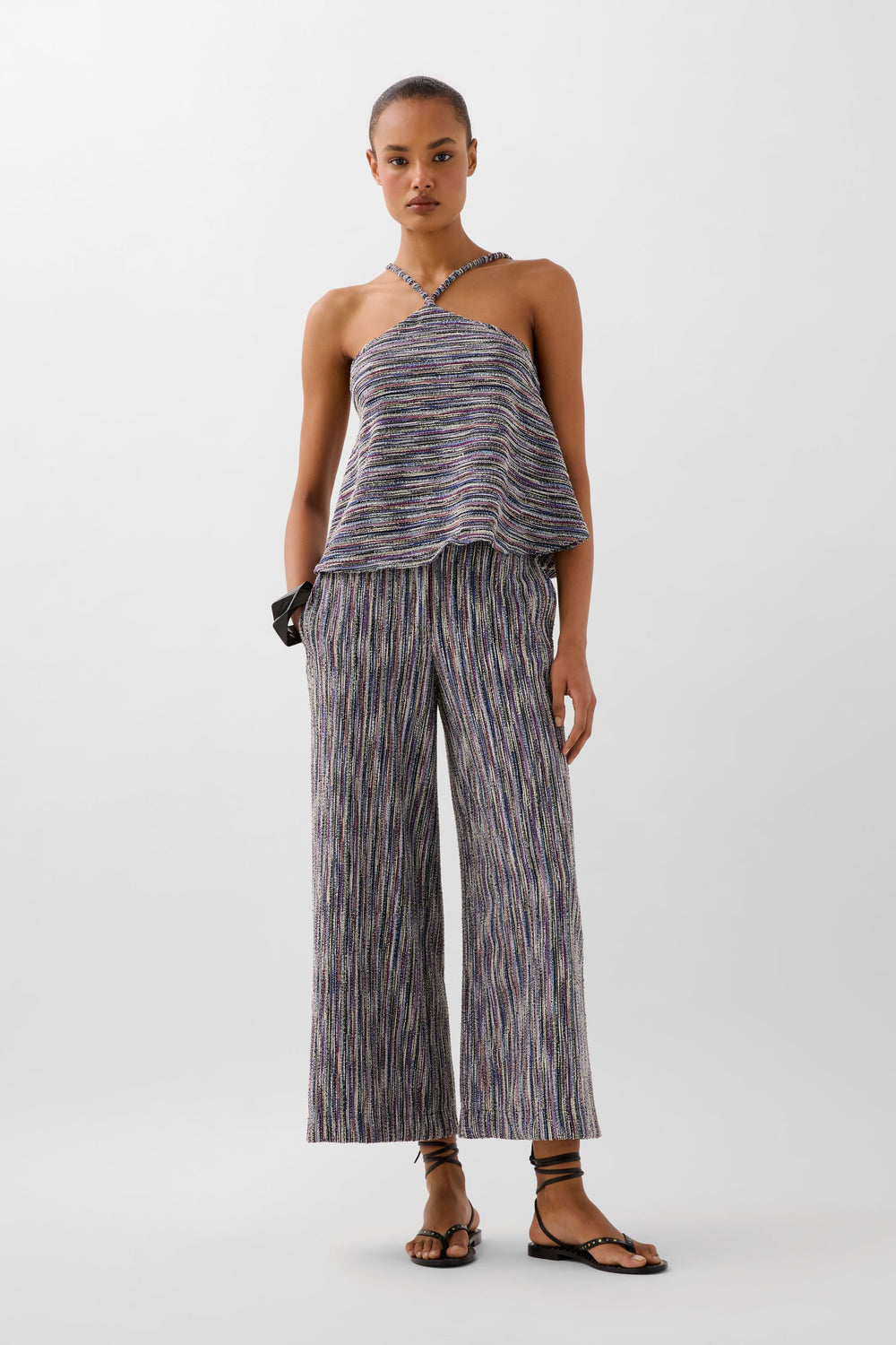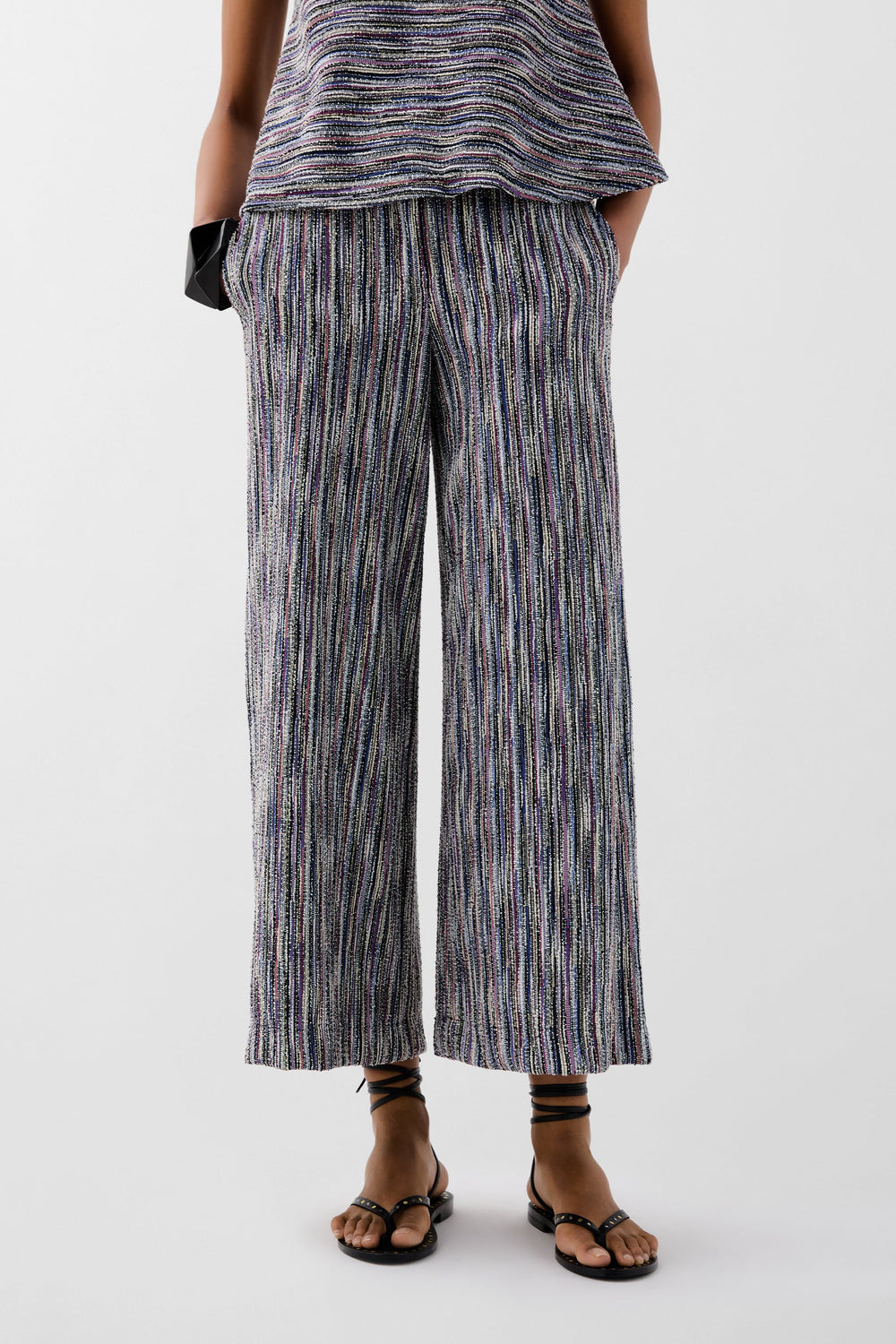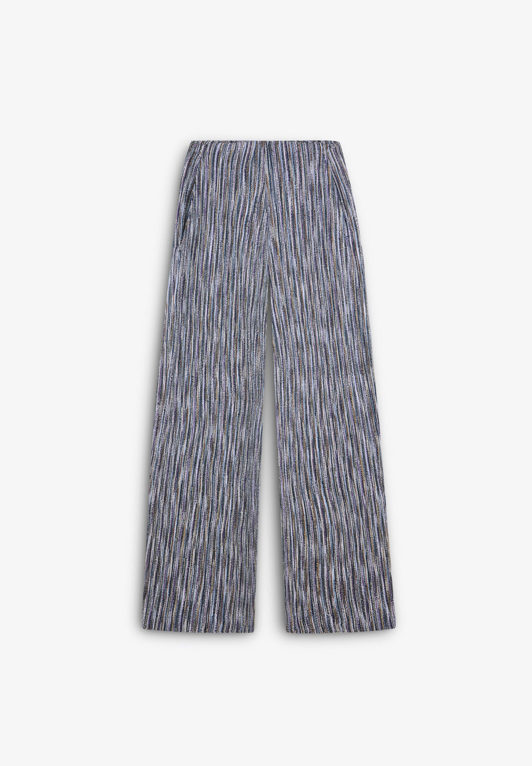 Pantalón de punto confeccionado en Algodón. Dos bolsillos lateral y dos posteriores. Cierre mediante botones y cremallera ocultos en frontal. Wide Leg Fit.