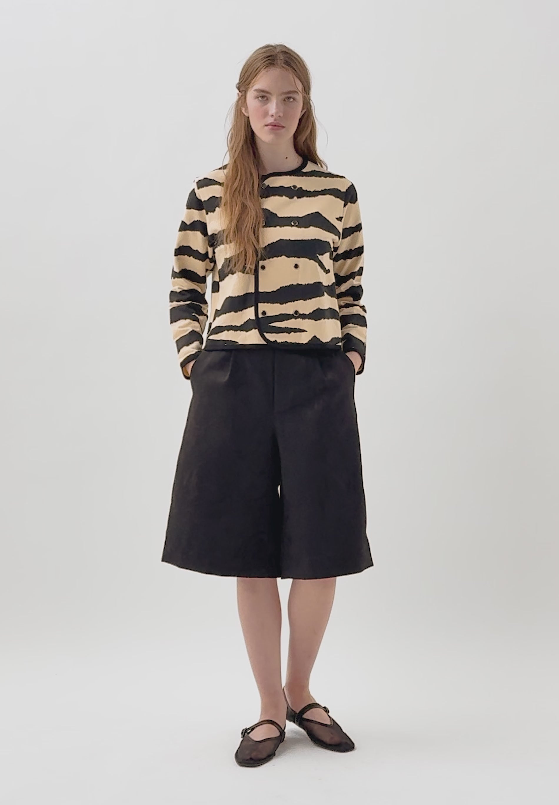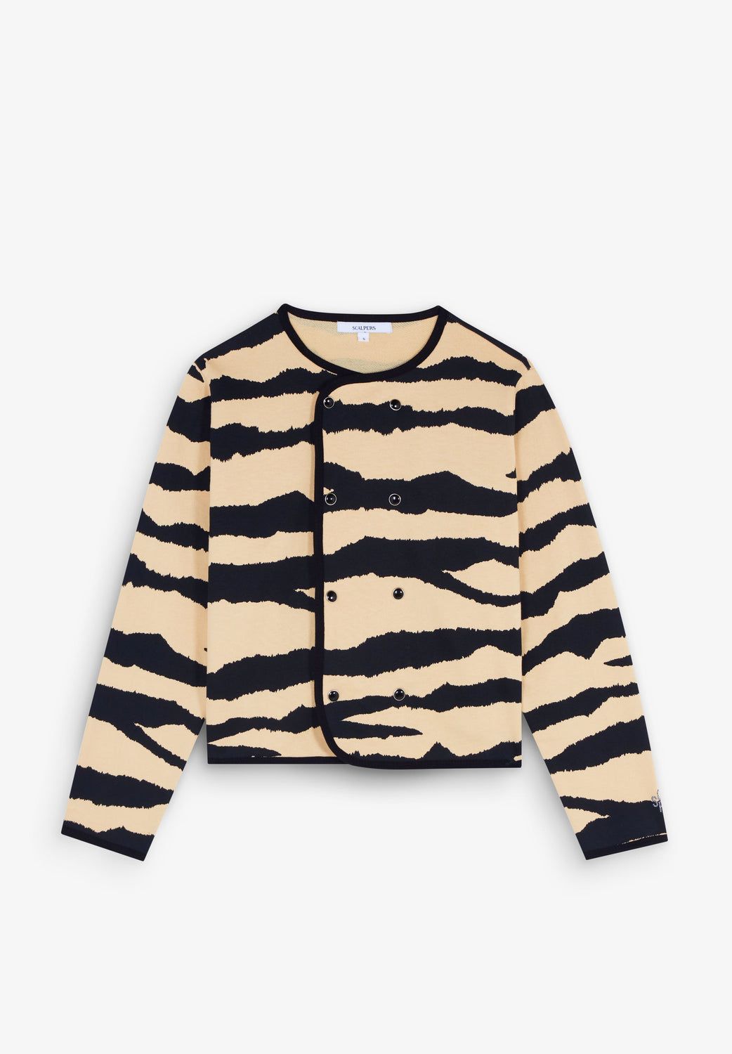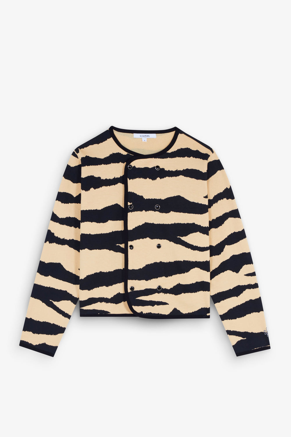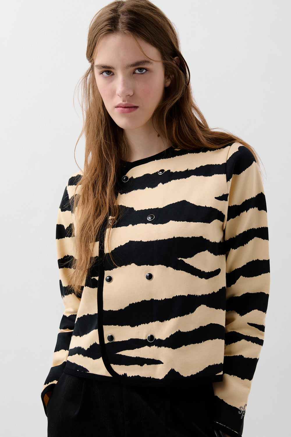 Chaqueta de cebra confeccionada en 100% algodón. Regular fit, cuello redondo y cierre con botones de snaps. Manga larga.