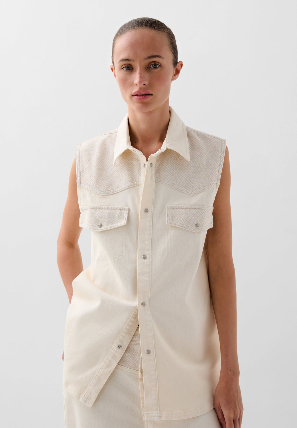 Chaleco con bolsillos a contraste. Confeccionado en mezcla de algodón ligeramente elástico. Corte Regular Fit. Cuello camisero. Cierre con botones. Manga en sisa. Bolsillos en pecho con tapeta a contraste y cierre de snap.