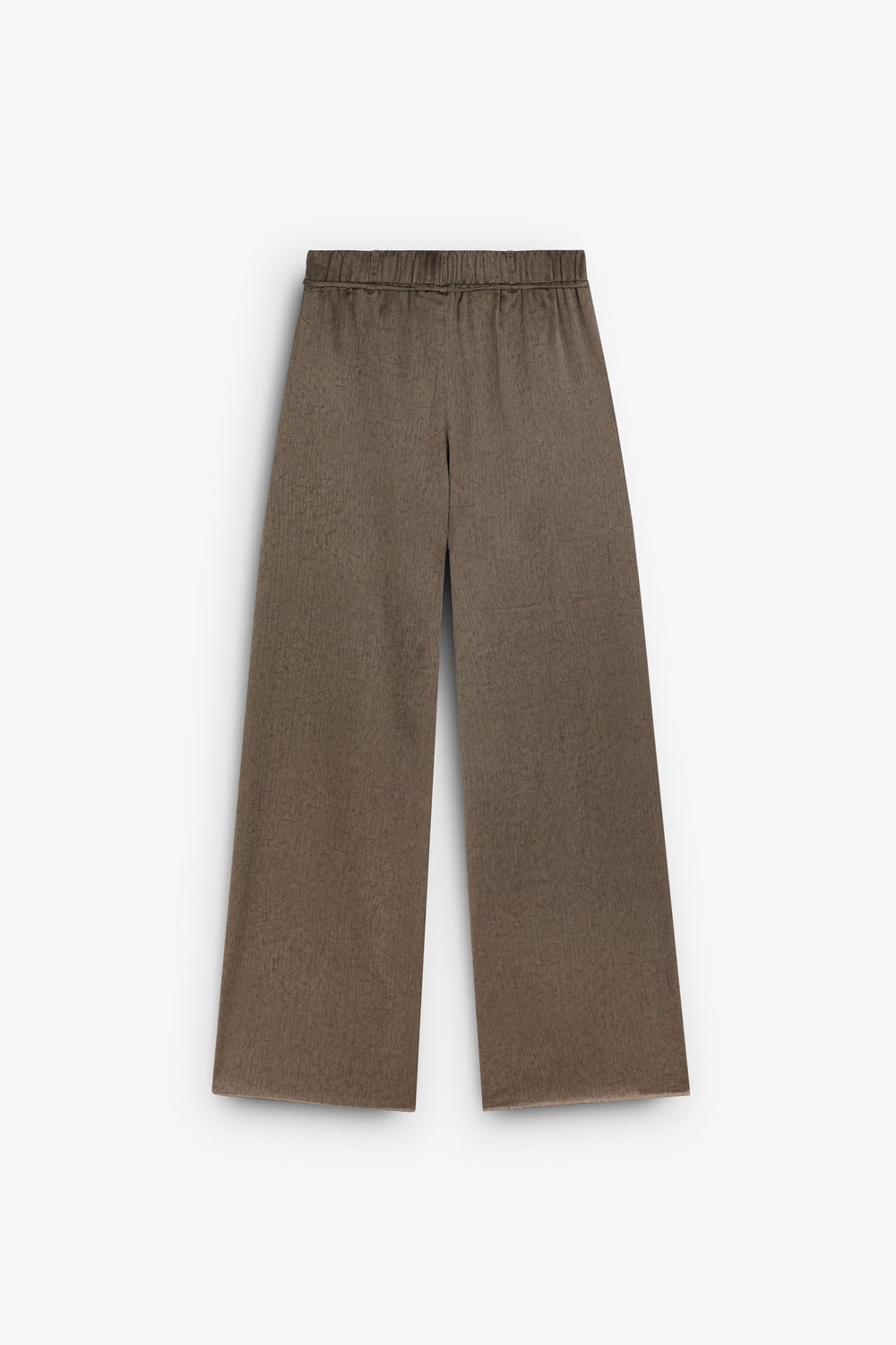 Pantalón fluido de tiro alto. Cinturilla ajustable. Detalle cordón.