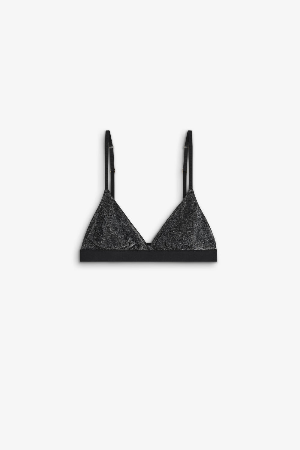 Bralette confeccionado en tejido con lurex. Tirantes ajustables.