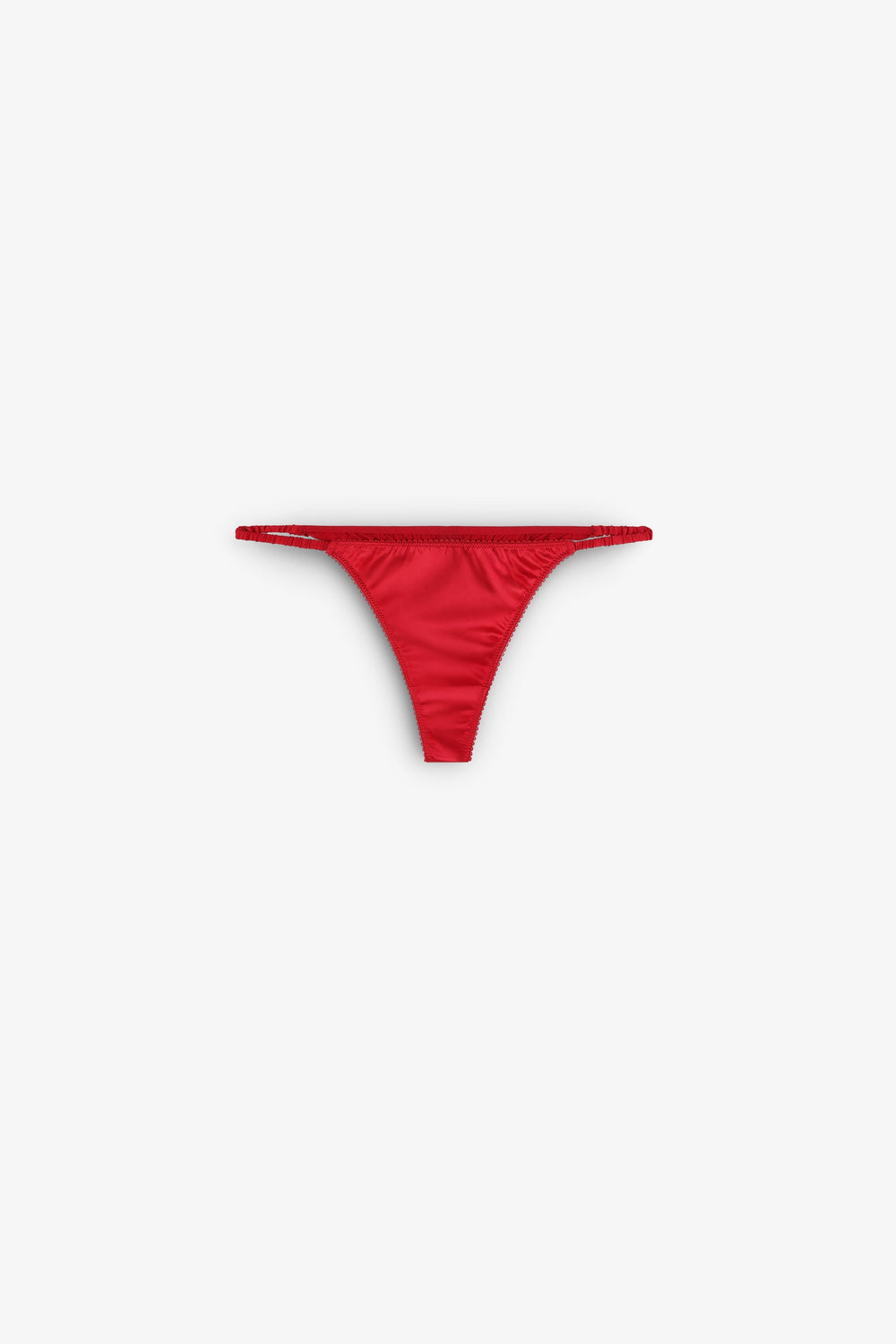 Tanga confeccionado en tejido satinado. Tiras elásticas.