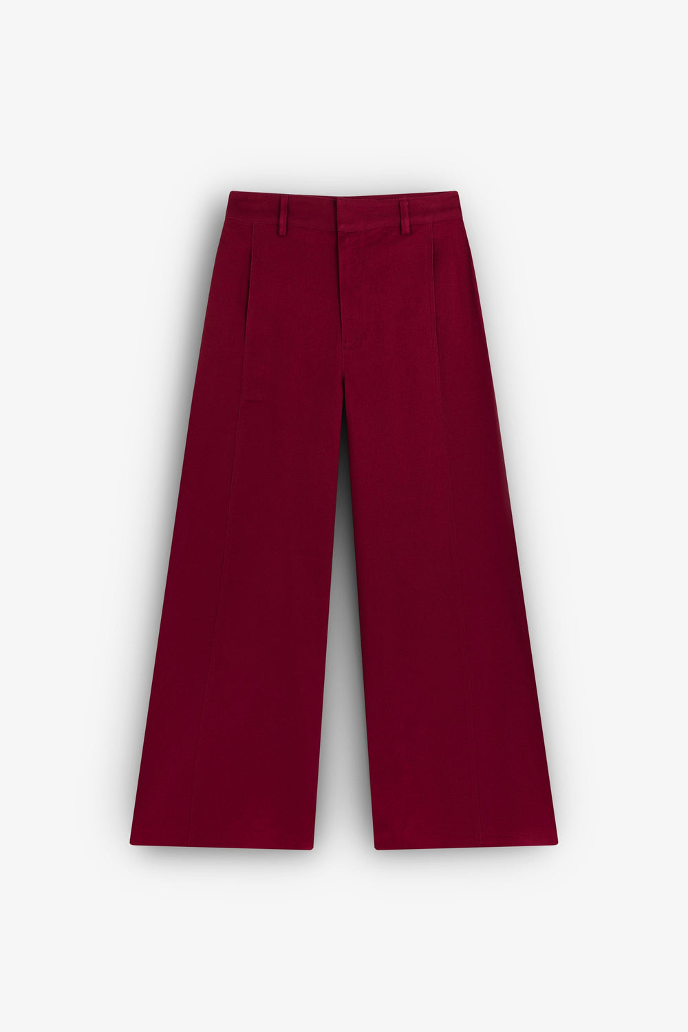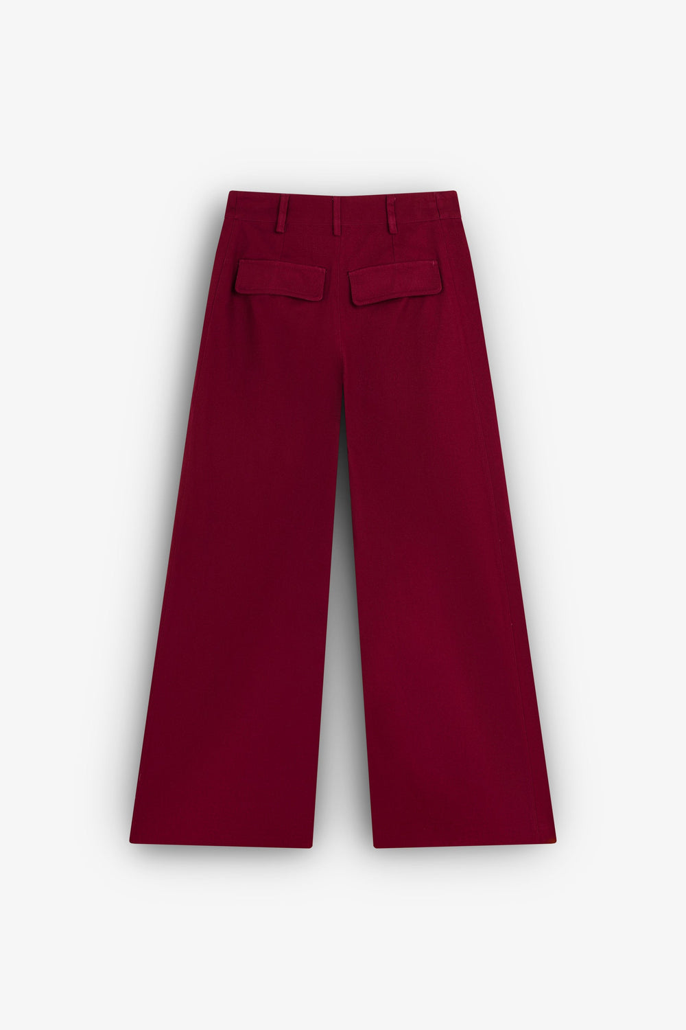 Pantalón confeccionado en 100% algodón. Corte regular fit, culotte, con cierre de cremallera y enganche oculto. Bolsillos delanteros inclinado y traseros de parche. Trabillas en cintura.