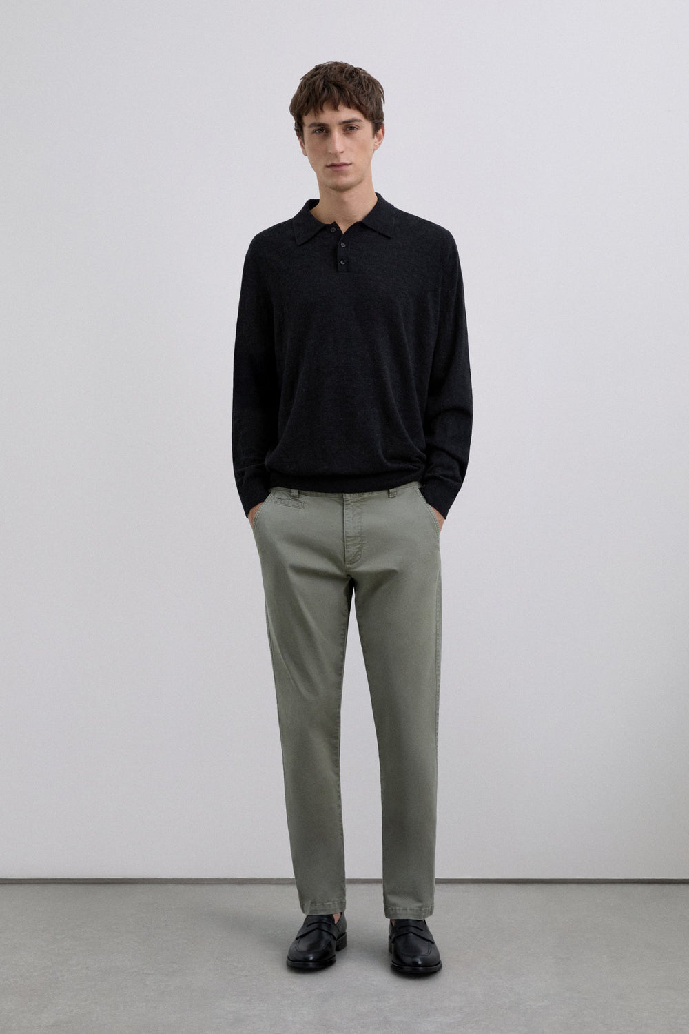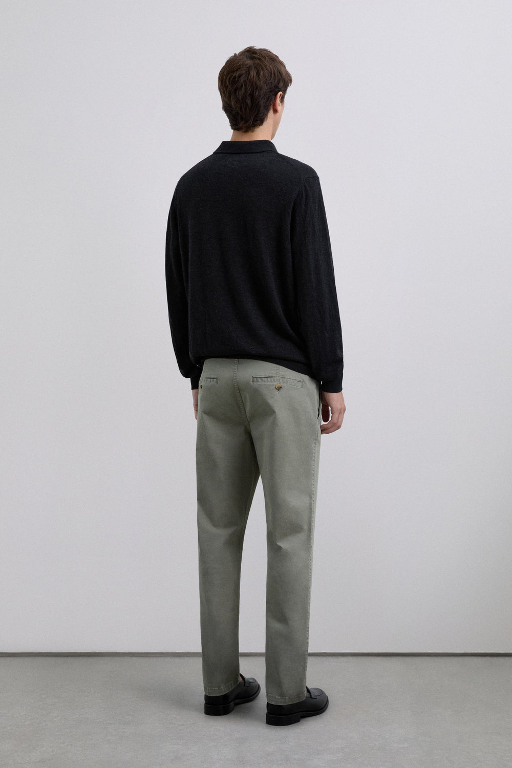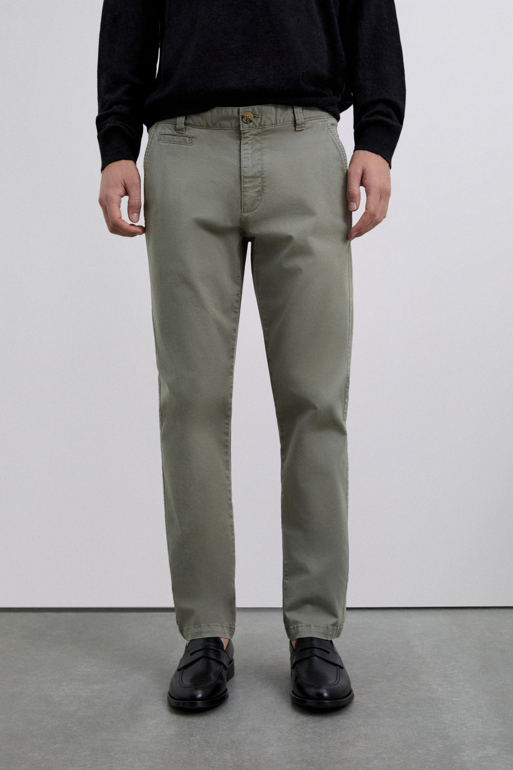 Pantalón chino casual confeccionado en mezcla de algodón ligeramente elástico. Cierre con botón y cremallera . Bolsillos laterales y traseros. Trabillas en cintura. Detalle de etiqueta interior con logo en cintura.