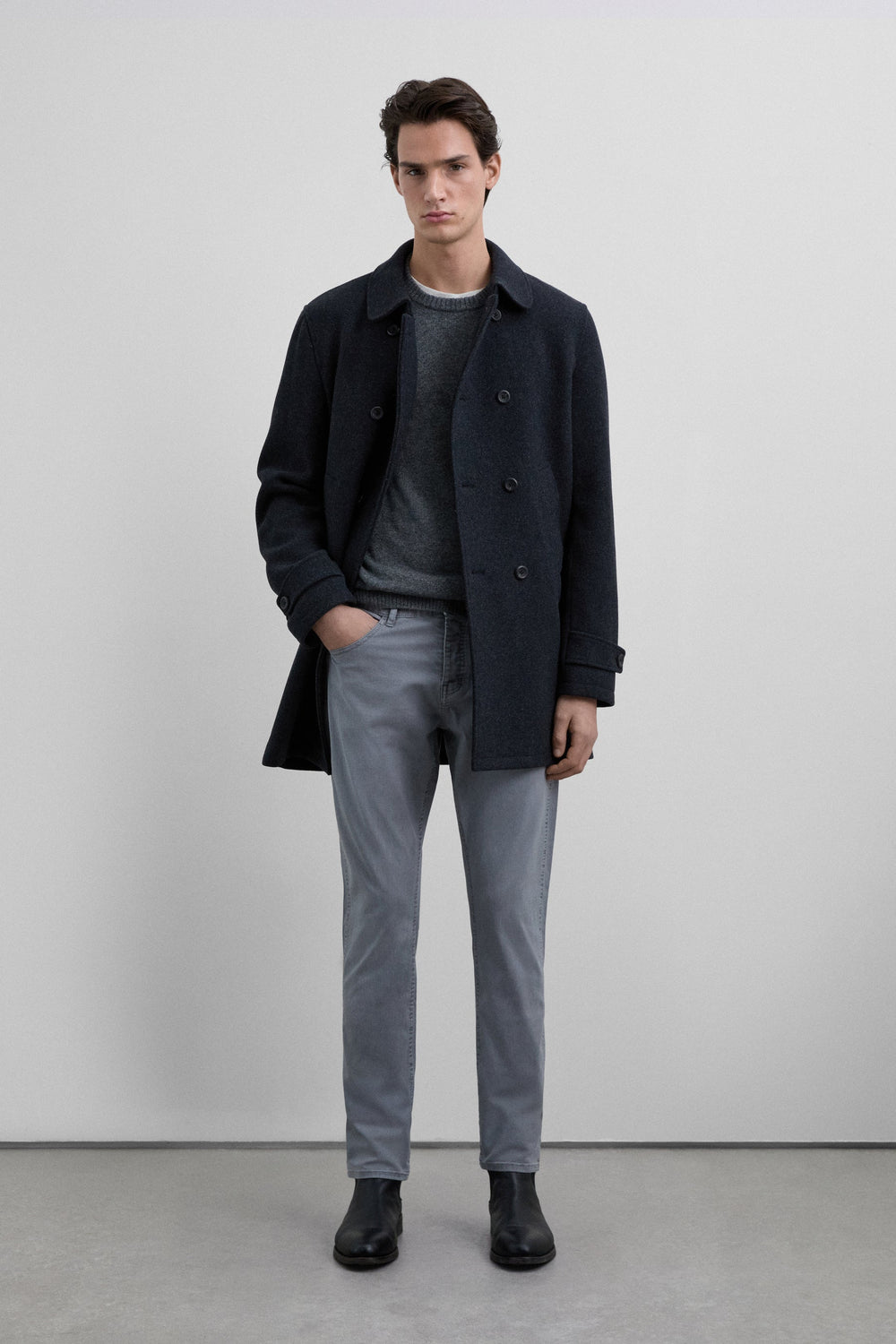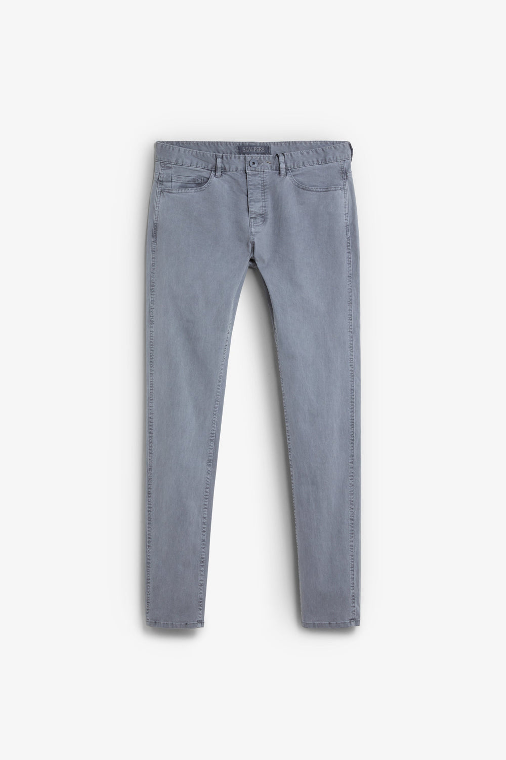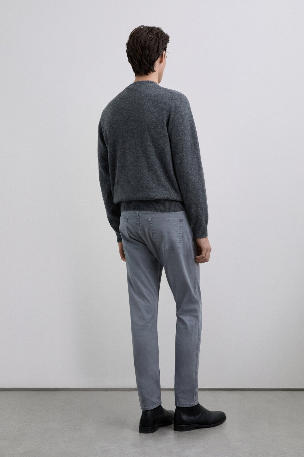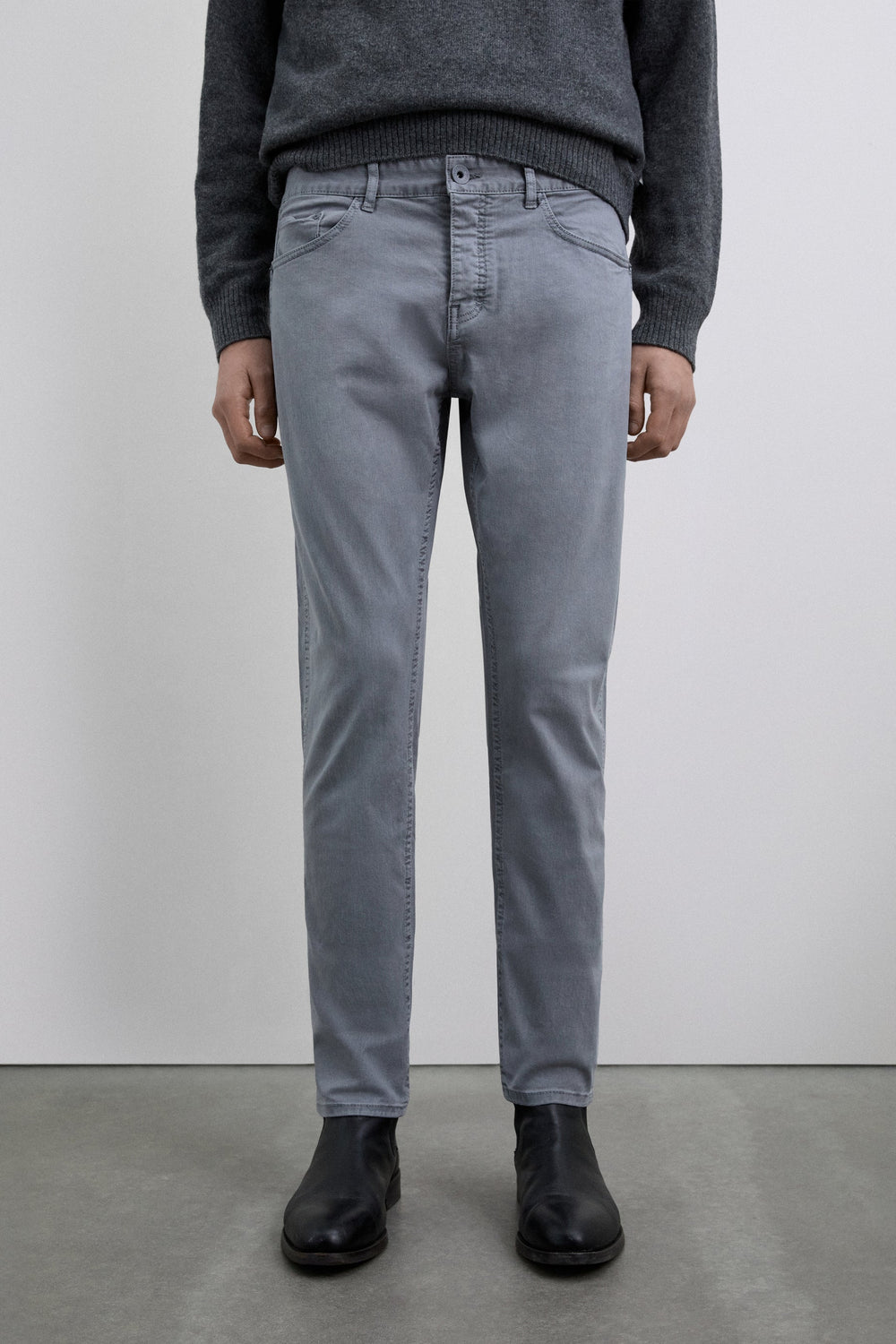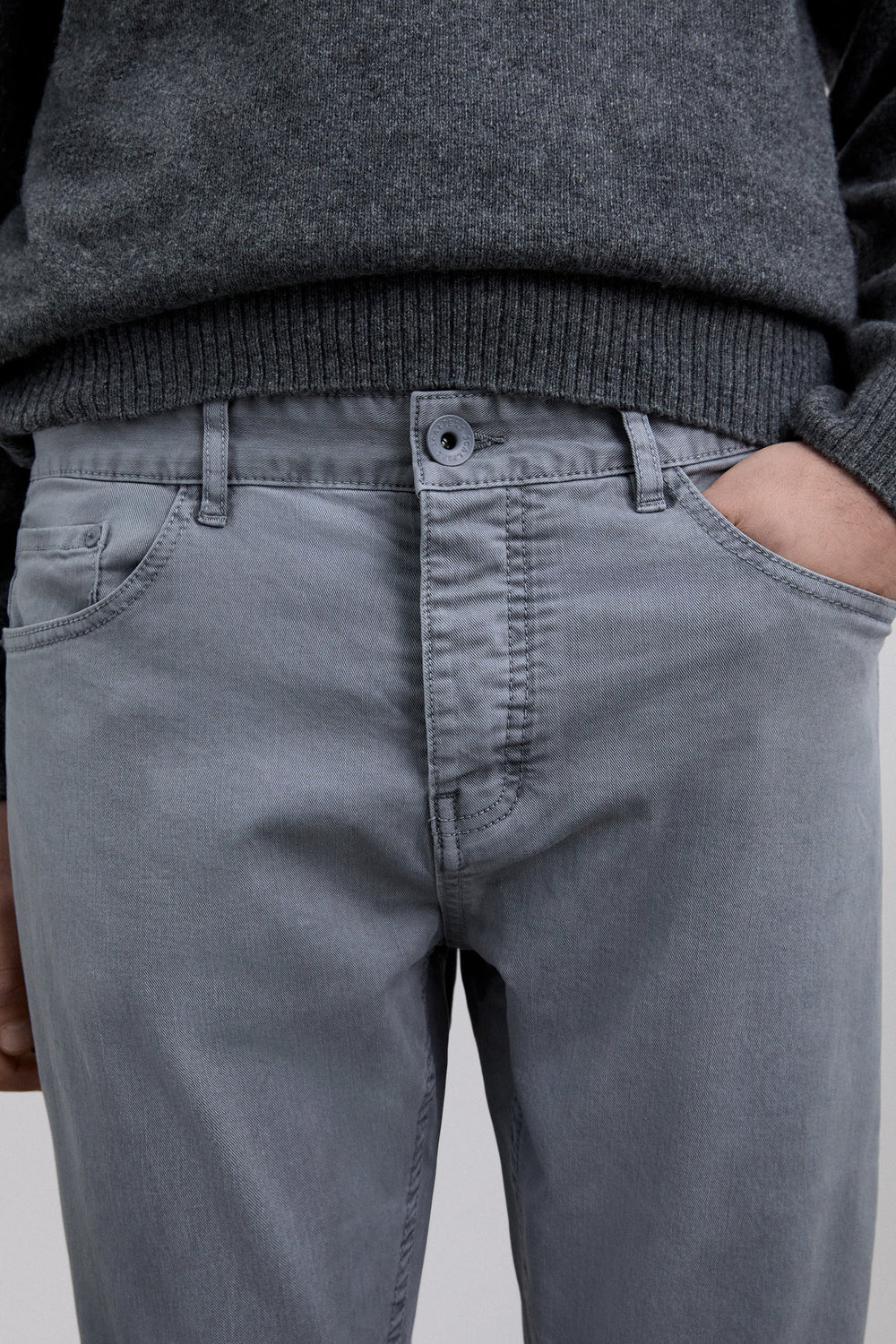 Pantalón confeccionado en mezcla de algodón. Ligeramente elástico. Cierre con botones. Corte regular. Bolsillos traseros y laterales. Con trabillas para cinturón.