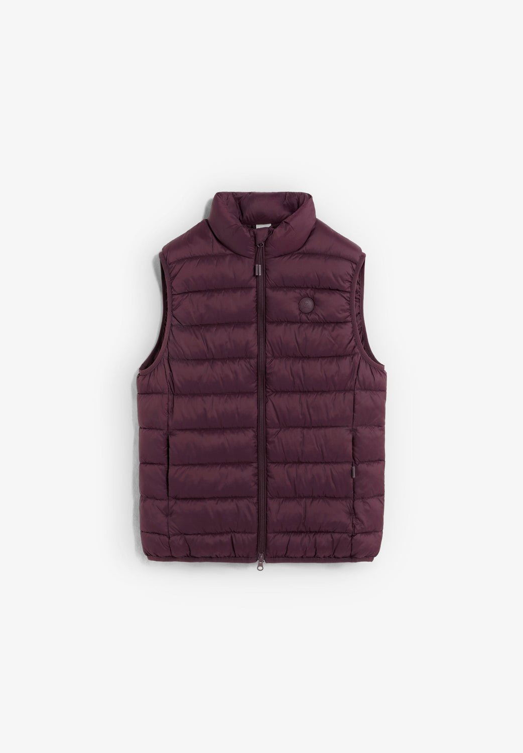 Chaleco acolchado. Repelente al agua. Forro interior confeccionado en tejido técnico. Bolsillos laterales ocultos con forro polar. Cierre mediante cremallera de doble carro grabada. Parche engomado con logotipo al tono en pecho.