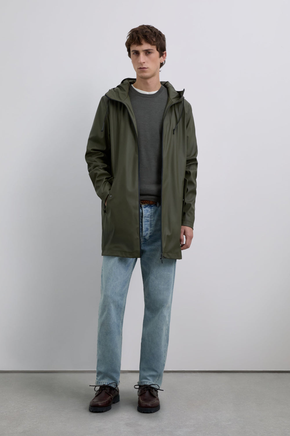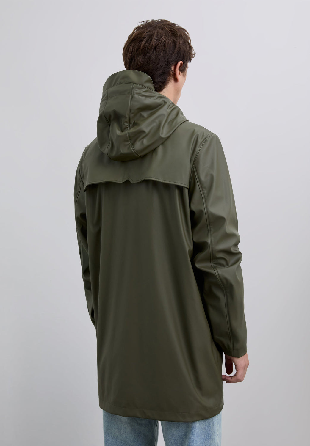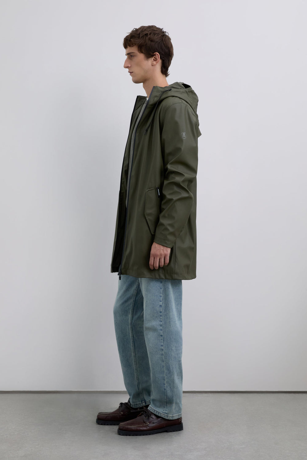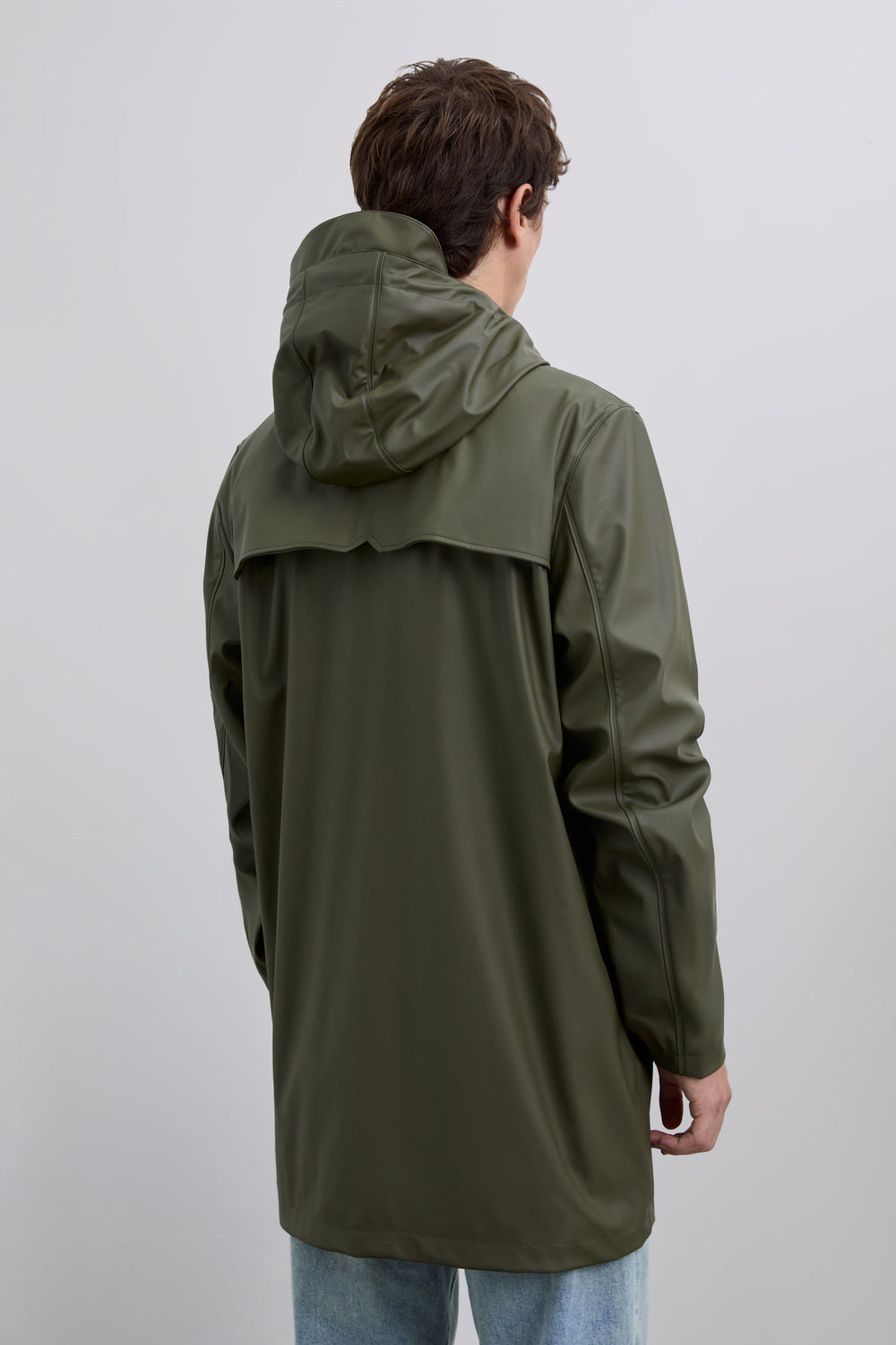 Chaqueta impermeable. Cuello con capucha ajustable con cordón. Cierre con cremallera de doble carro termosellada. Manga larga. Bolsillos laterales con tapeta y snap. Detalle logo engomado a contraste en frontal inferior y calavera a tono en manga.