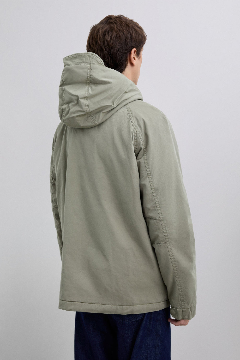 Parka confeccionada en algodón 100% orgánico. Bolsillos con solapa y cierres ocultos. Ajuste de puños con botón a presión. Capucha integrada. Ligeramente acolchada. Estampado en alta densidad con logo en la manga. Manga raglán. Cierre con cremallera de doble tirador.