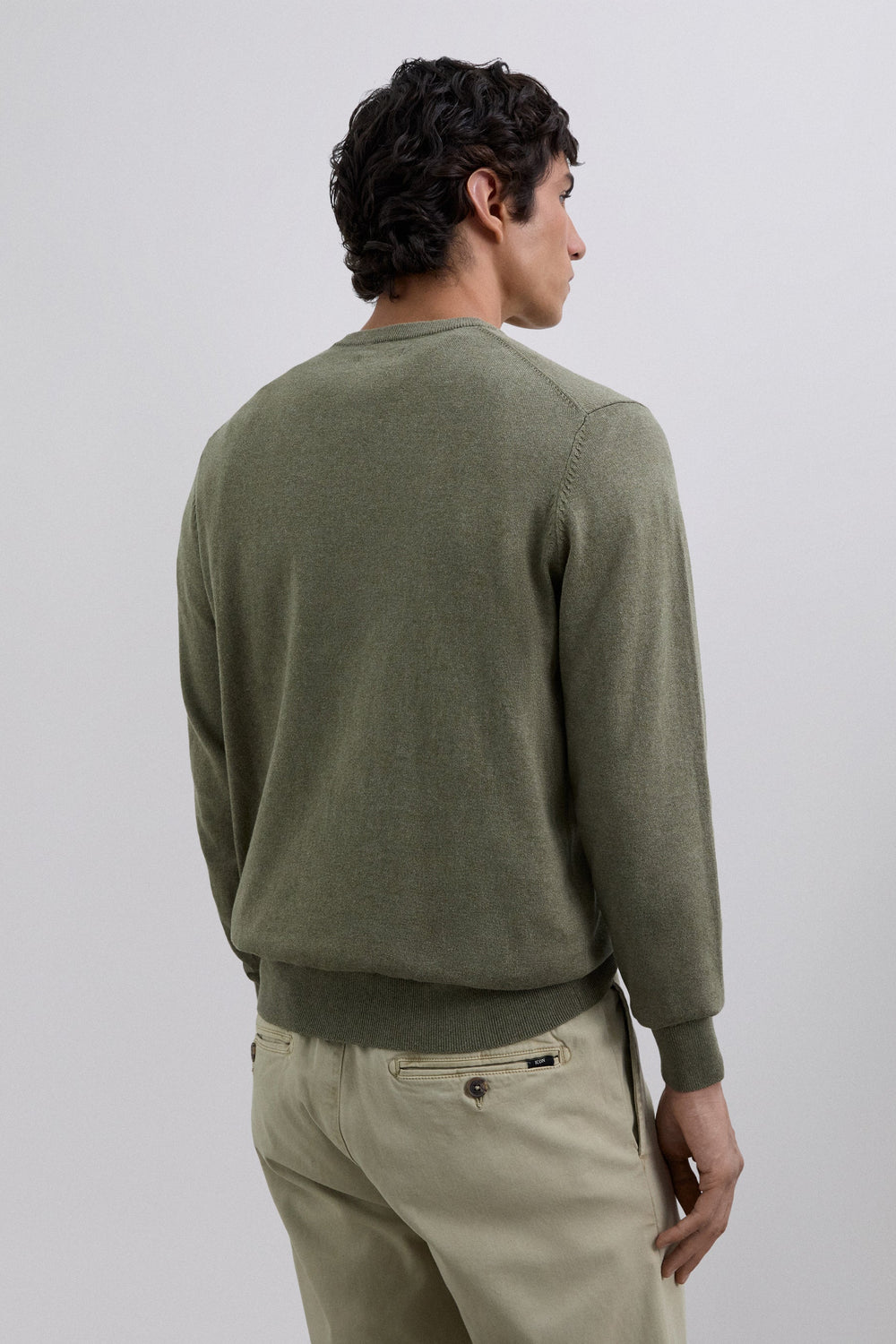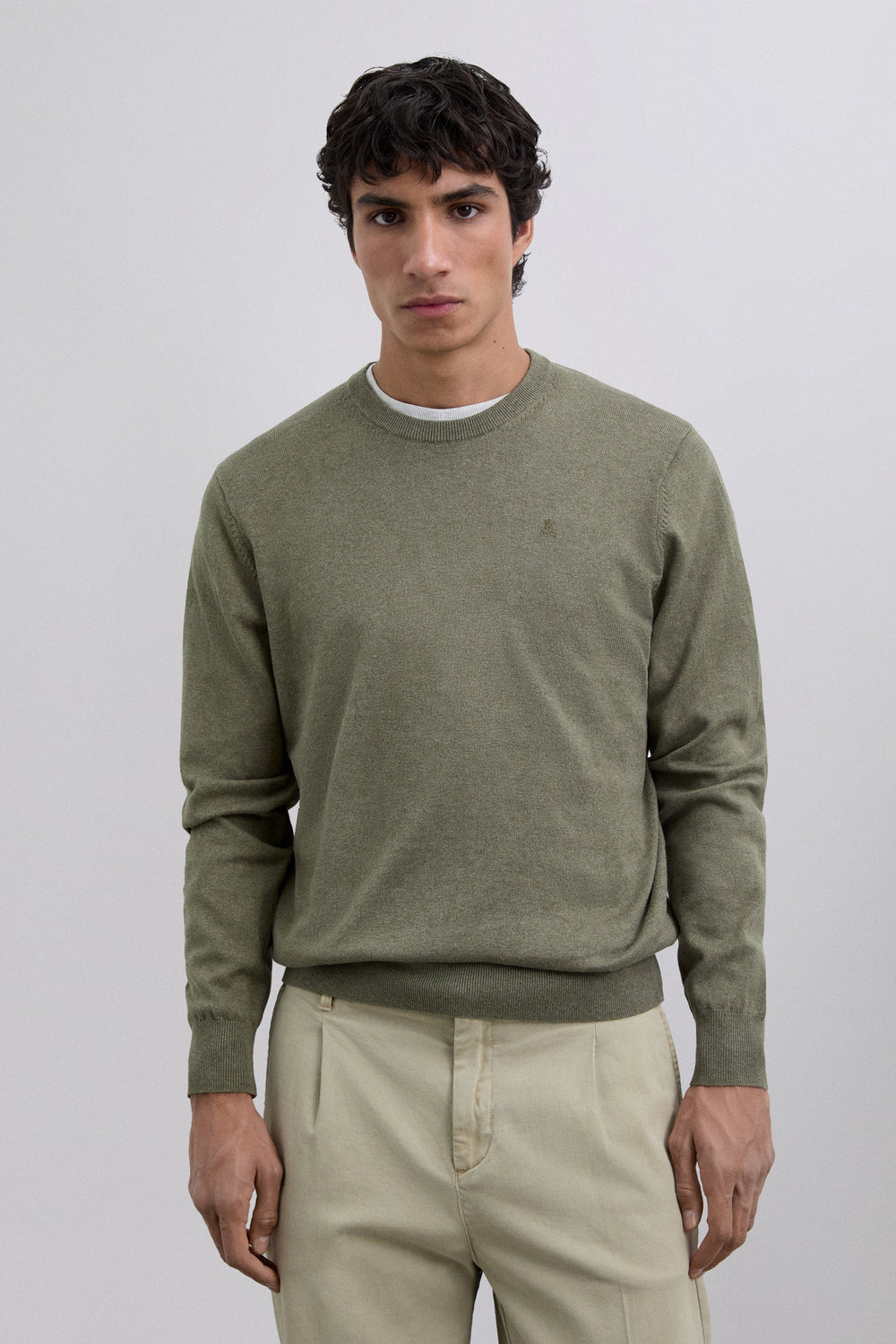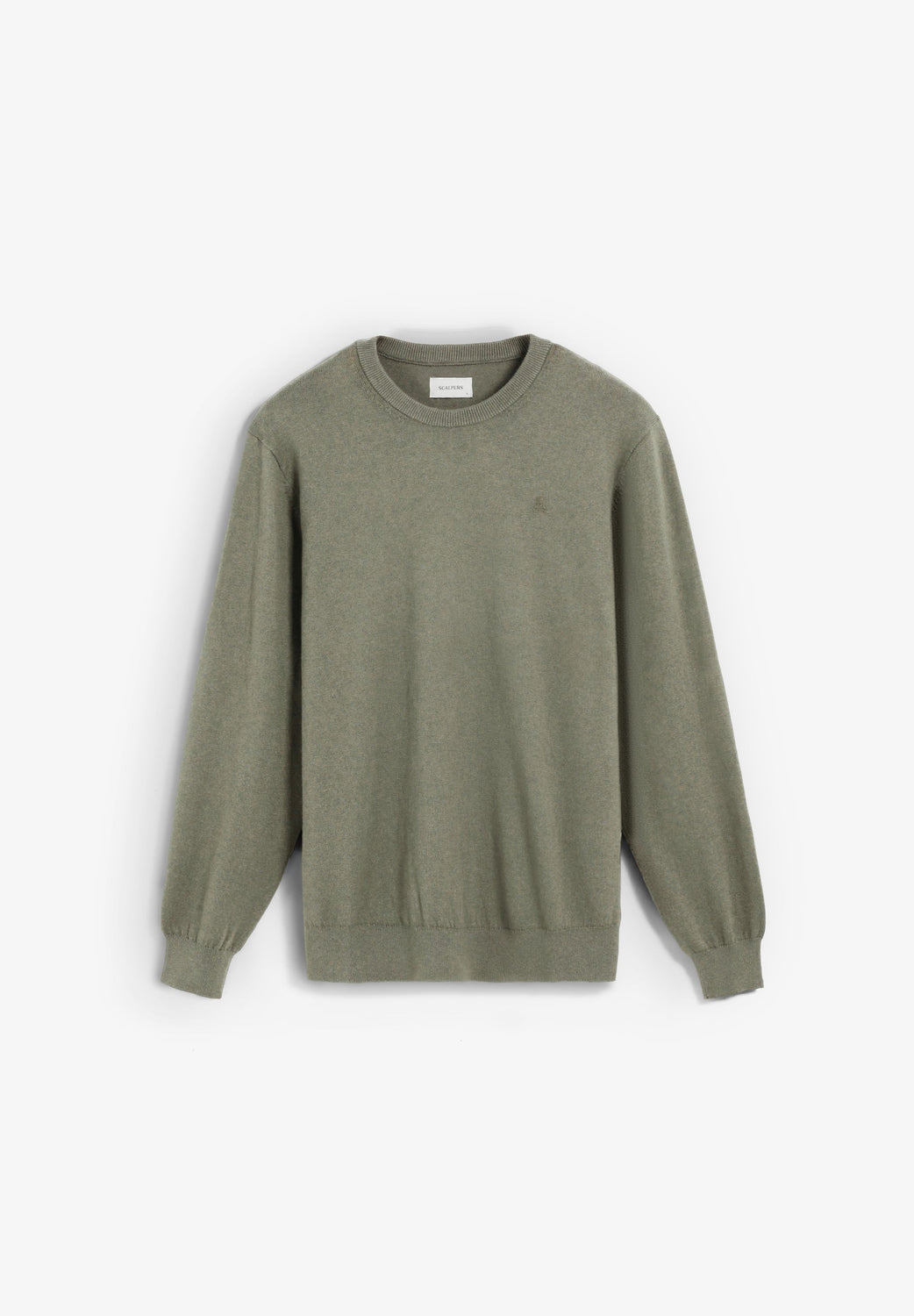 Jersey confeccionado en mezcla de algodón y cashmere. Cuello redondo. Manga larga. Acabados en rib. Detalle de logo bordado a tono en pecho.